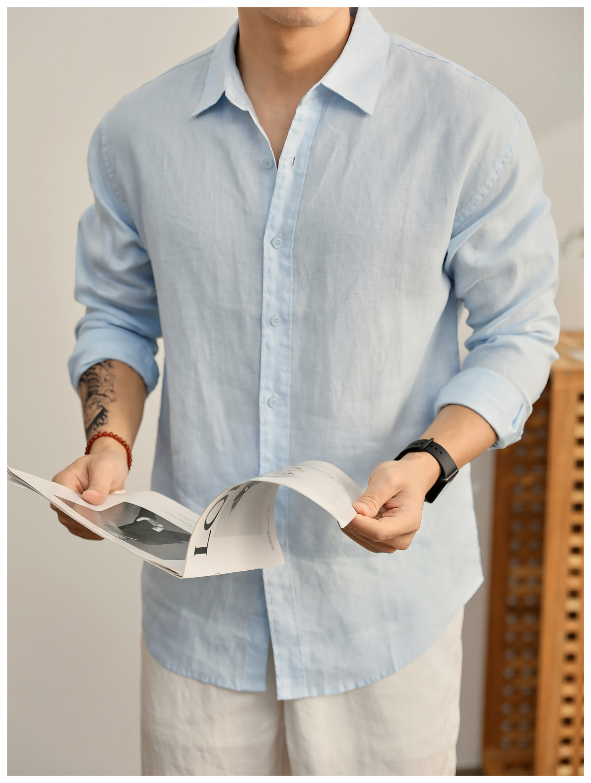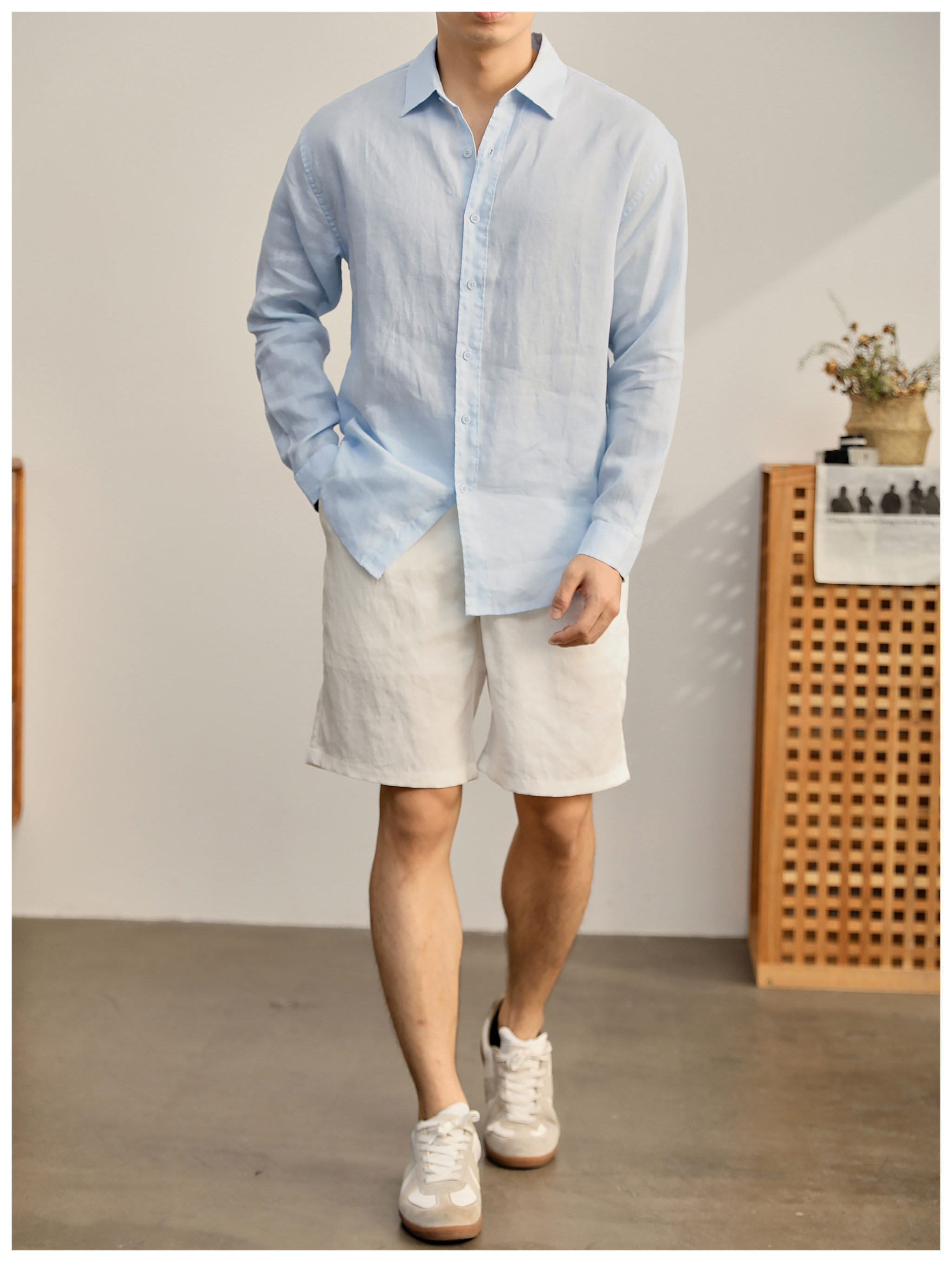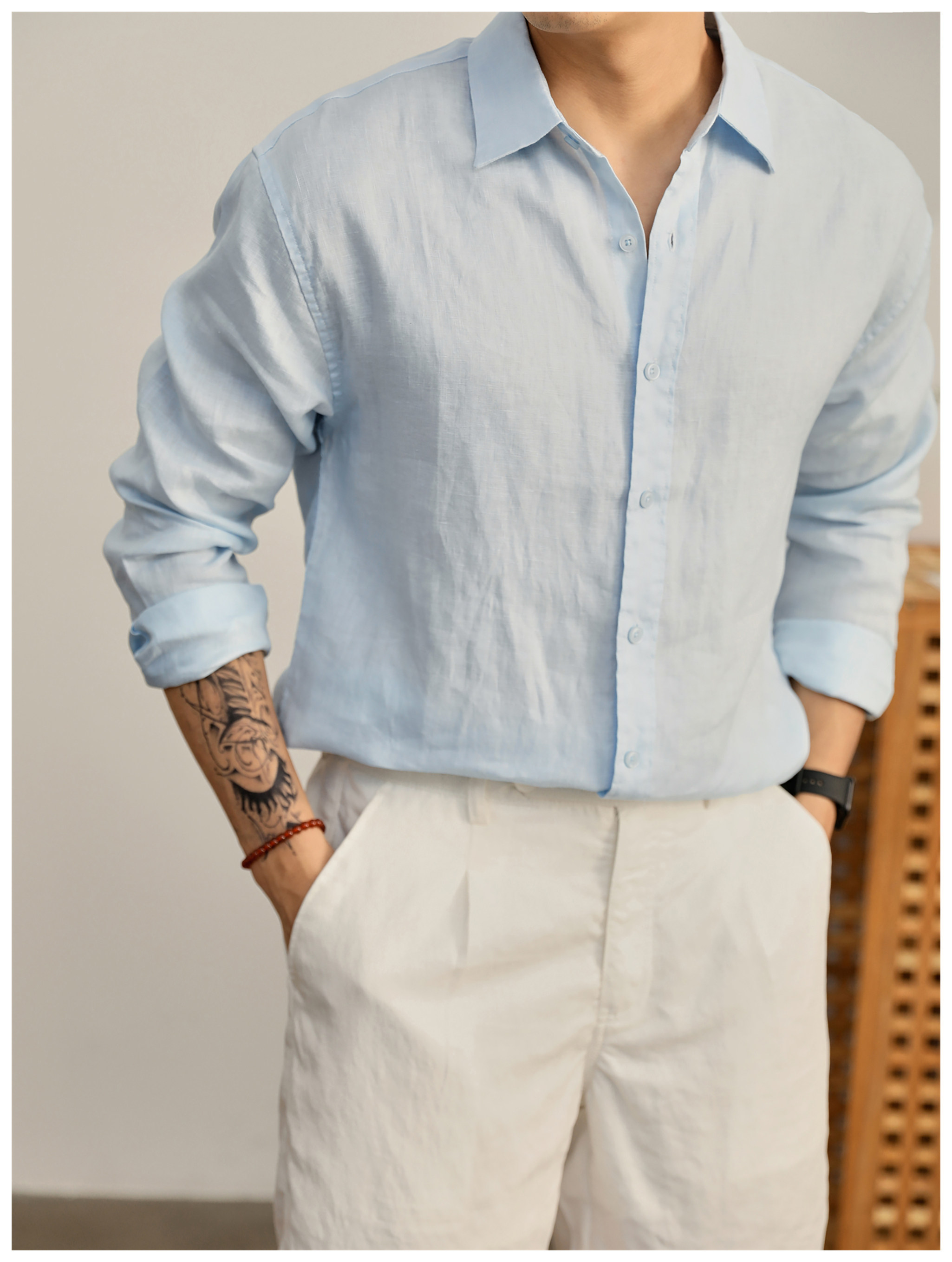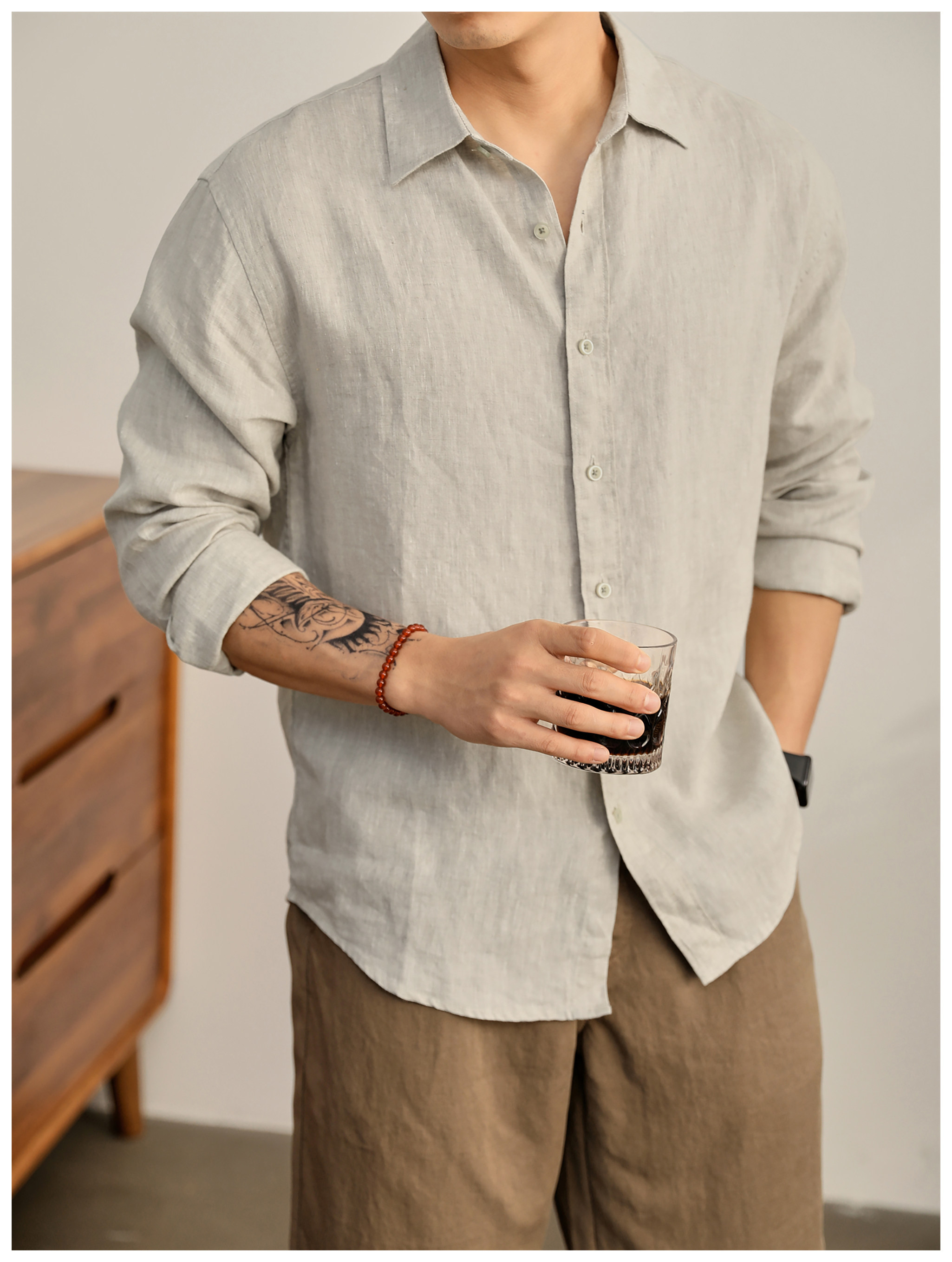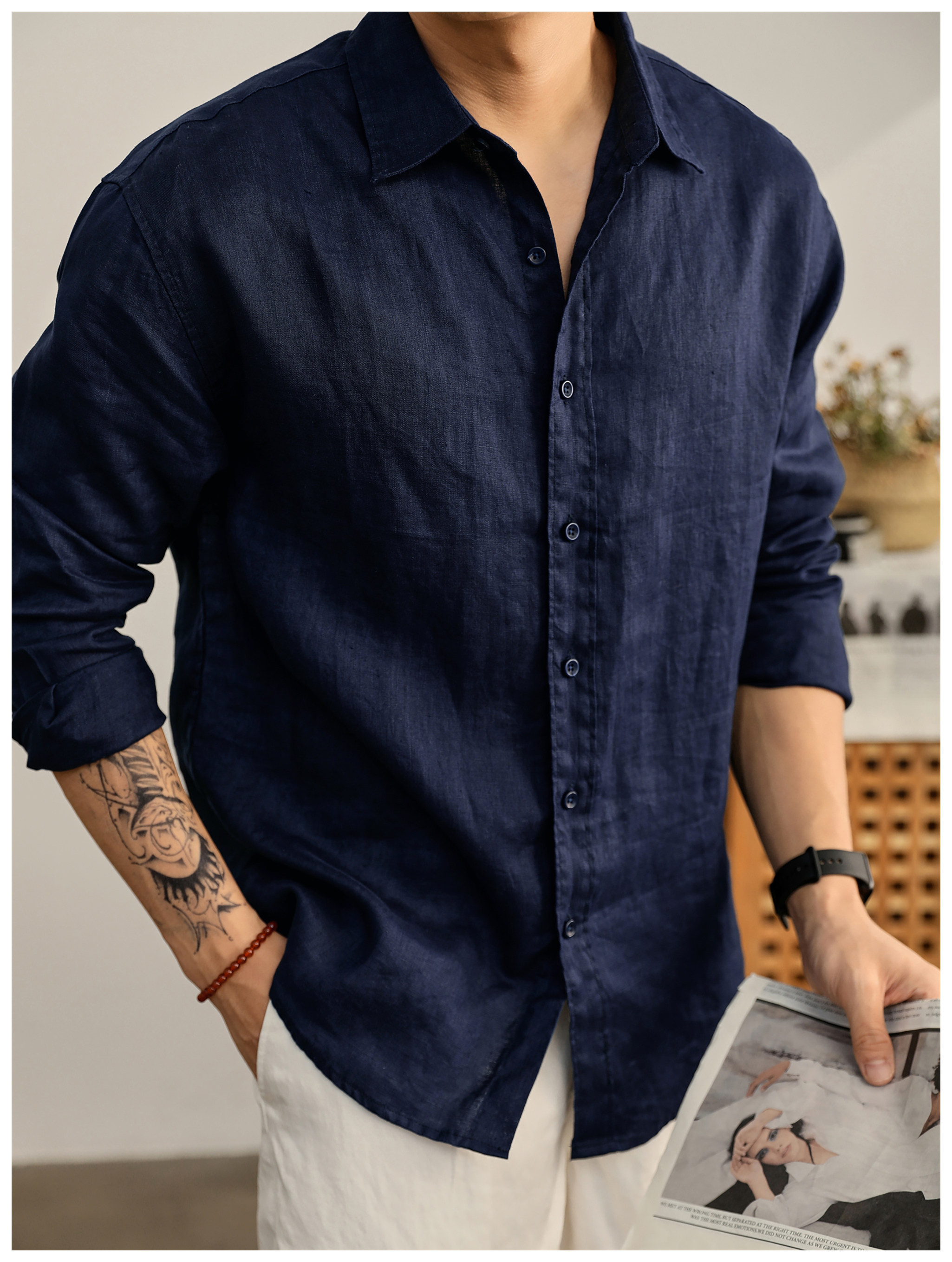 Luud Italian-Style Elegant Pure Linen Yarn-Dyed Lightweight Long-Sleeve Shirt for Men, Old Money Style, Versatile for Commuting, Breathable and Moisture-Wicking Shirt