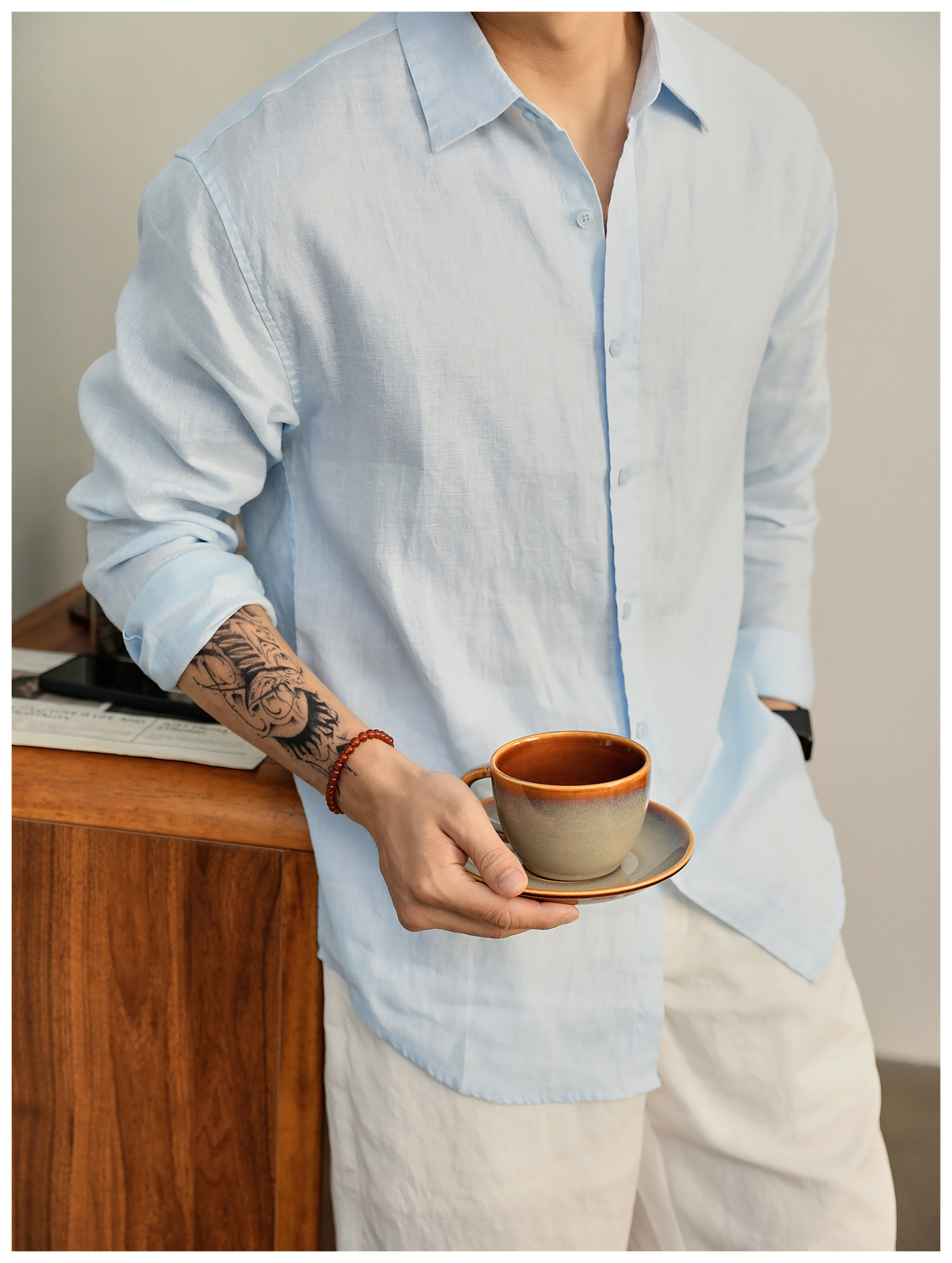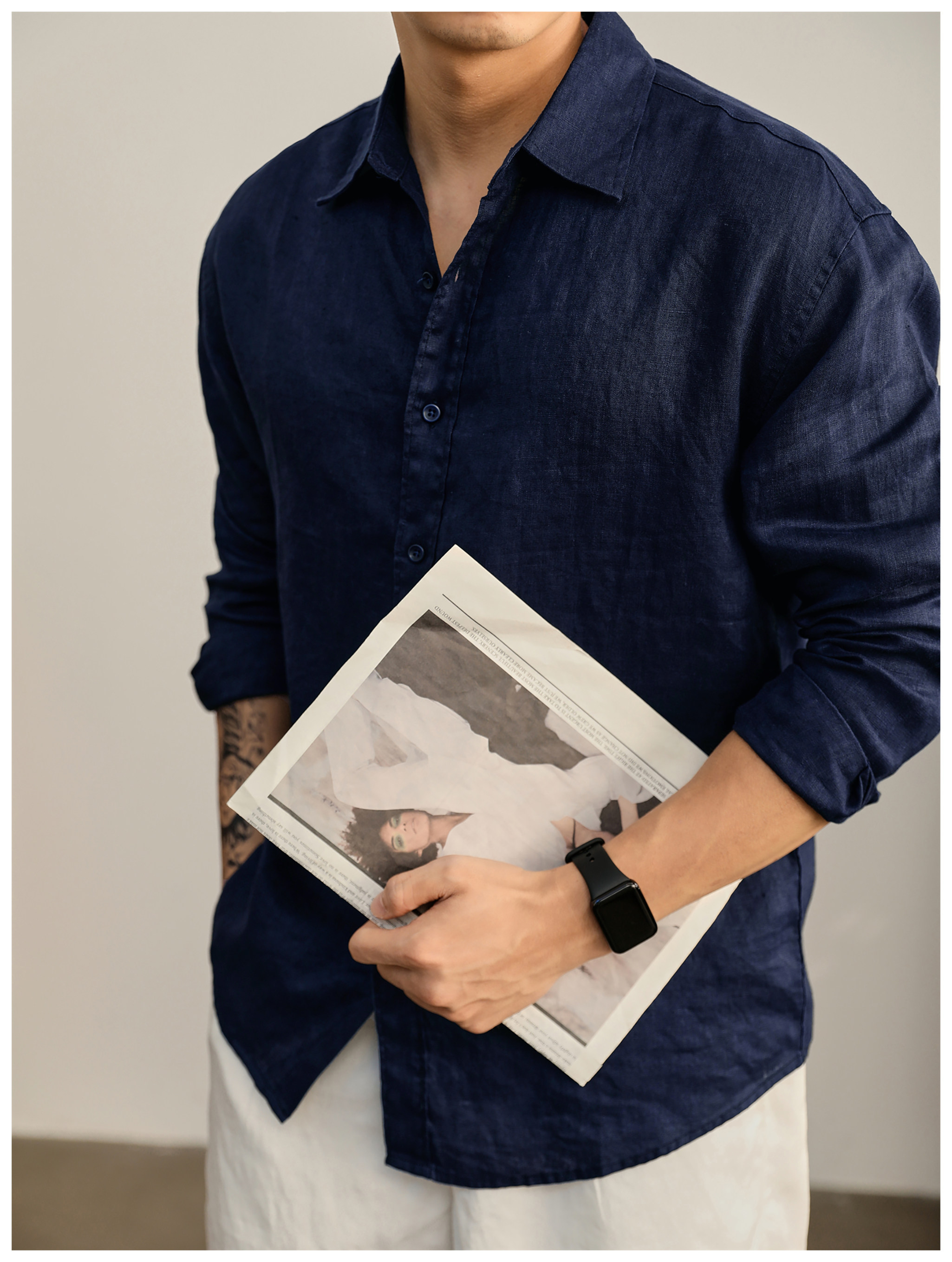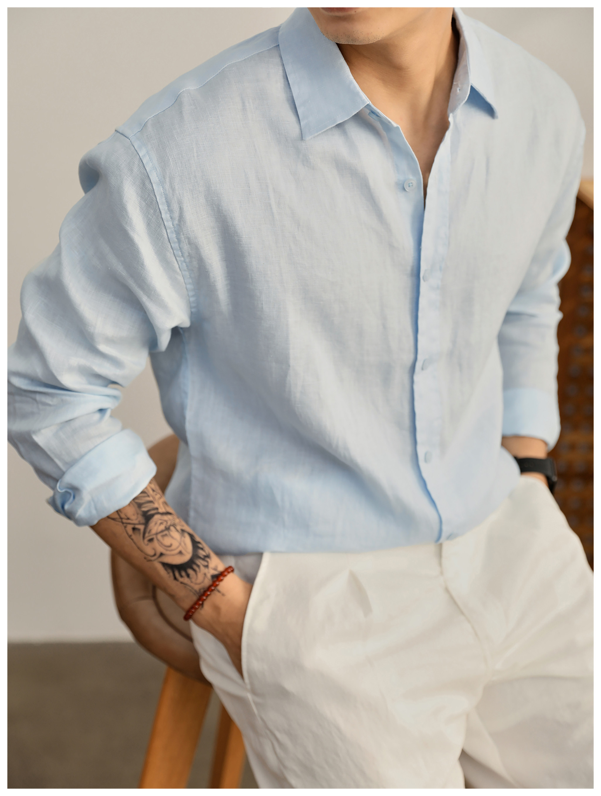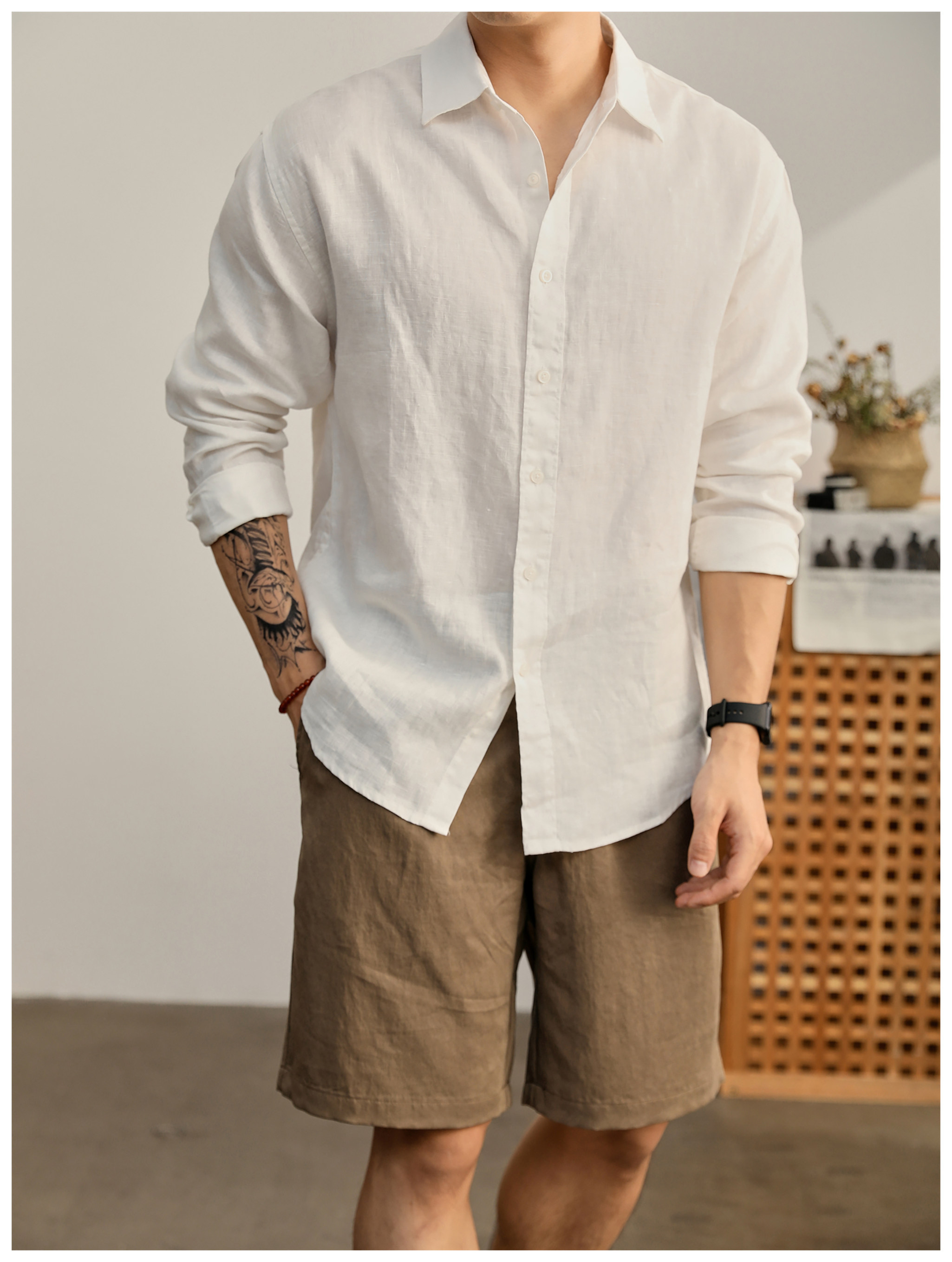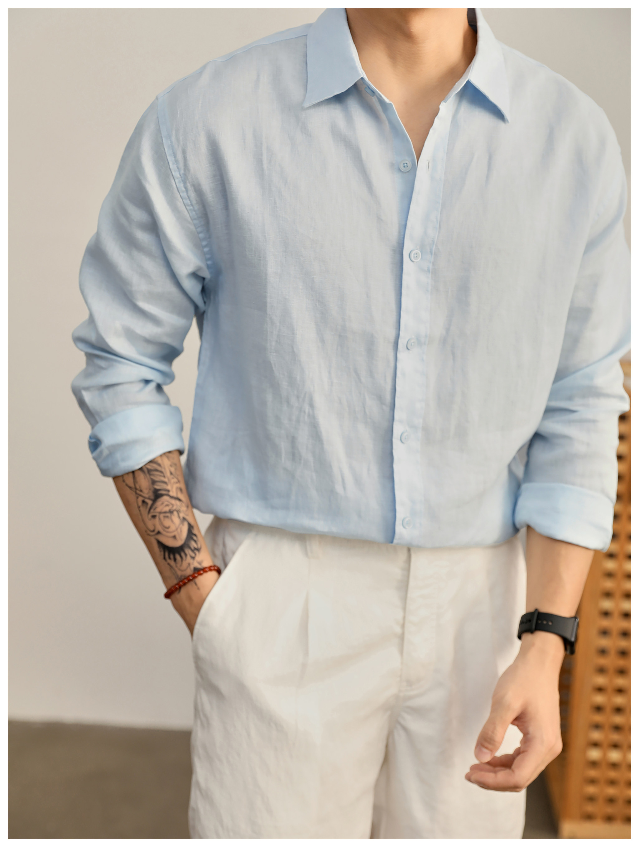 Luud Italian-Style Elegant Pure Linen Yarn-Dyed Lightweight Long-Sleeve Shirt for Men, Old Money Style, Versatile for Commuting, Breathable and Moisture-Wicking Shirt