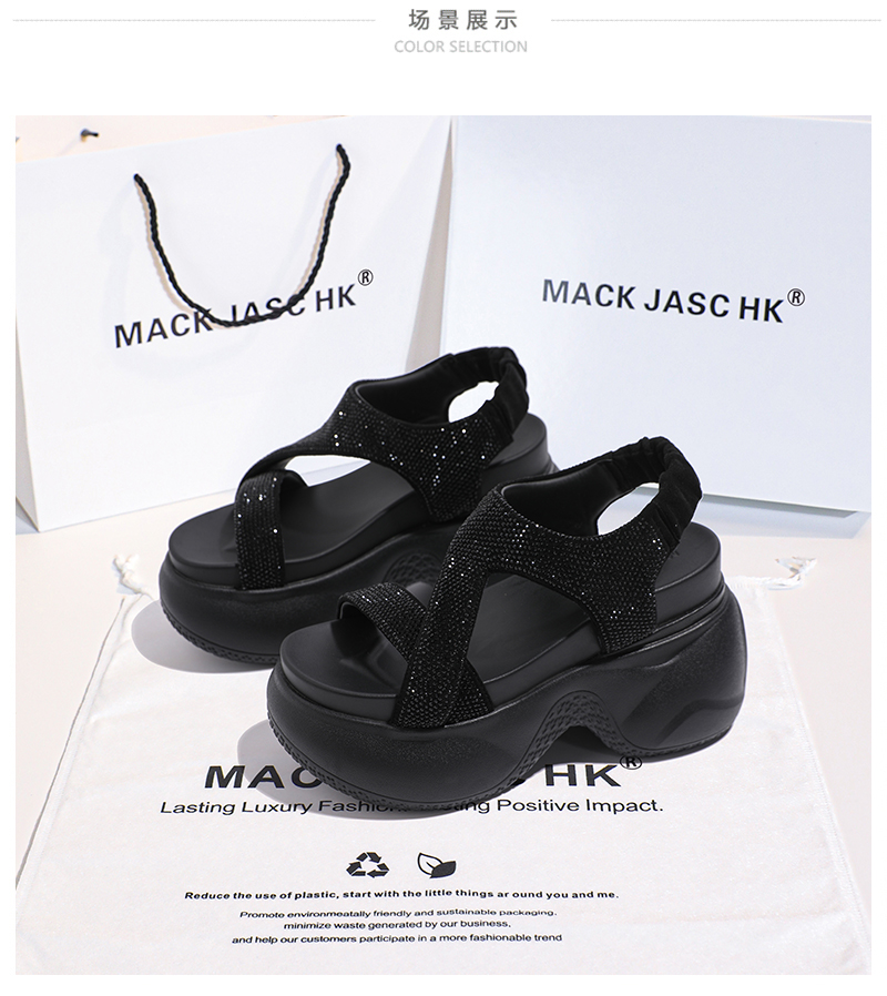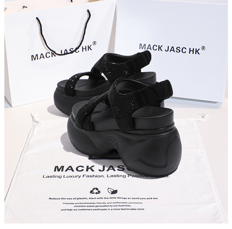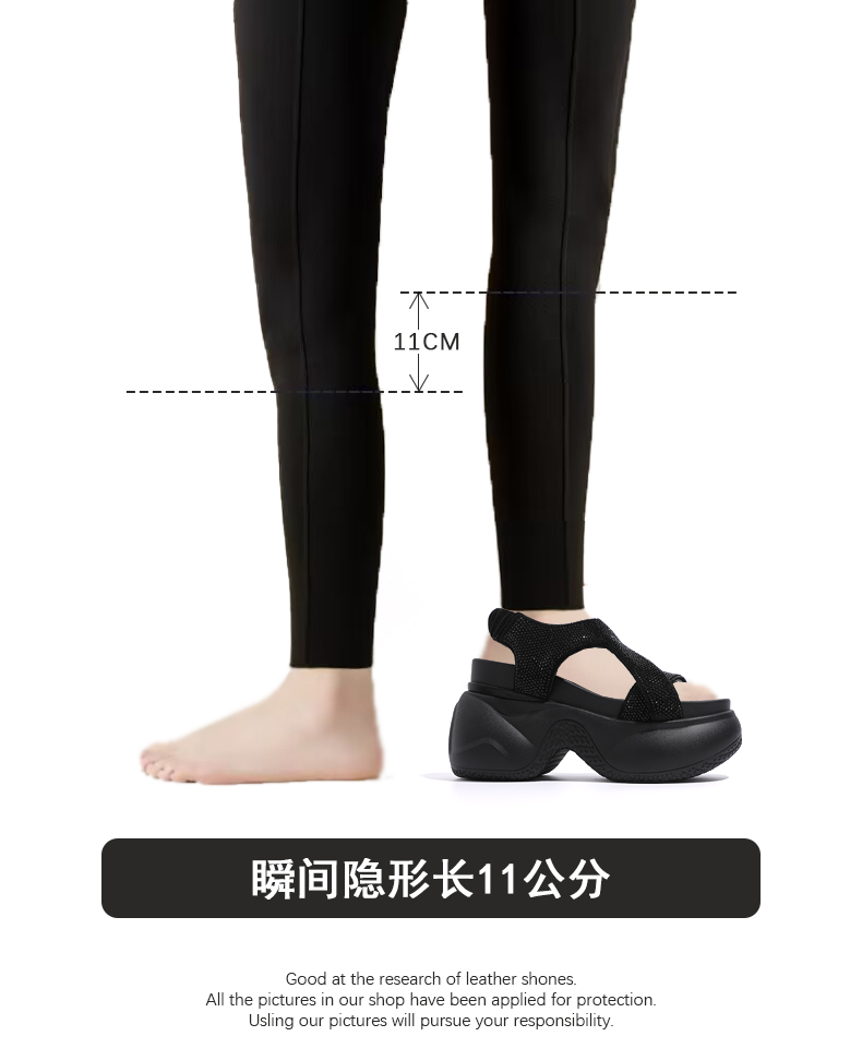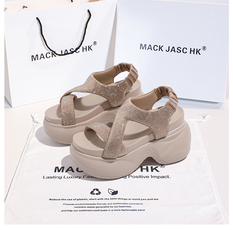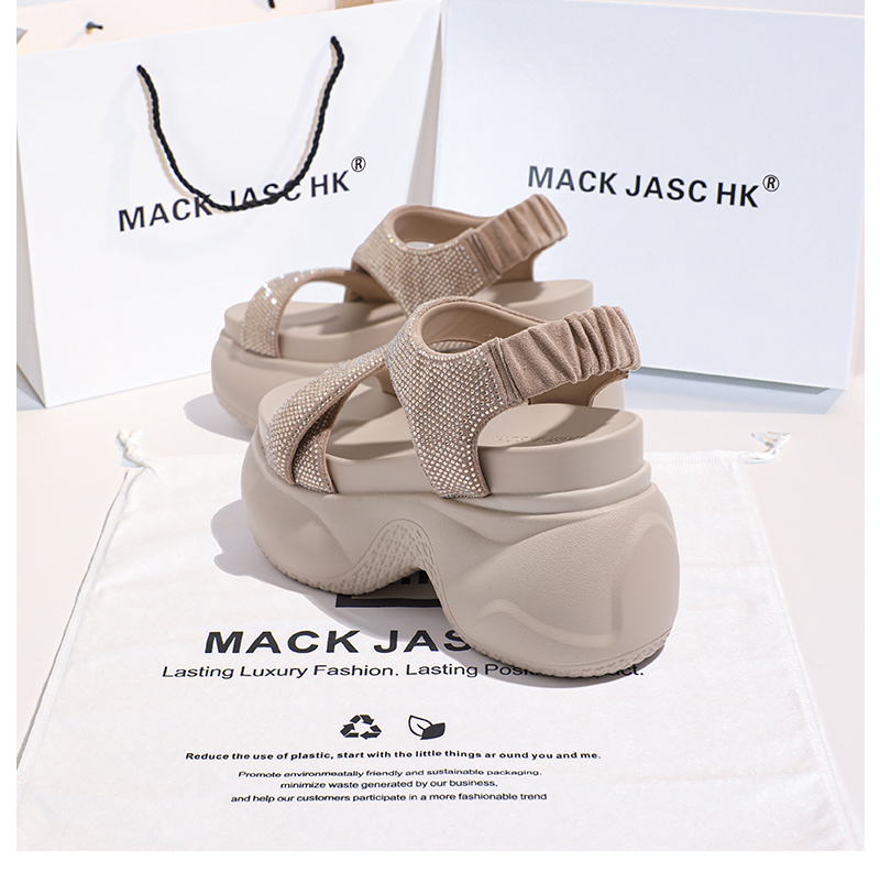 Hong Kong Hk Thick-Soled Height-Increasing 11cm Sandals for Women 2025 Summer New Fashion Rhinestone Fairy Style Casual Sports Sandals