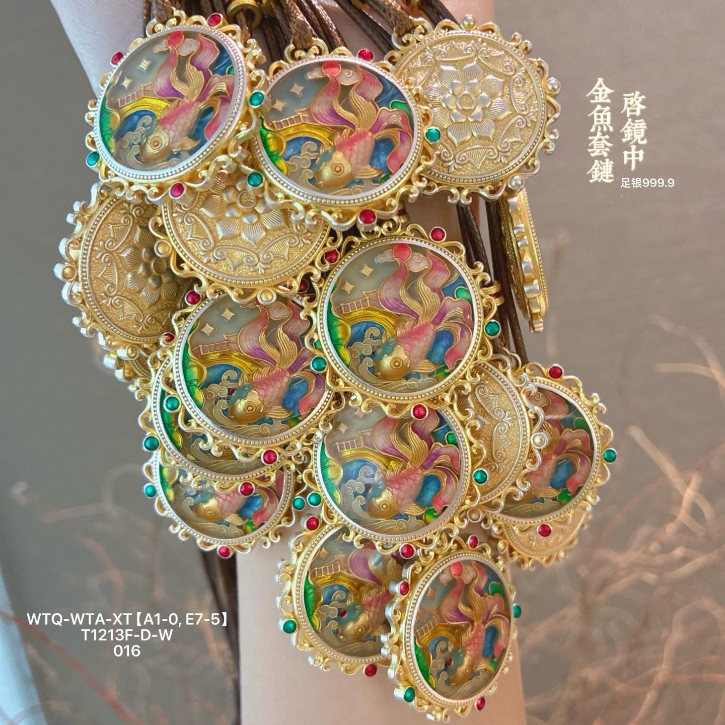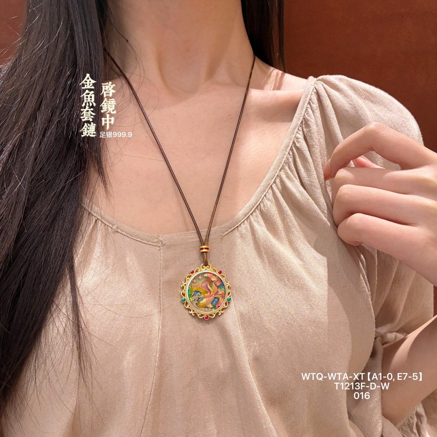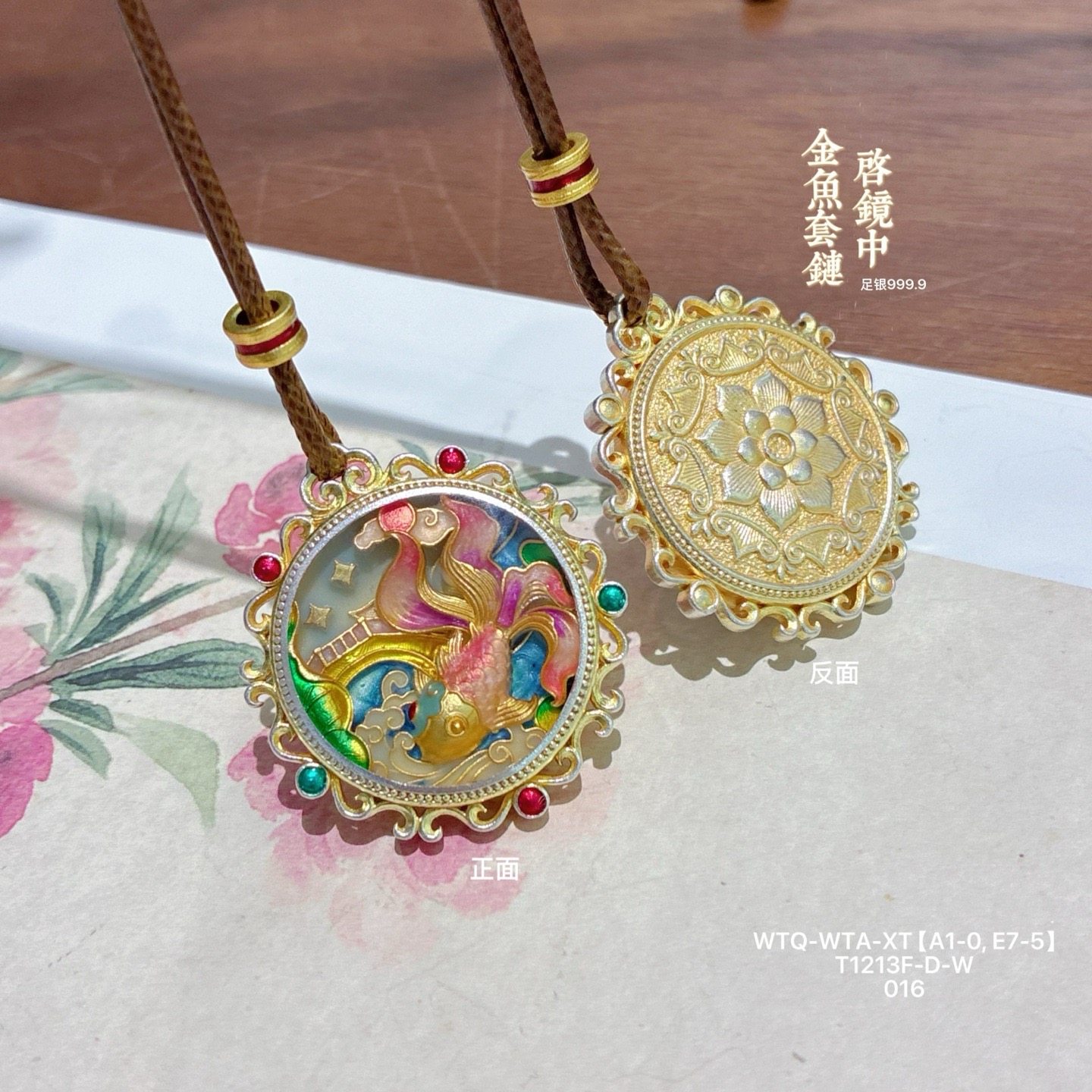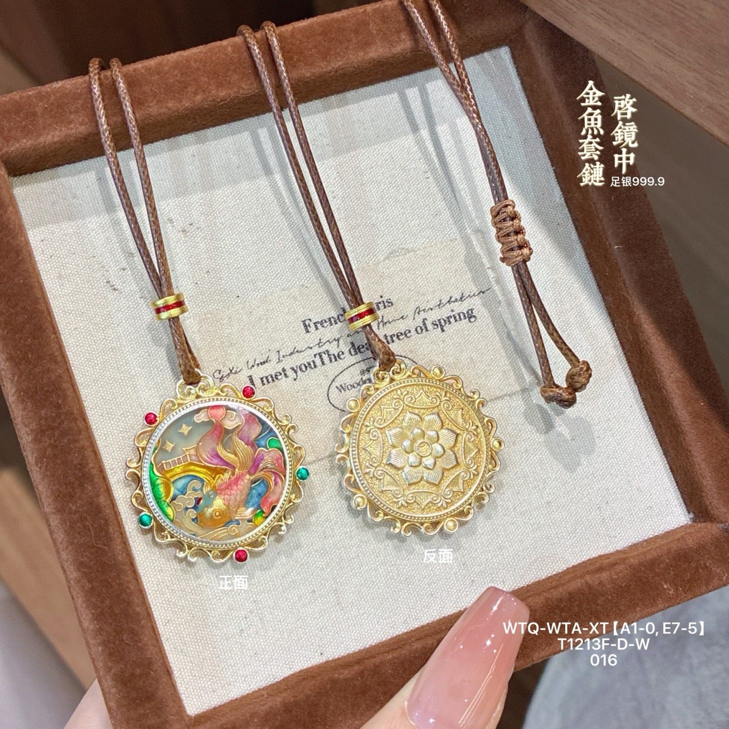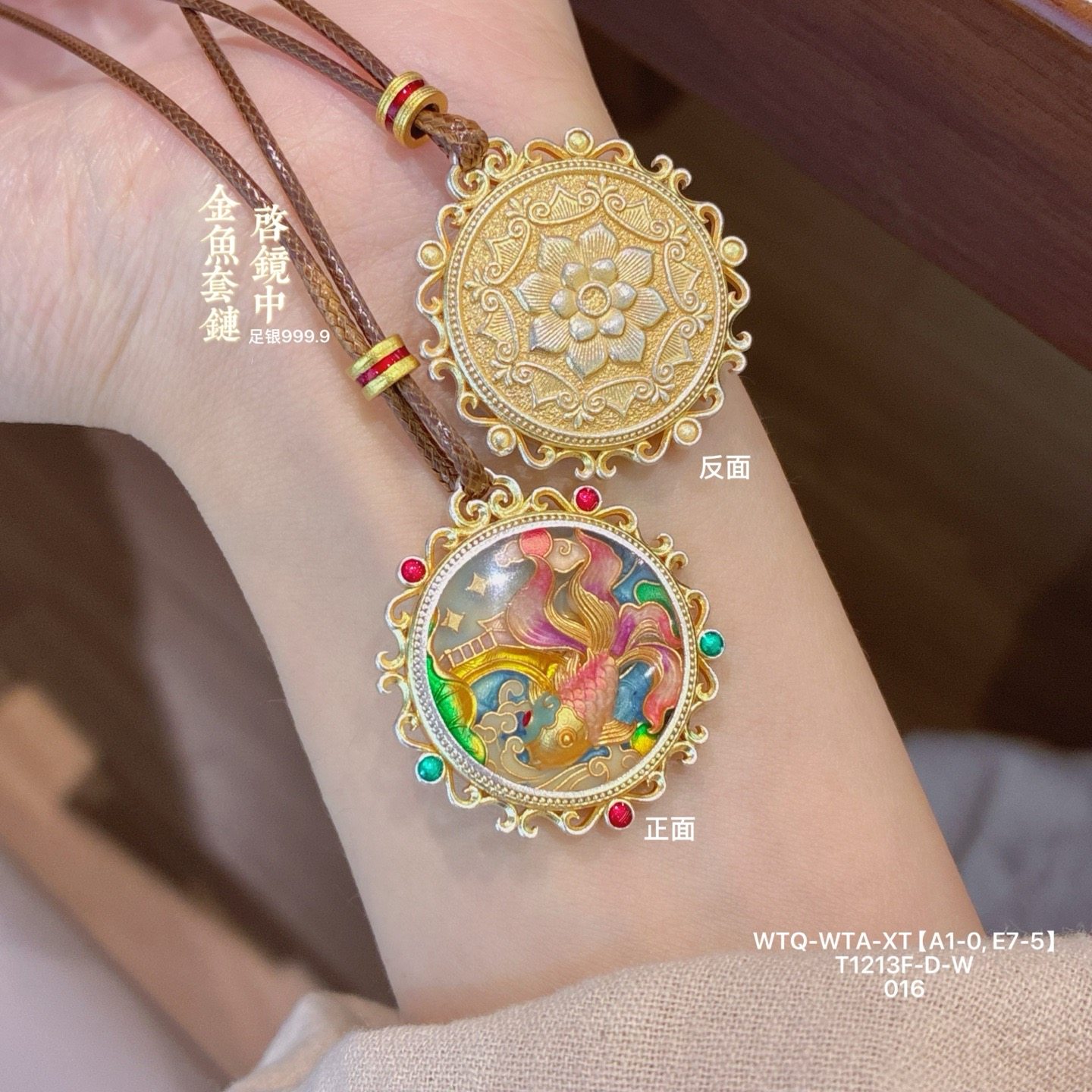 Fish in the Mirror 9999 Pure Silver Pendant Enamel Koi New Chinese Style National Style Necklace New Year Gift