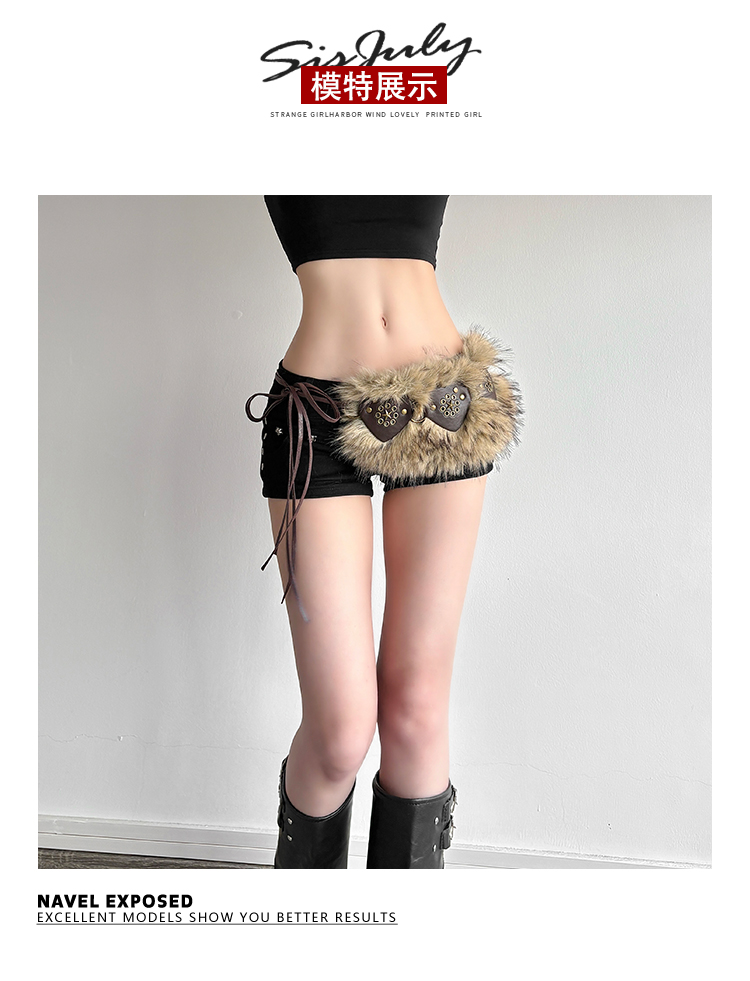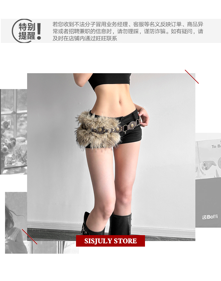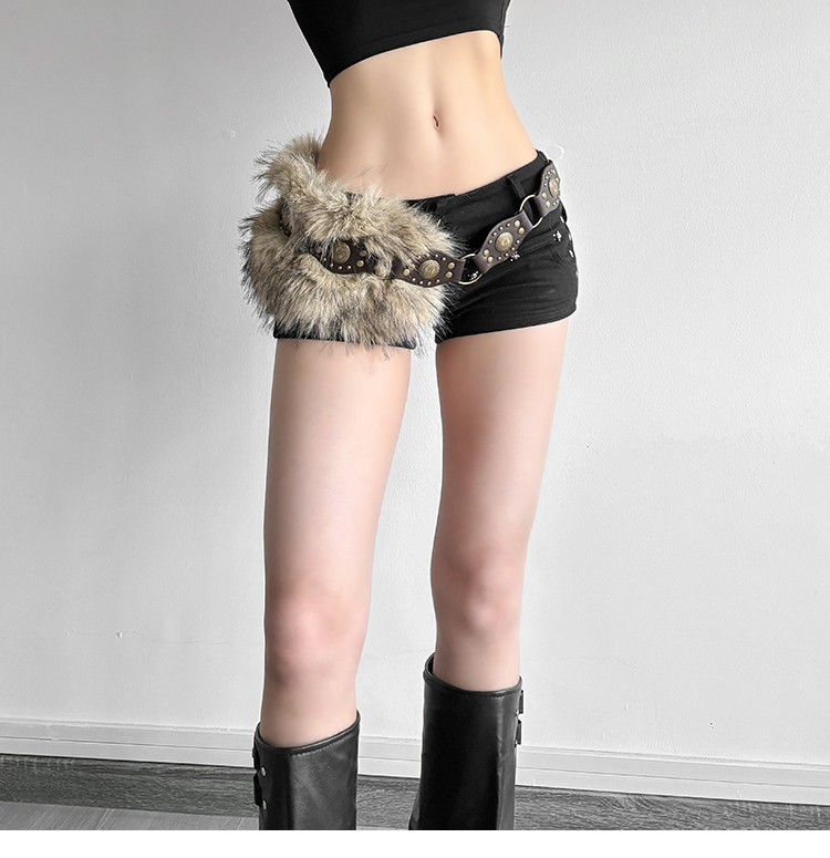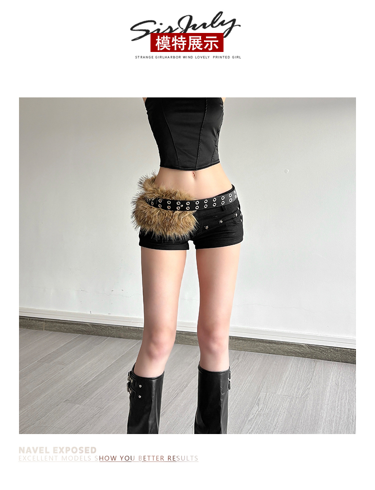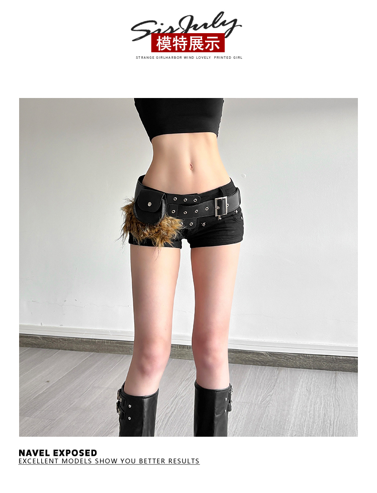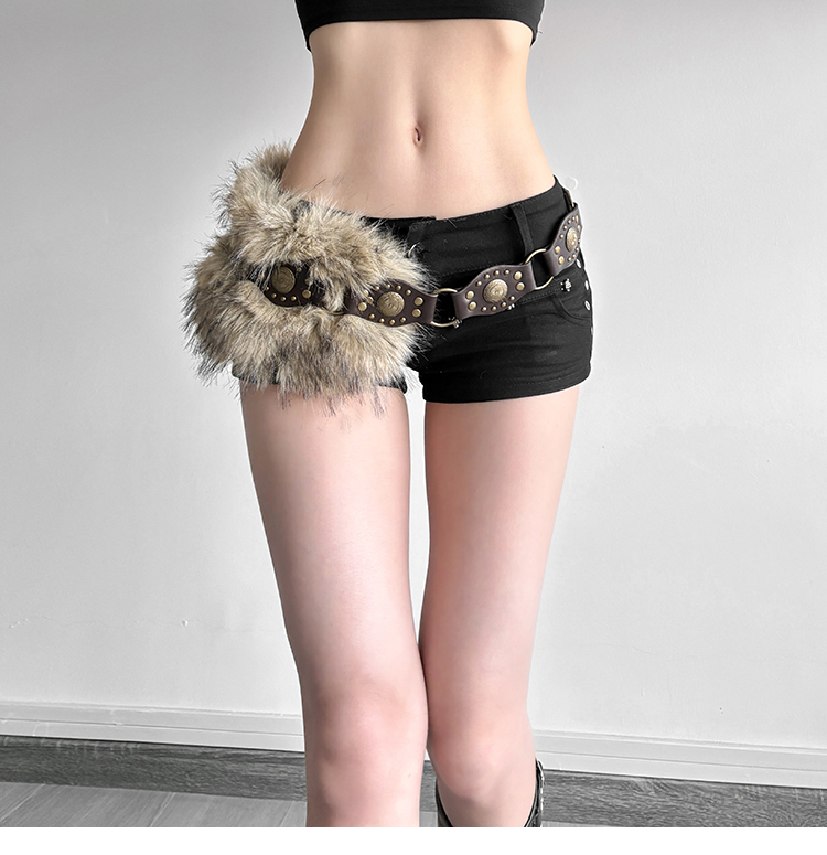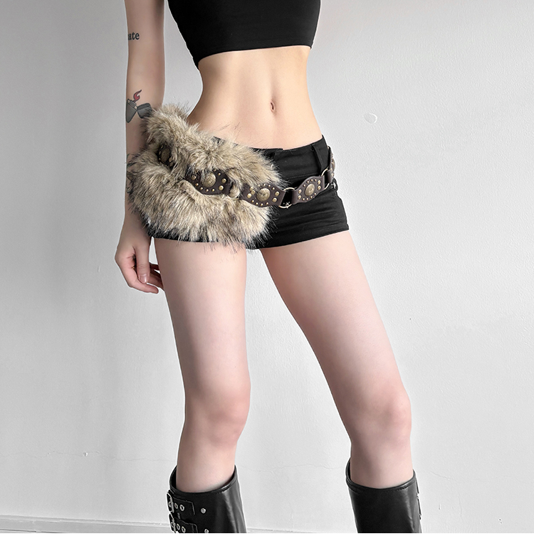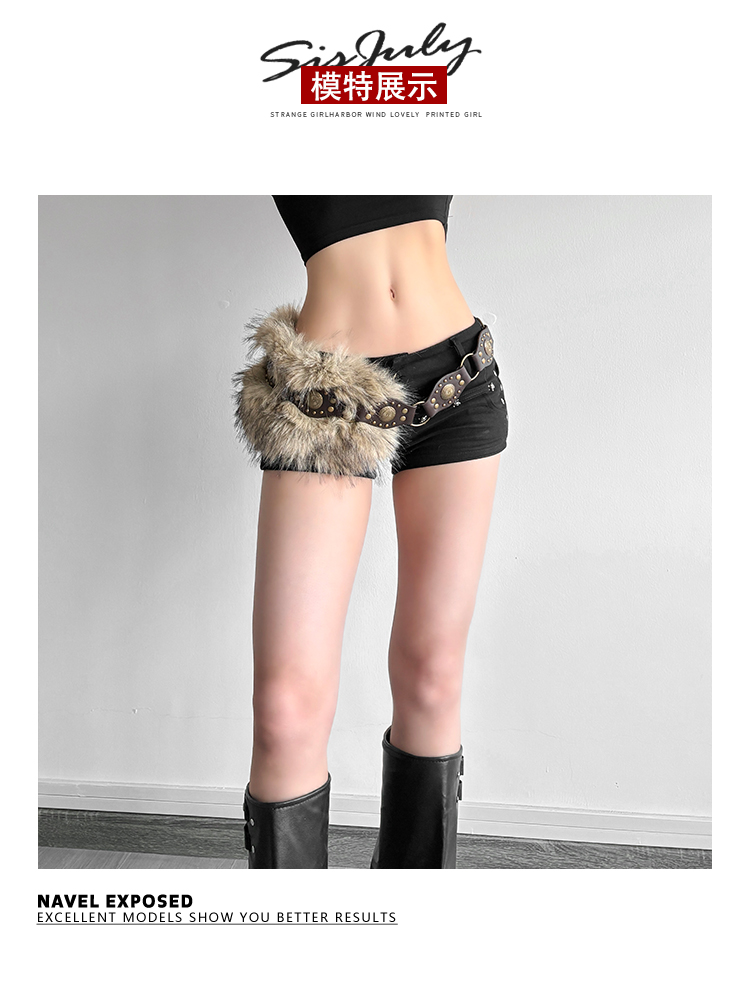 # Sisjuly # American Retro Subculture Nomadic Personality Studded Skirt for Women Y2K Furry Versatile Belt