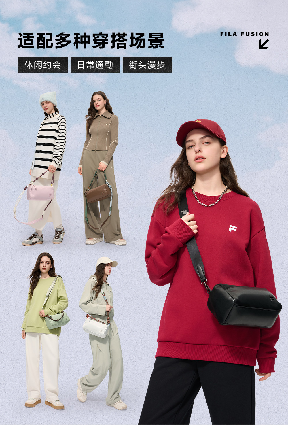 Fila Fusion Small Square Bag Sugar Cube Toast Bag Women's Bag New Shoulder Bag Crossbody Bag Men's Bag