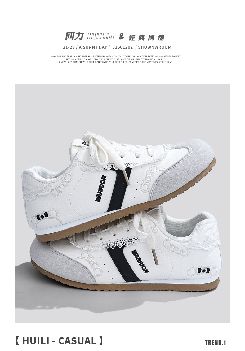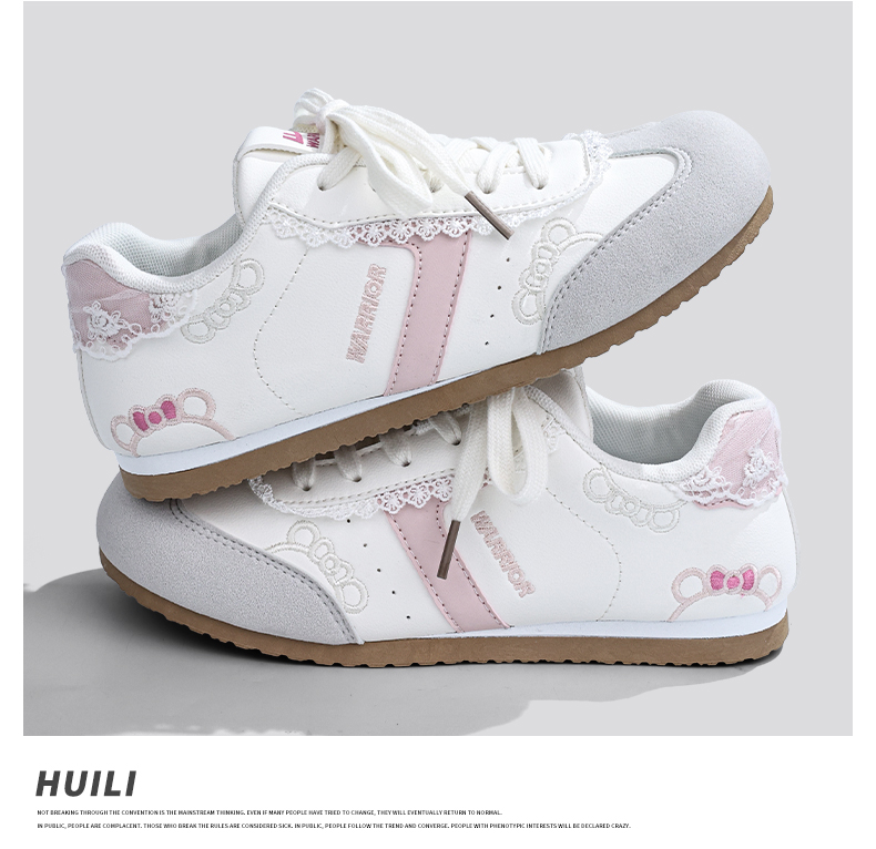 Warrior Women's Shoes 2025 New White Sneakers Women's Trainer Shoes Cute Kt Cat Embroidery Korean Style Versatile Casual Shoes