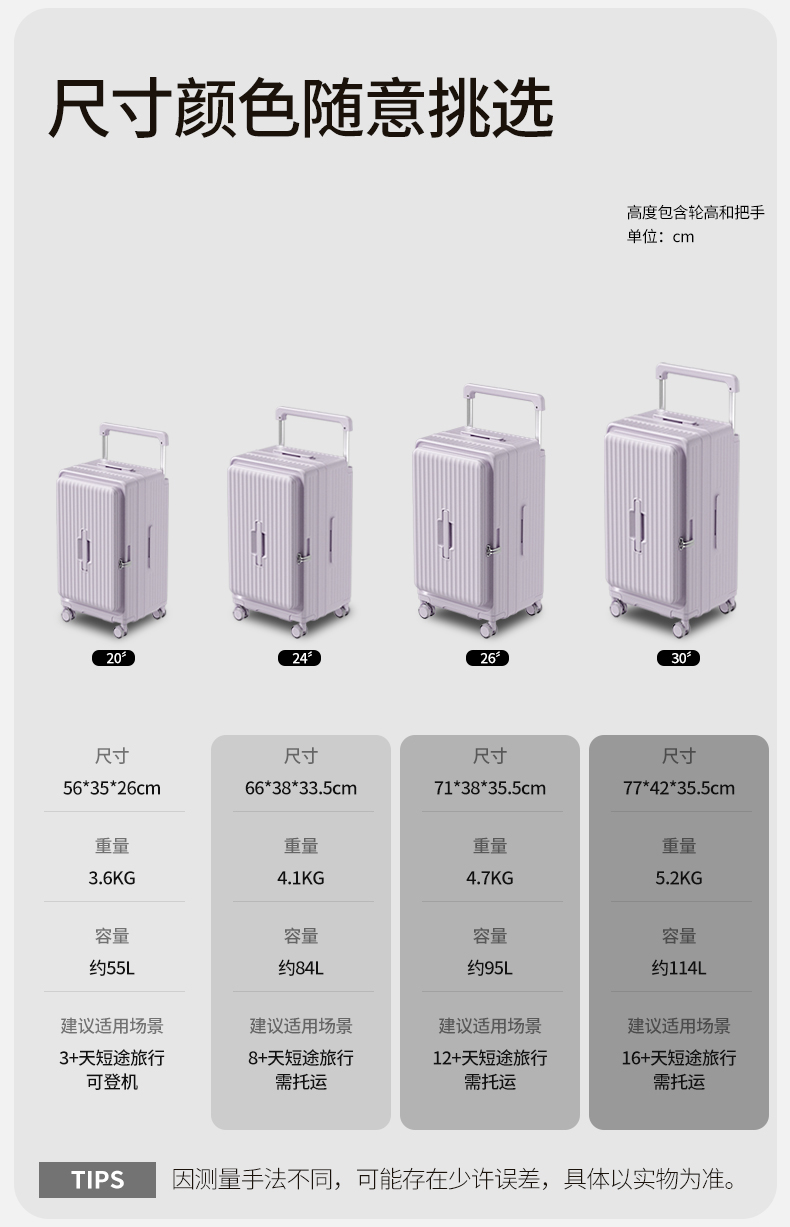 Lusidi 2025 Suitcase for Women, Wide Trolley Travel Case, Sturdy and Durable, Thickened, Large Capacity, Password Lock, 26inch for Men