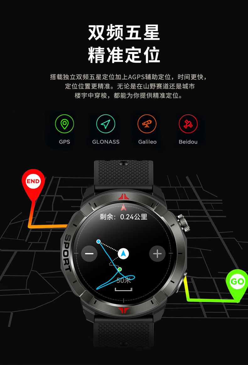 Marathon Running-Specific Gps Positioning Smart Sports Watch for Men and Women, Pace Tracking, Heart Rate, Outdoor Compass