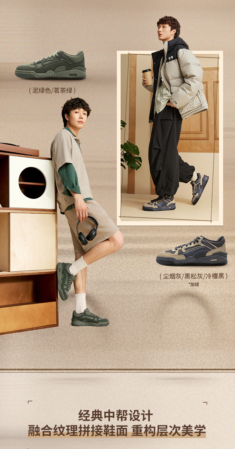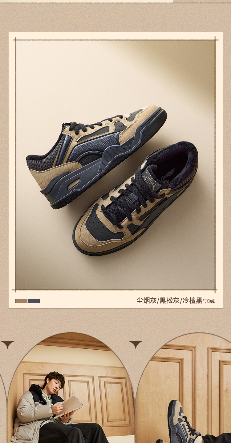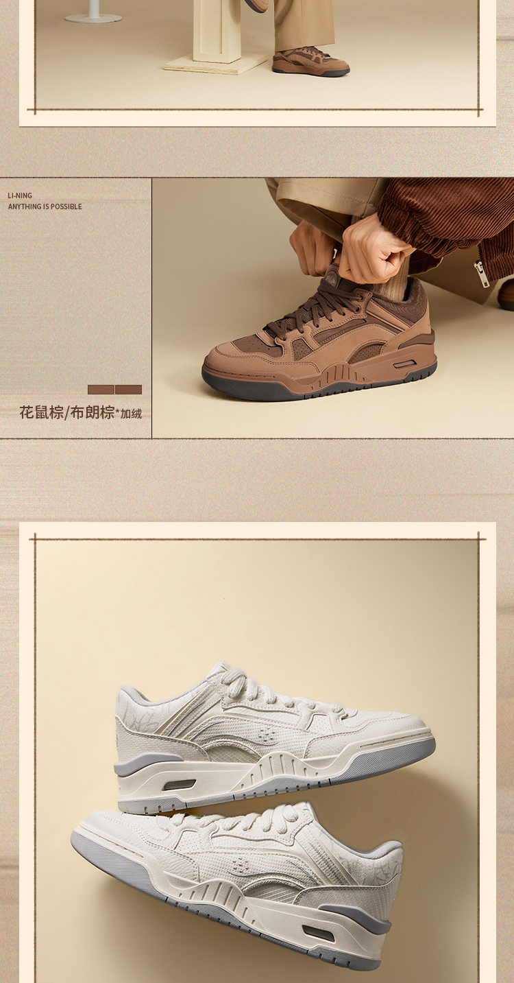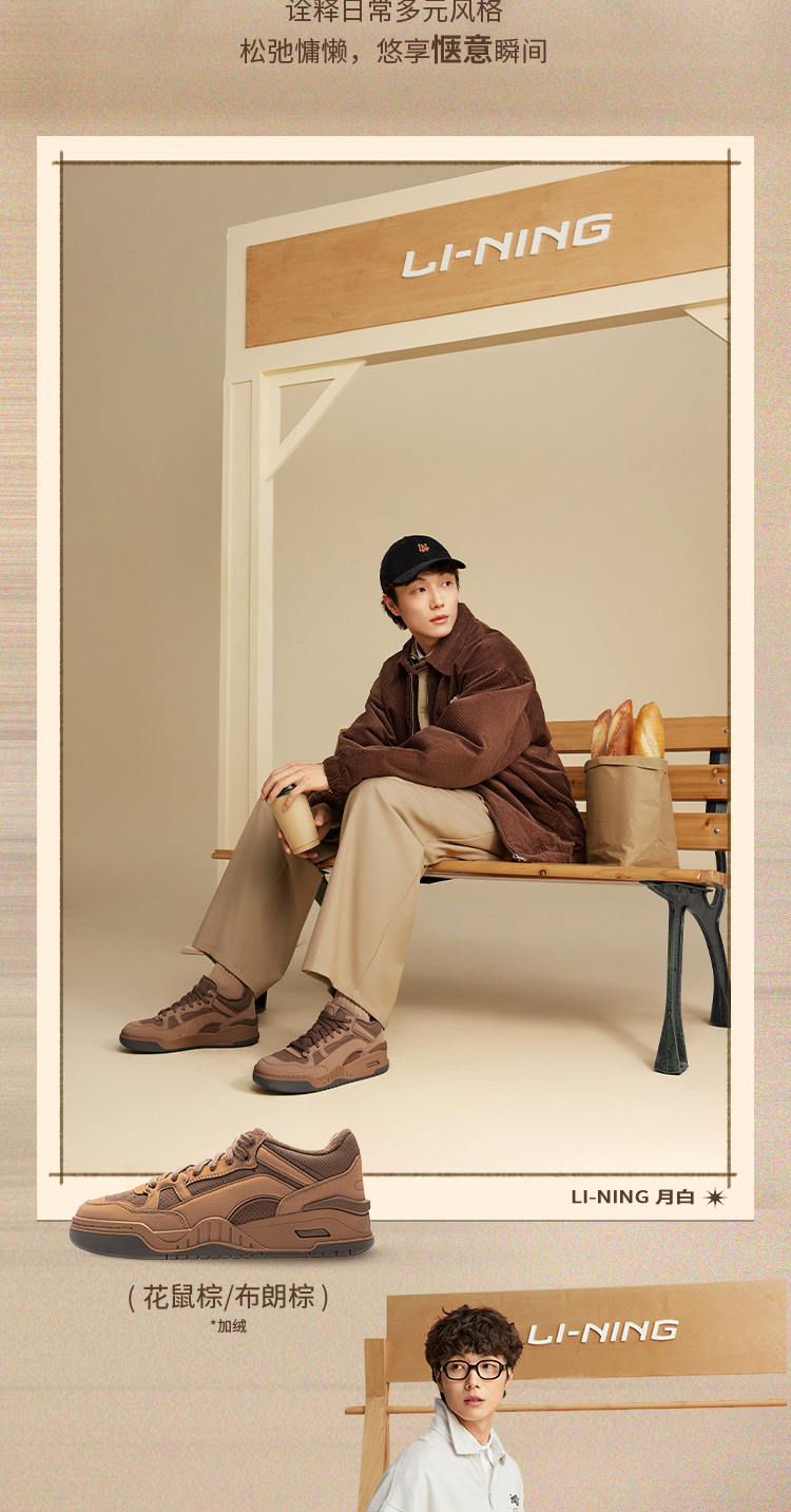 Li Ning Yuebai 2 Mid Casual Shoes Men's Shoes Autumn New Plush Retro Black Sneakers Mid-High Top Sports Shoes