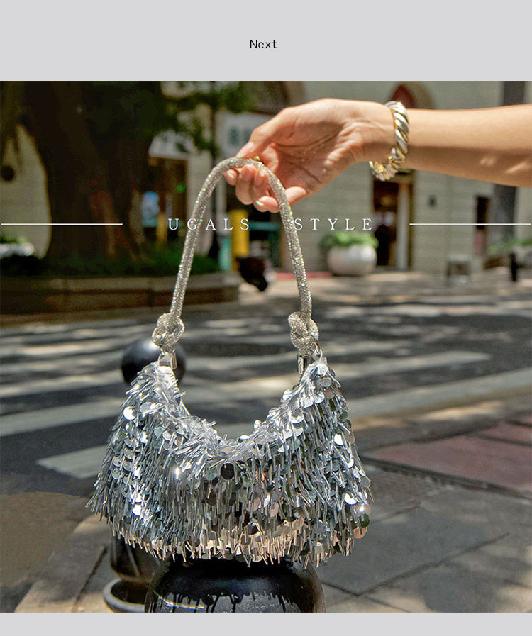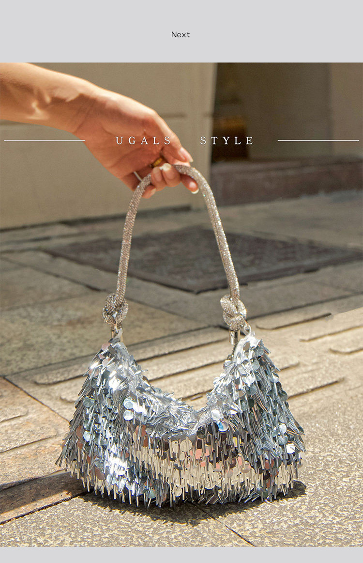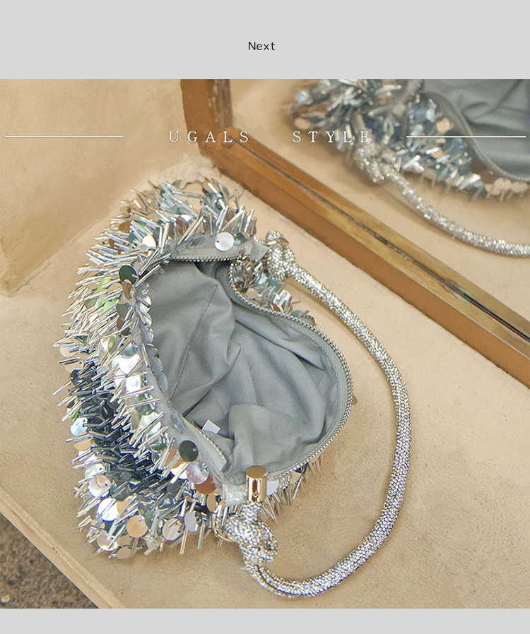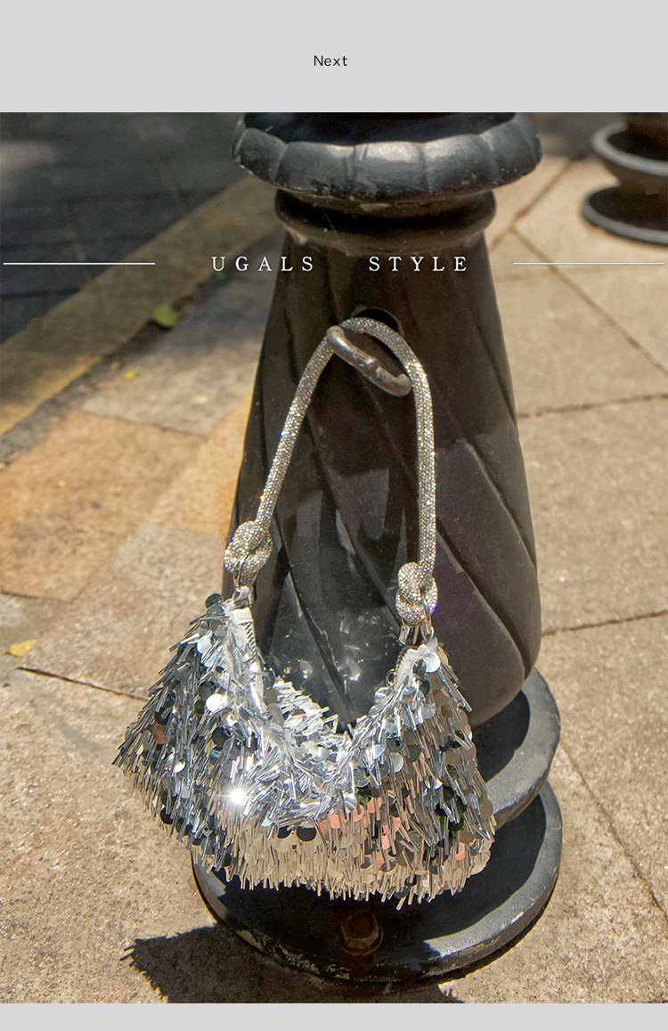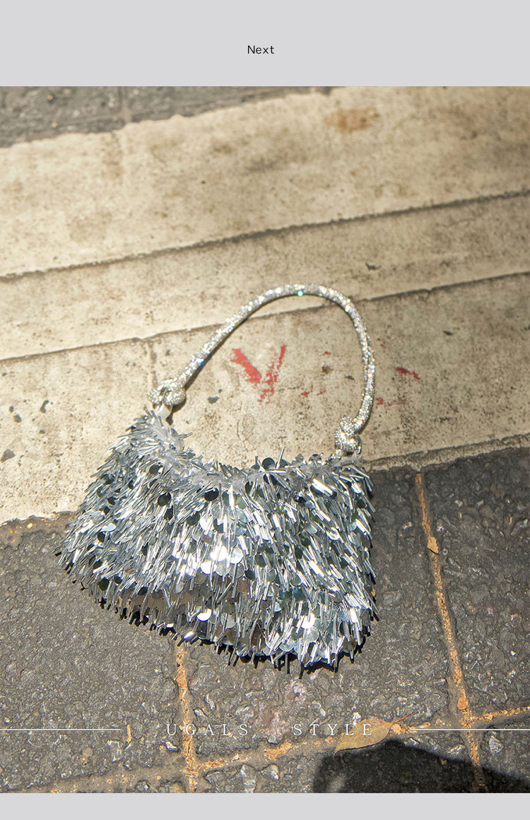 Ugals French Retro Sequin Shiny Rhinestone Banquet Dumpling Tote Underarm Clutch Bag