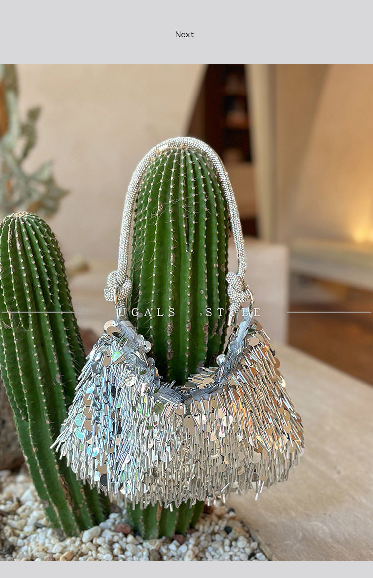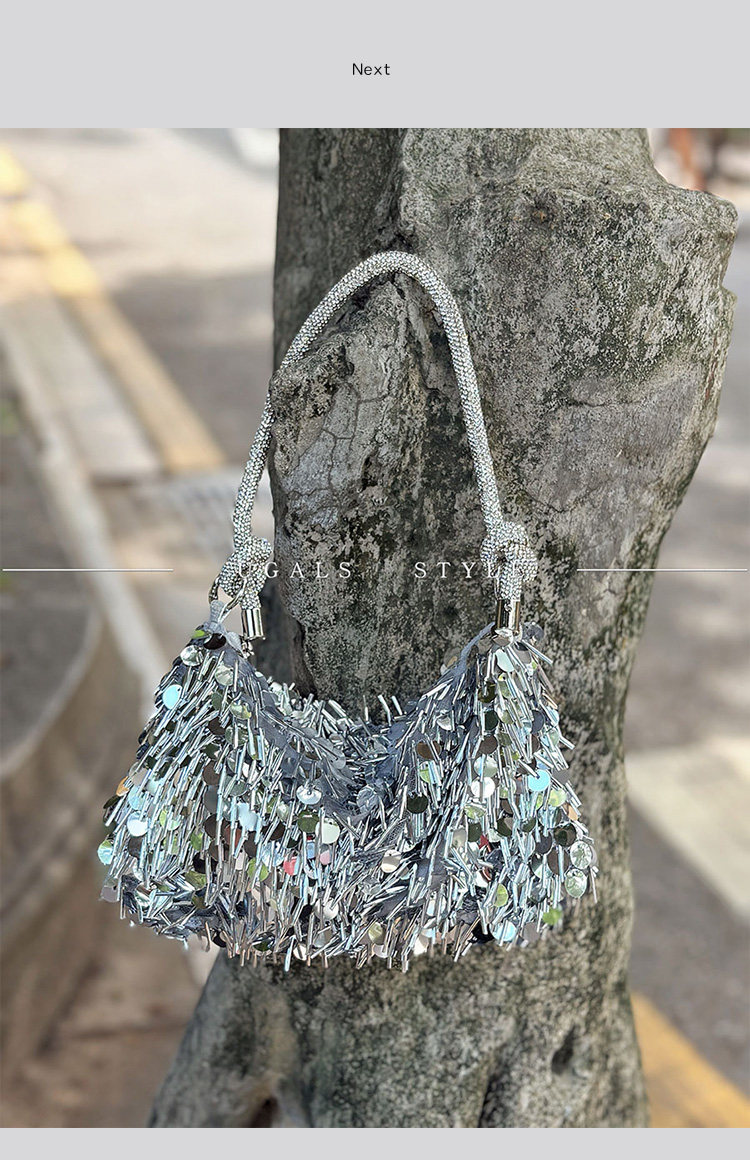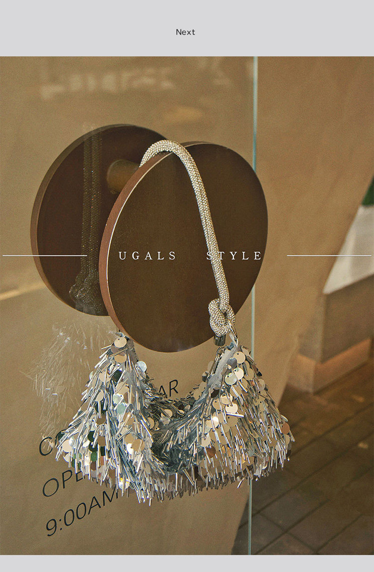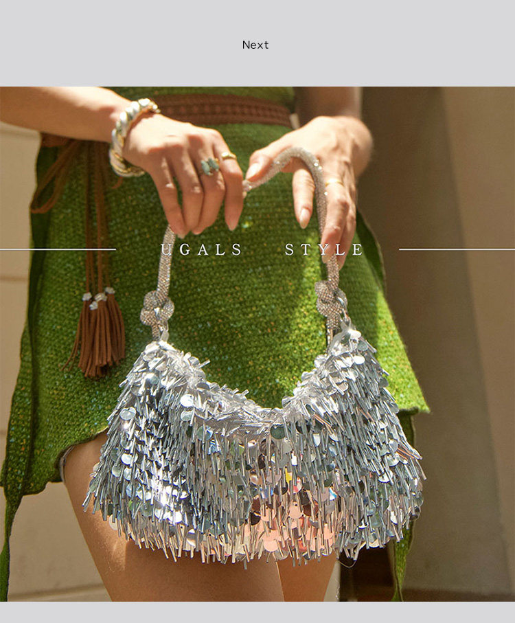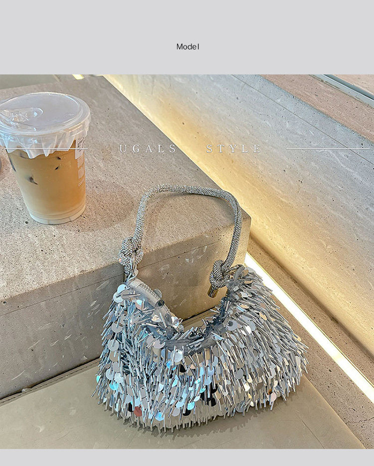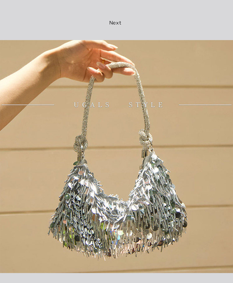 Ugals French Retro Sequin Shiny Rhinestone Banquet Dumpling Tote Underarm Clutch Bag