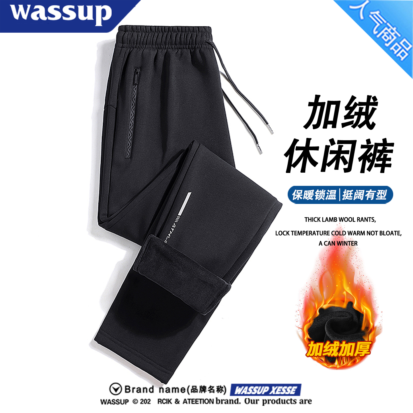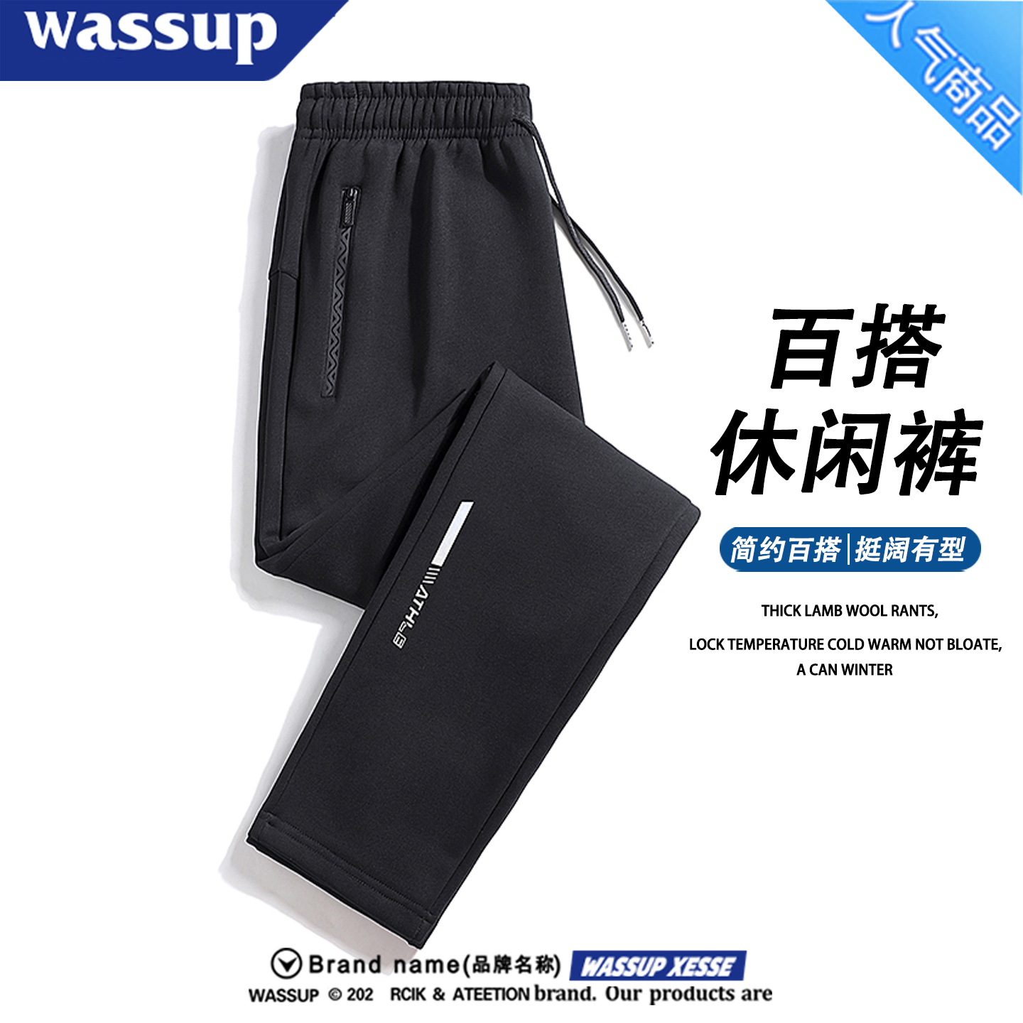 Wassup American-Style Casual Pants for Men, Suitable for Summer, Autumn, and Winter, Loose Fit, Versatile, Fleece-Lined, Thickened, Jogger-Style, Sporty, Drapey Long Pants