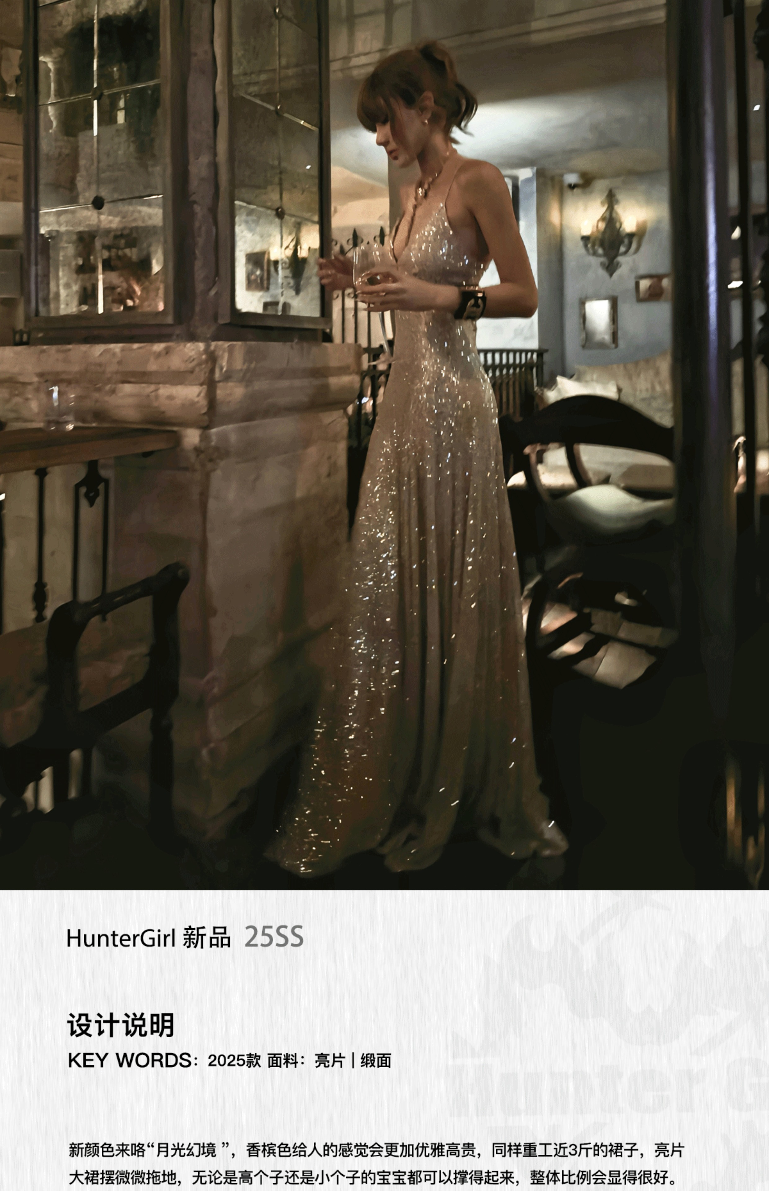 HunterGirl Moonlight Fantasy Adult Ceremony Graduate Day Banquet Evening Dress Sling Sequin Dress