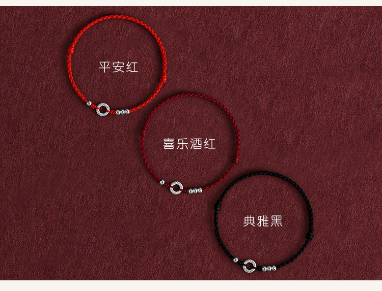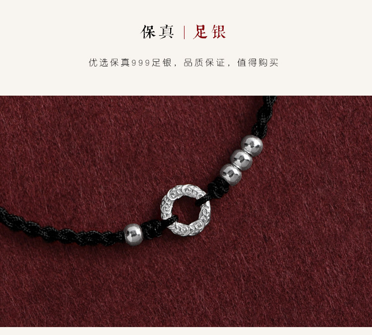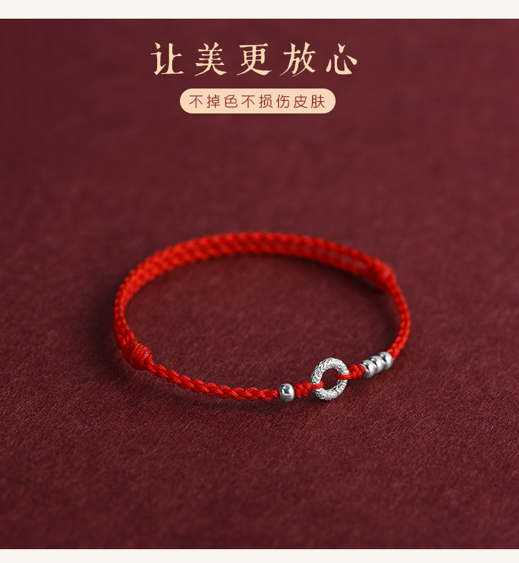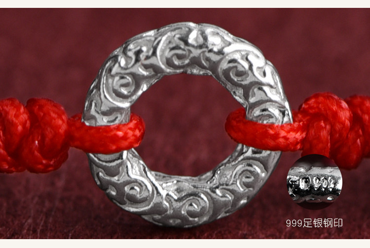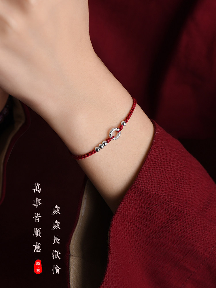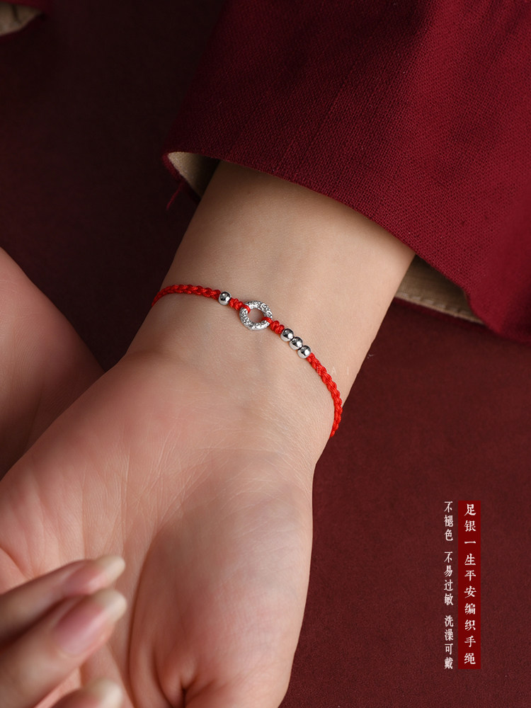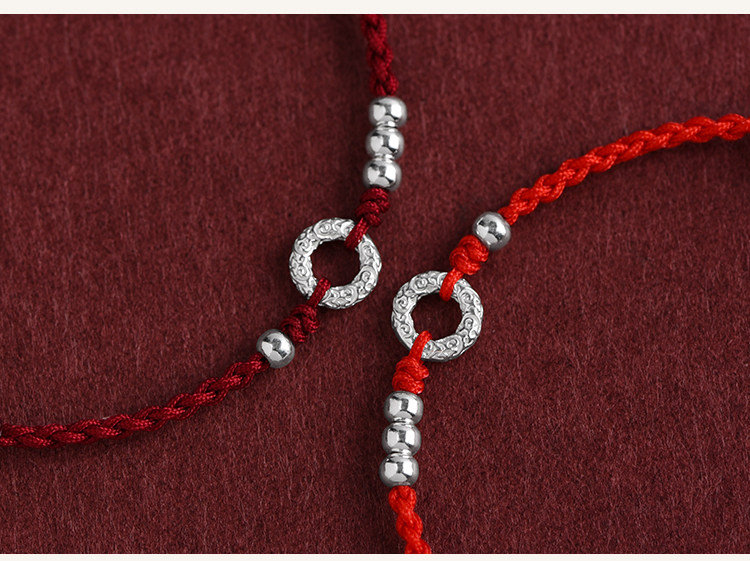 Simple 999 Pure Silver Peace Buckle Bracelet for Women, Thin Red String Anklet for Men, Hand-Woven Birth Year Fortune Bracelet