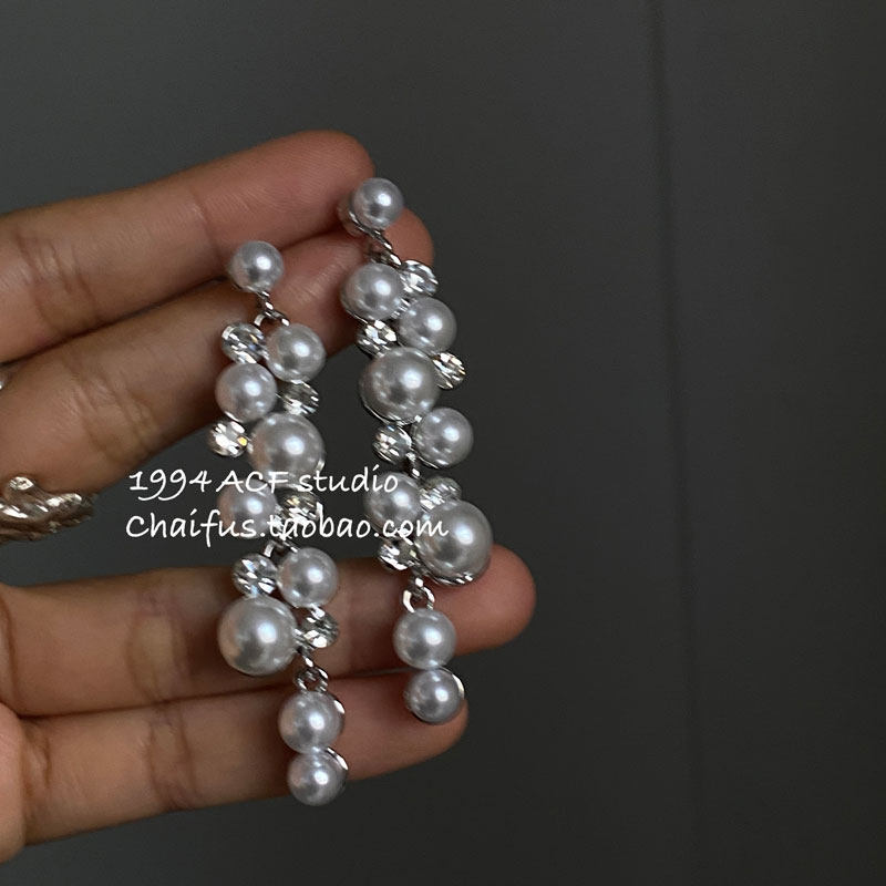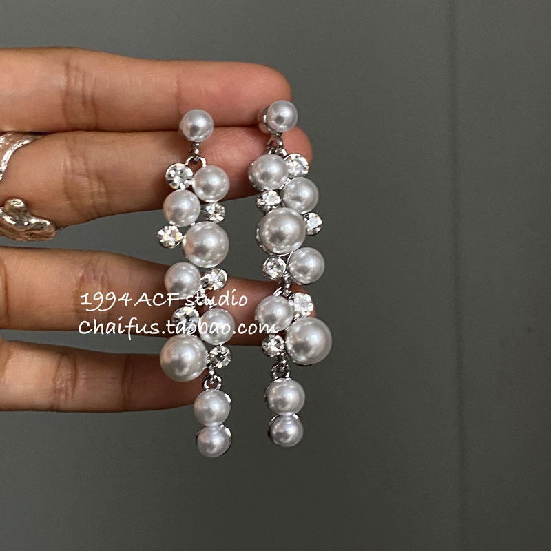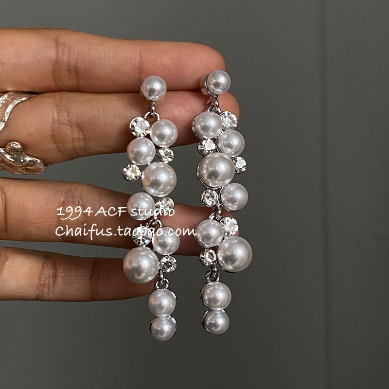 Chaifu Studio/E863 French Retro Gentle Irregular Pearl Earrings with Diamond Inlay for Romantic Dates
