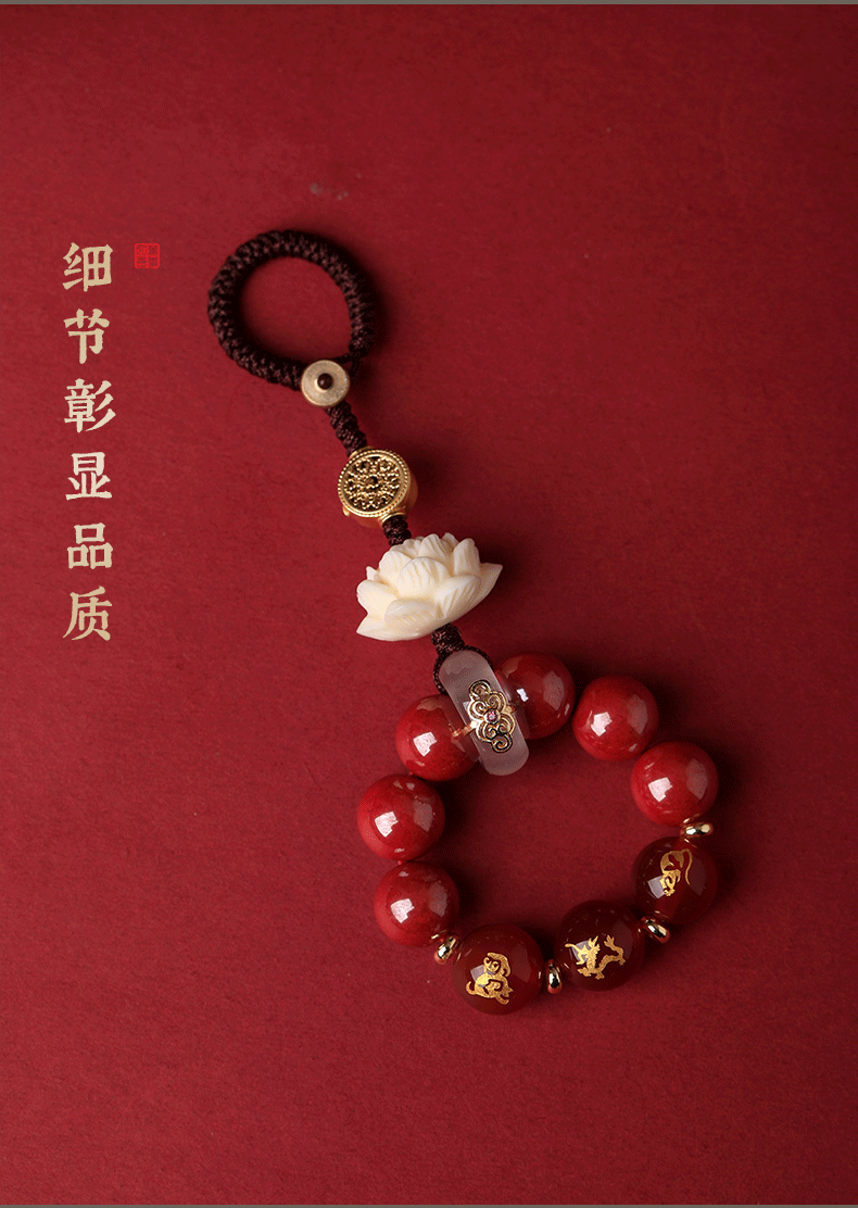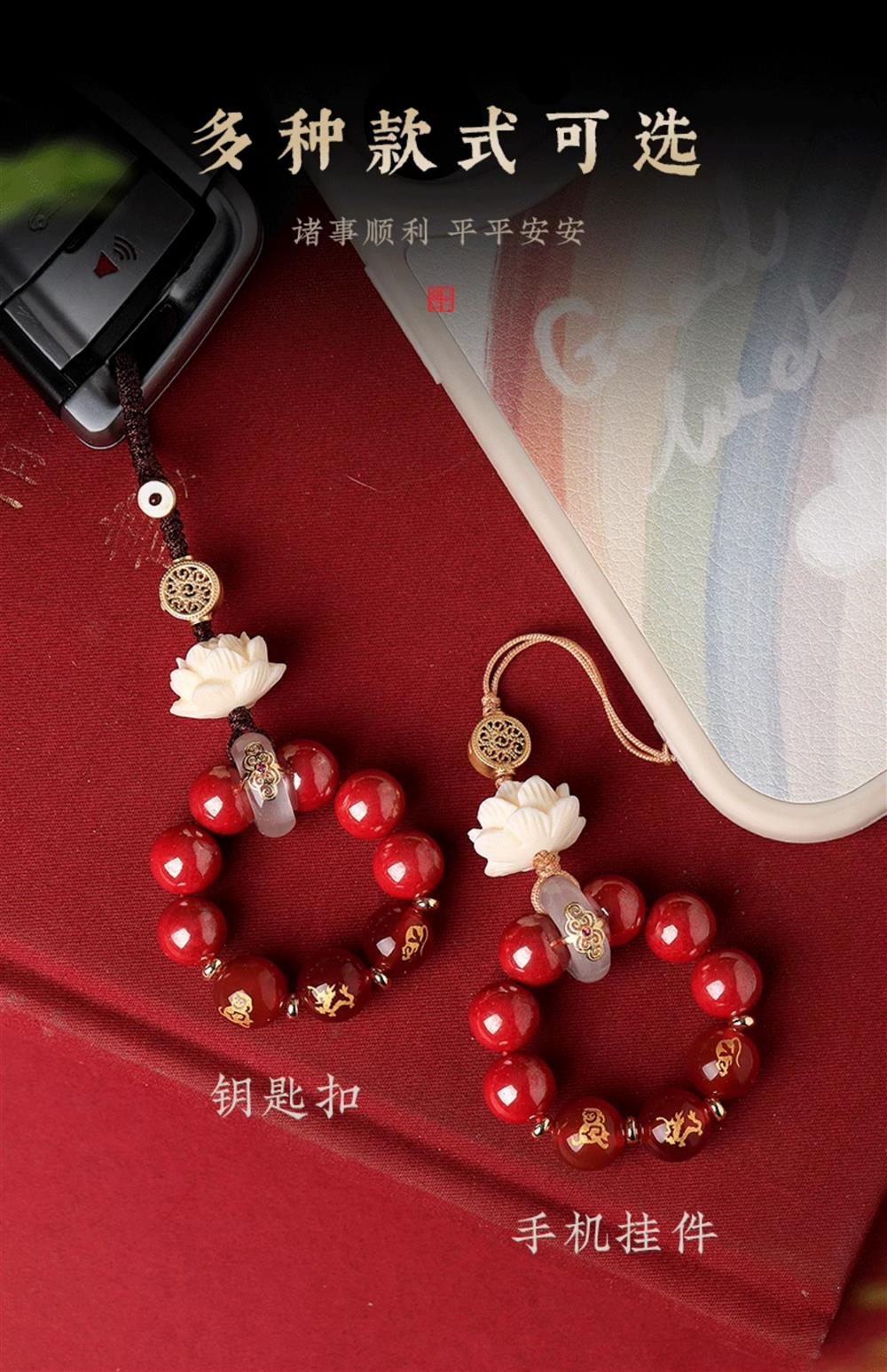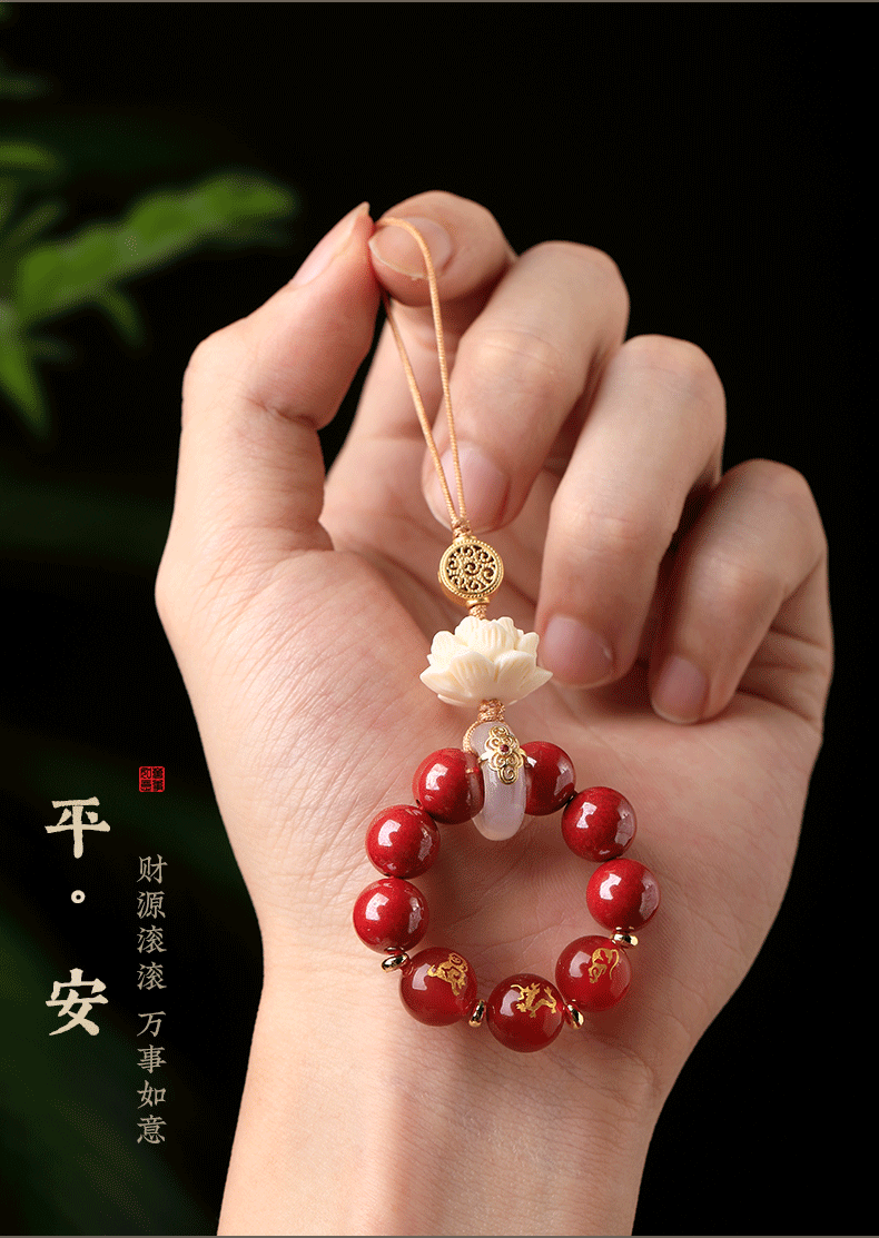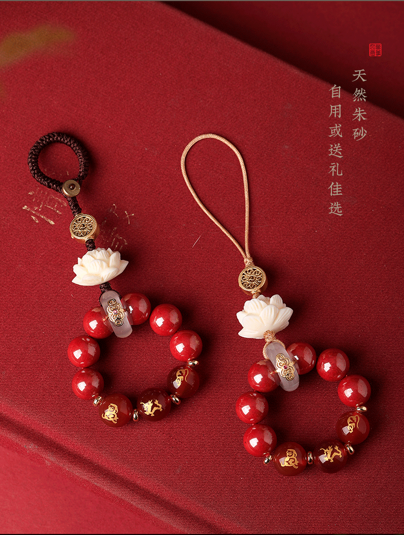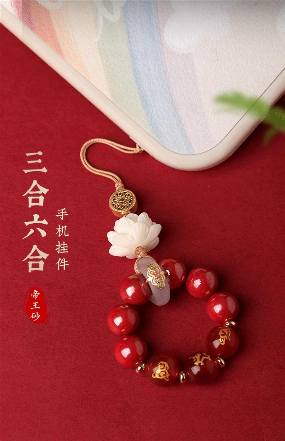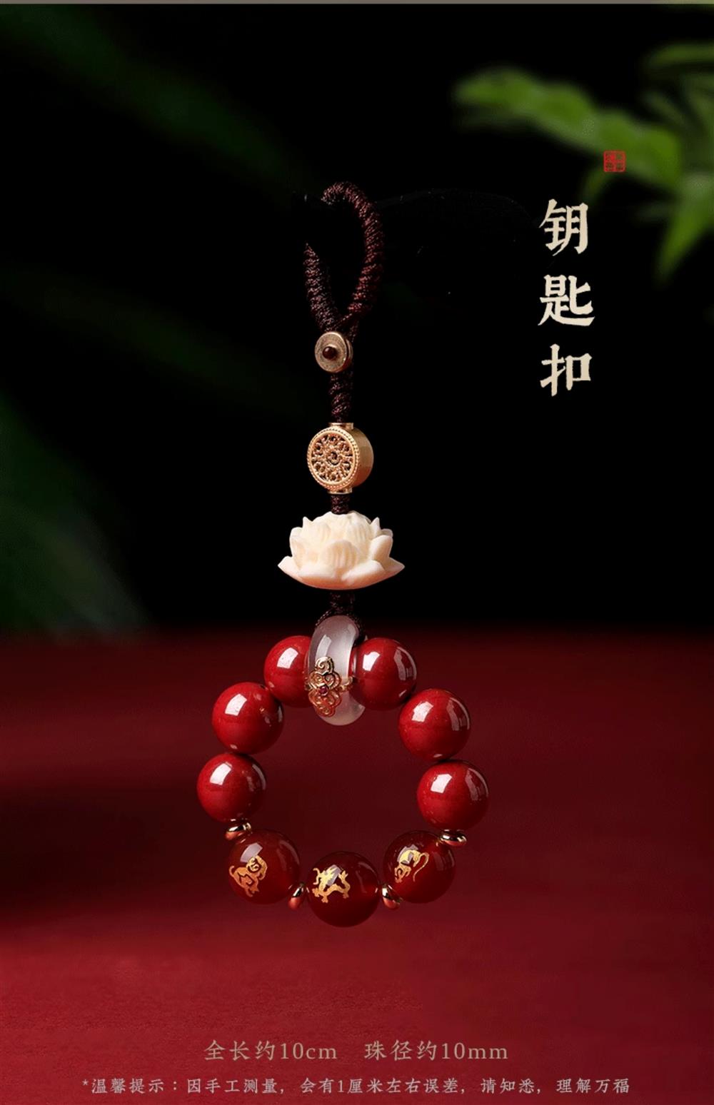 Putuo Mountain 2026 Zodiac Year Three Harmonies and Six Harmonies Cinnabar Women's Fortune-Attracting Car Keychain Pendant
