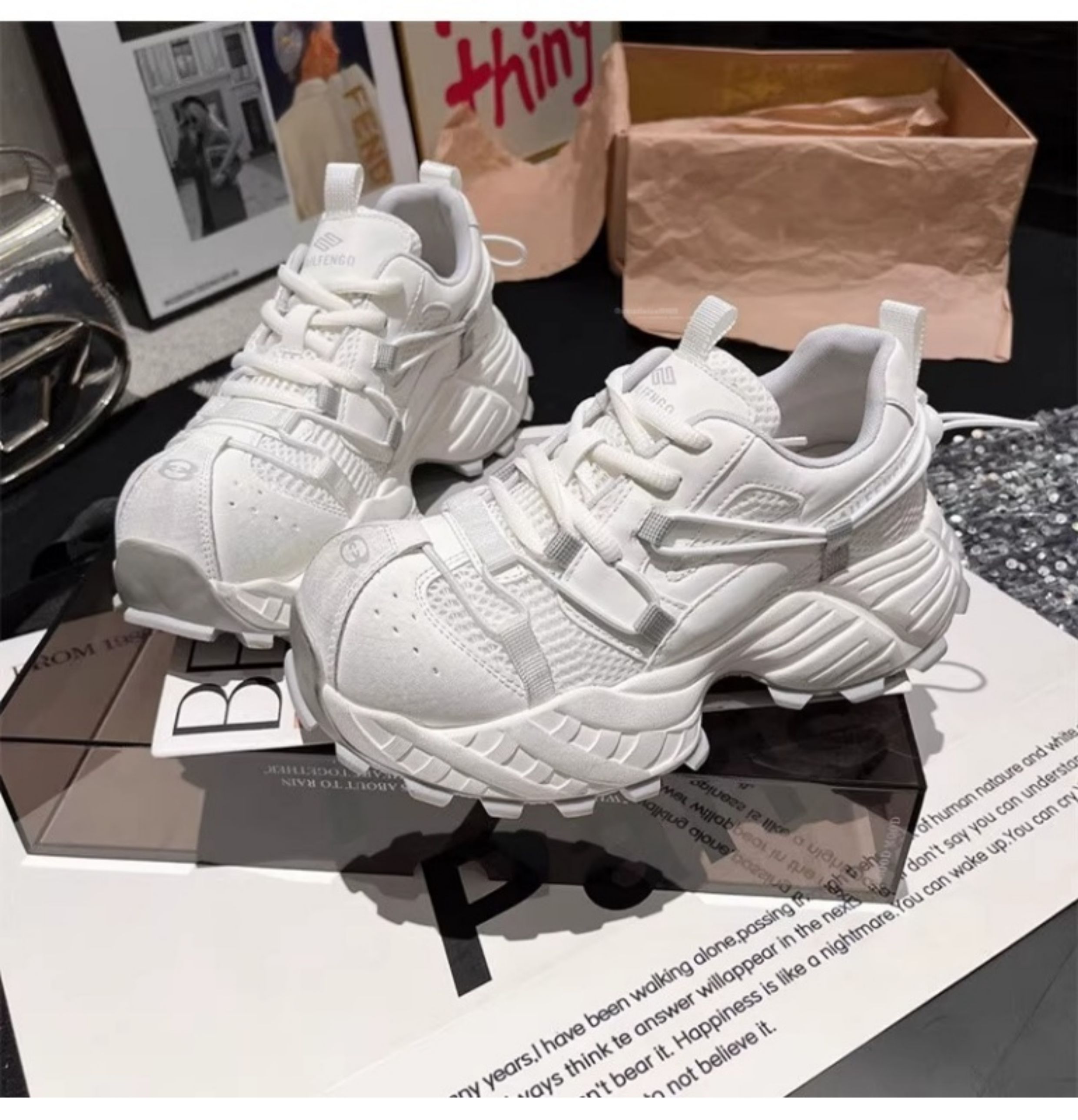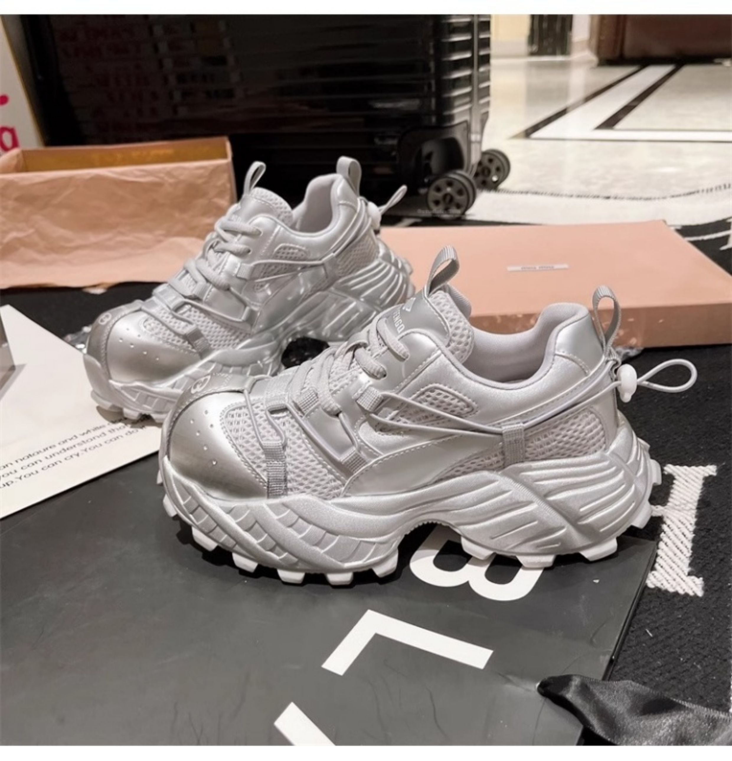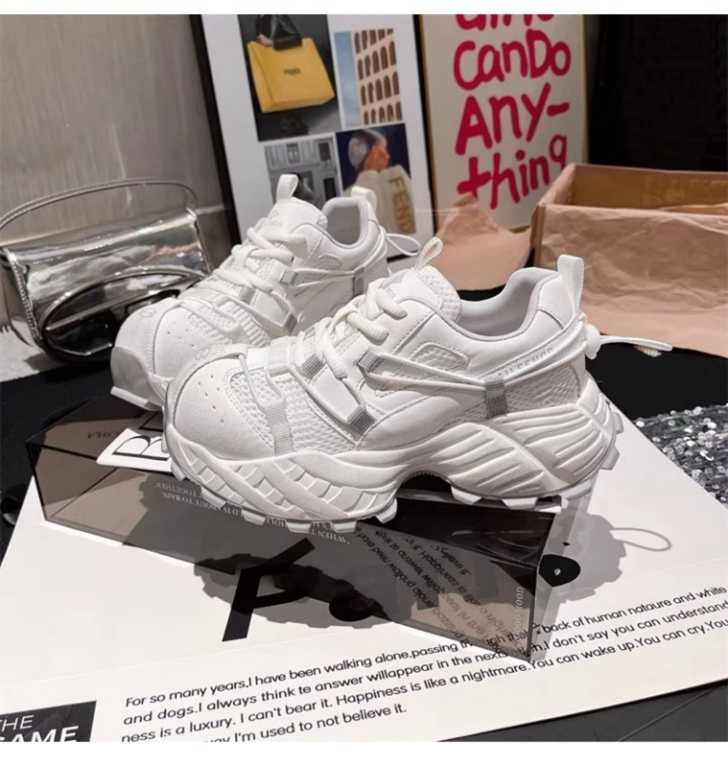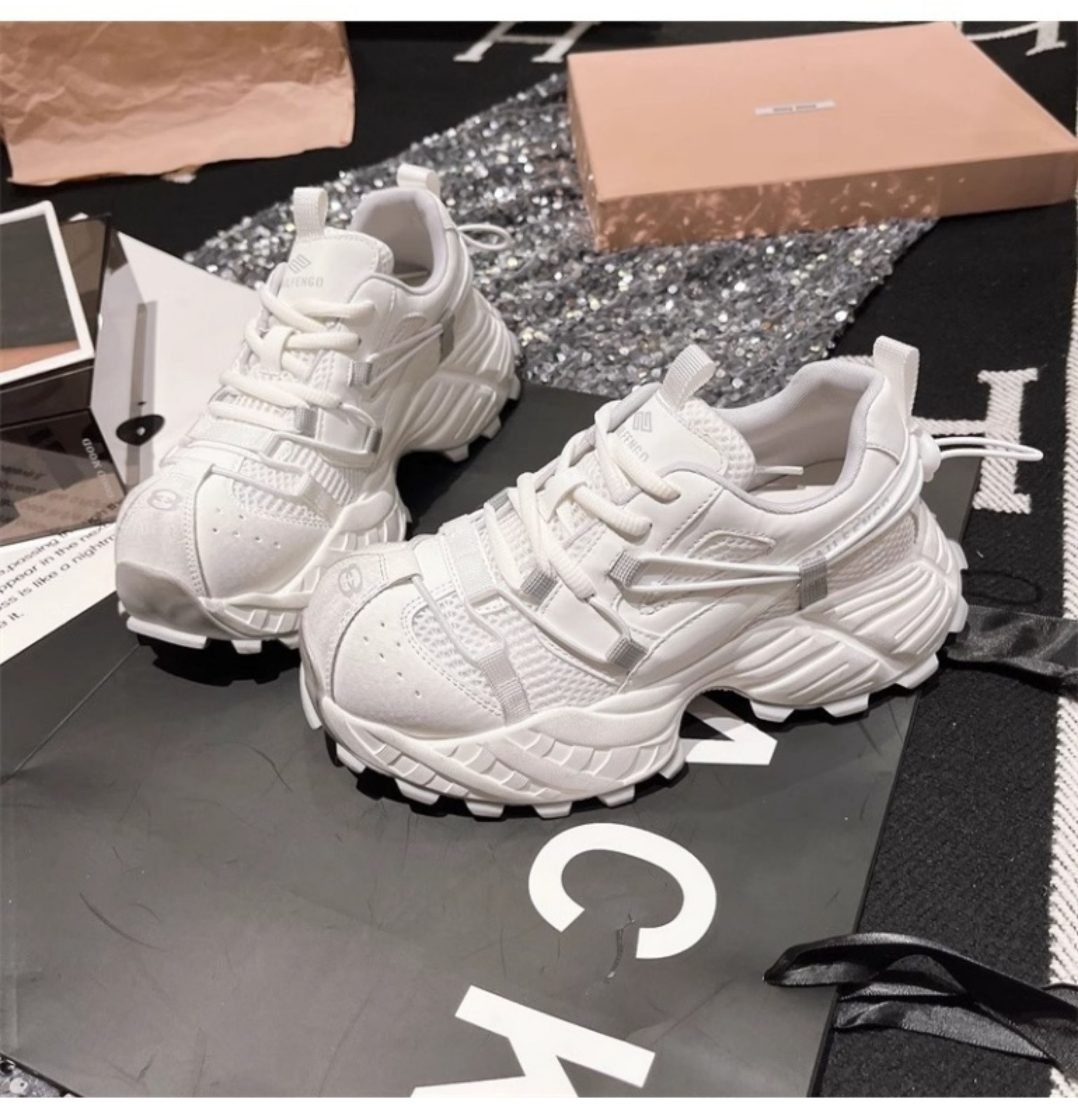 Hong Kong Casual Versatile Lace-Up Dad Shoes for Women 2025 Summer New Style Petite Thick-Soled Platform Vintage Sneakers