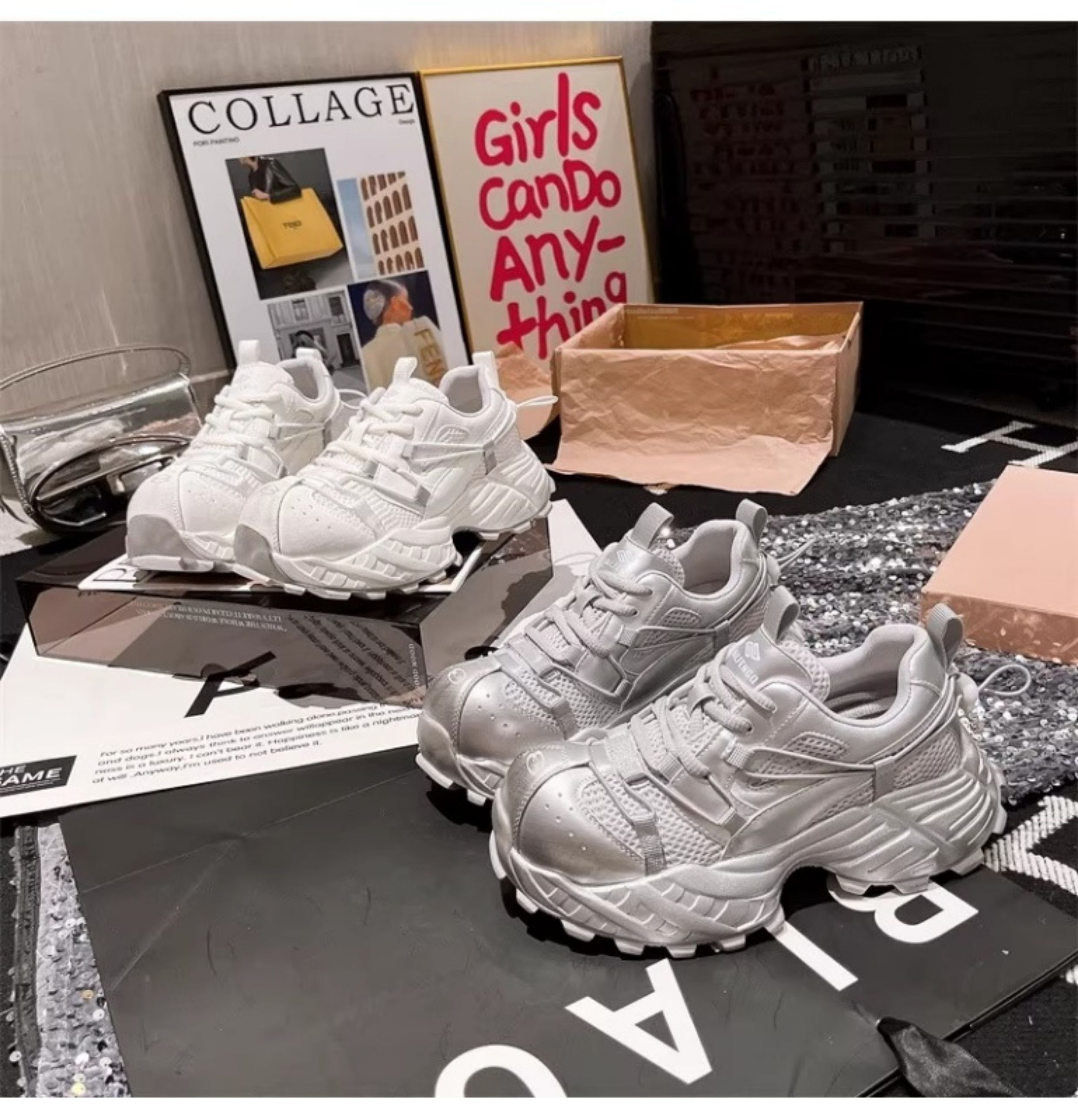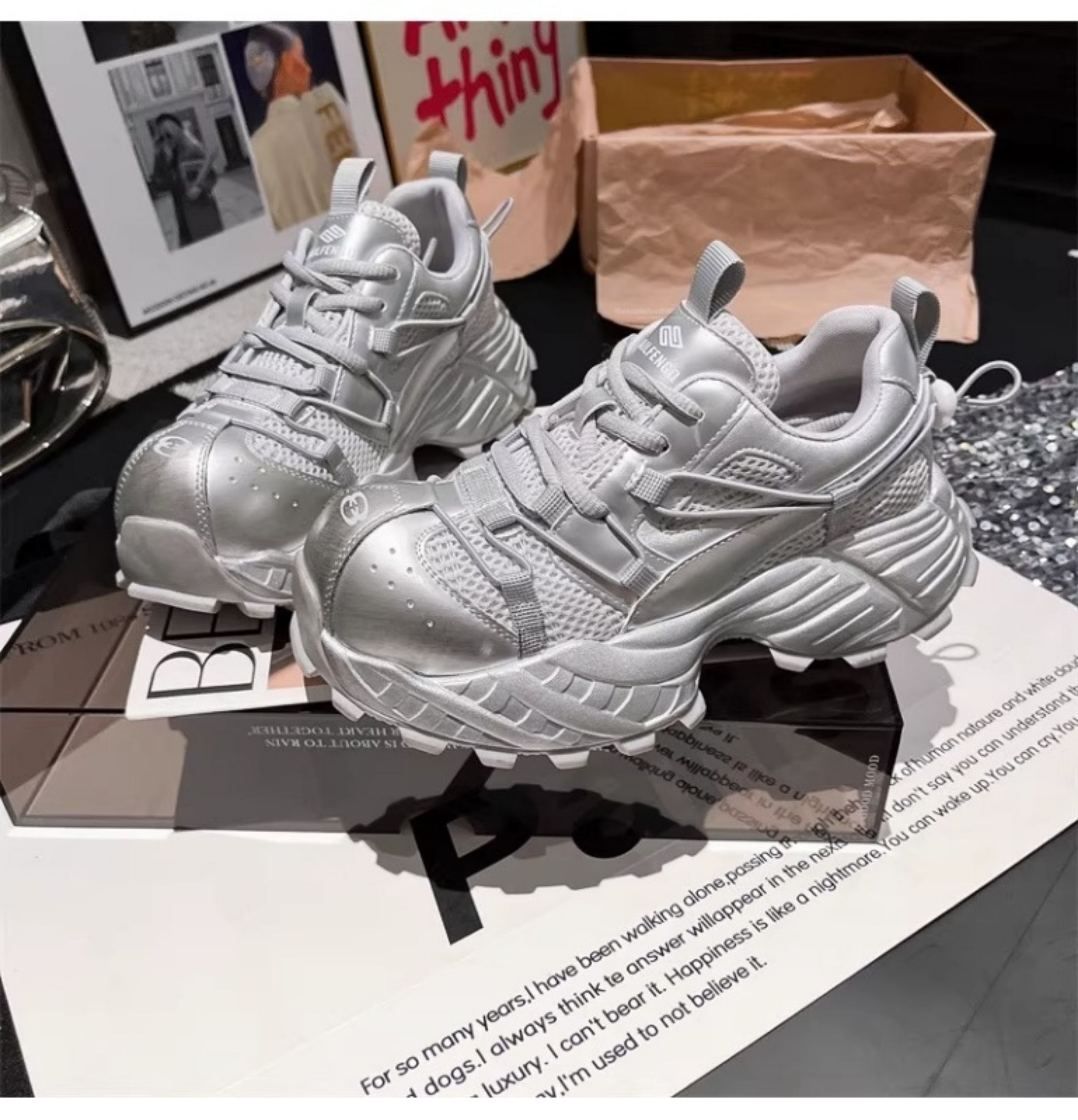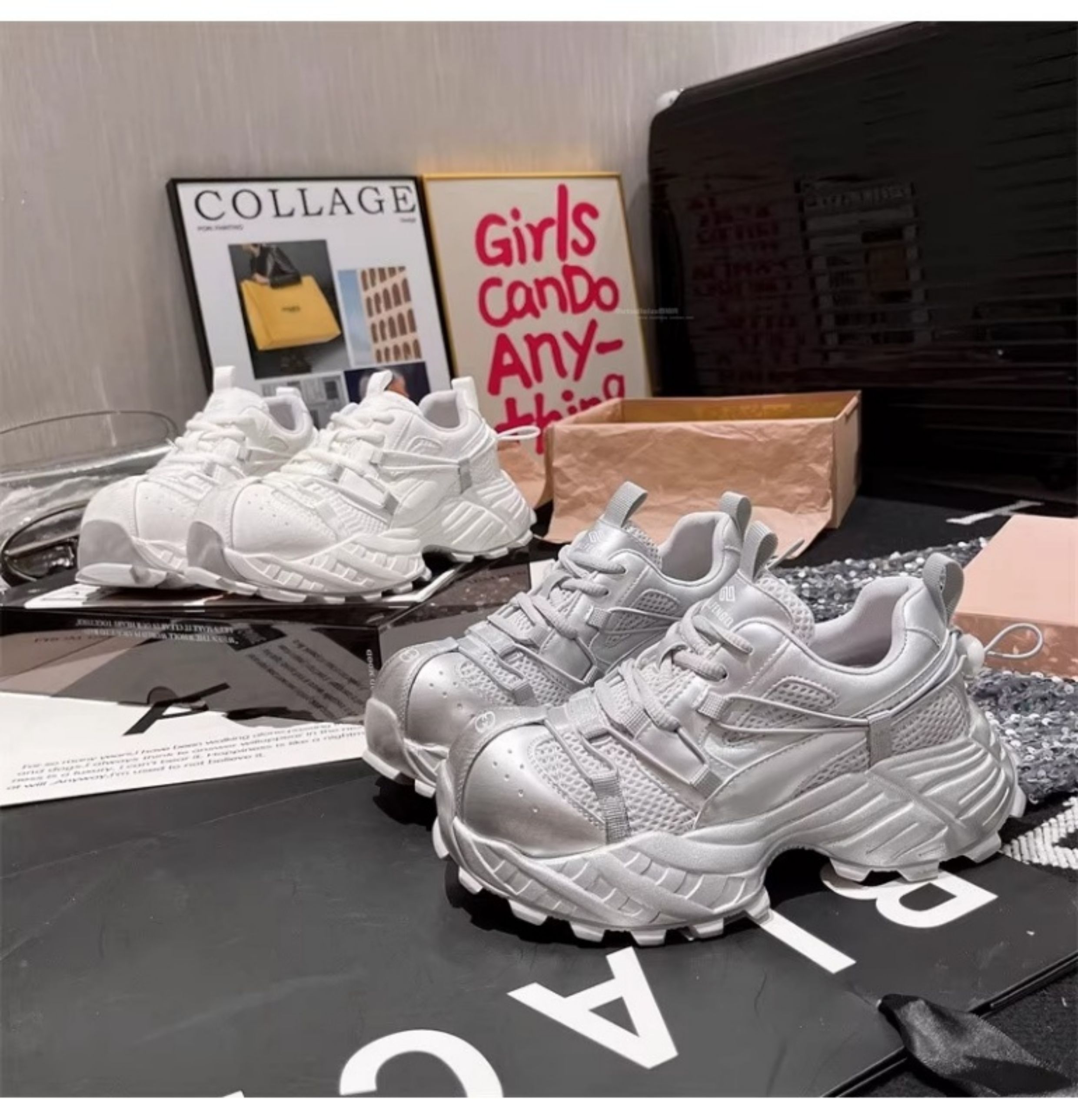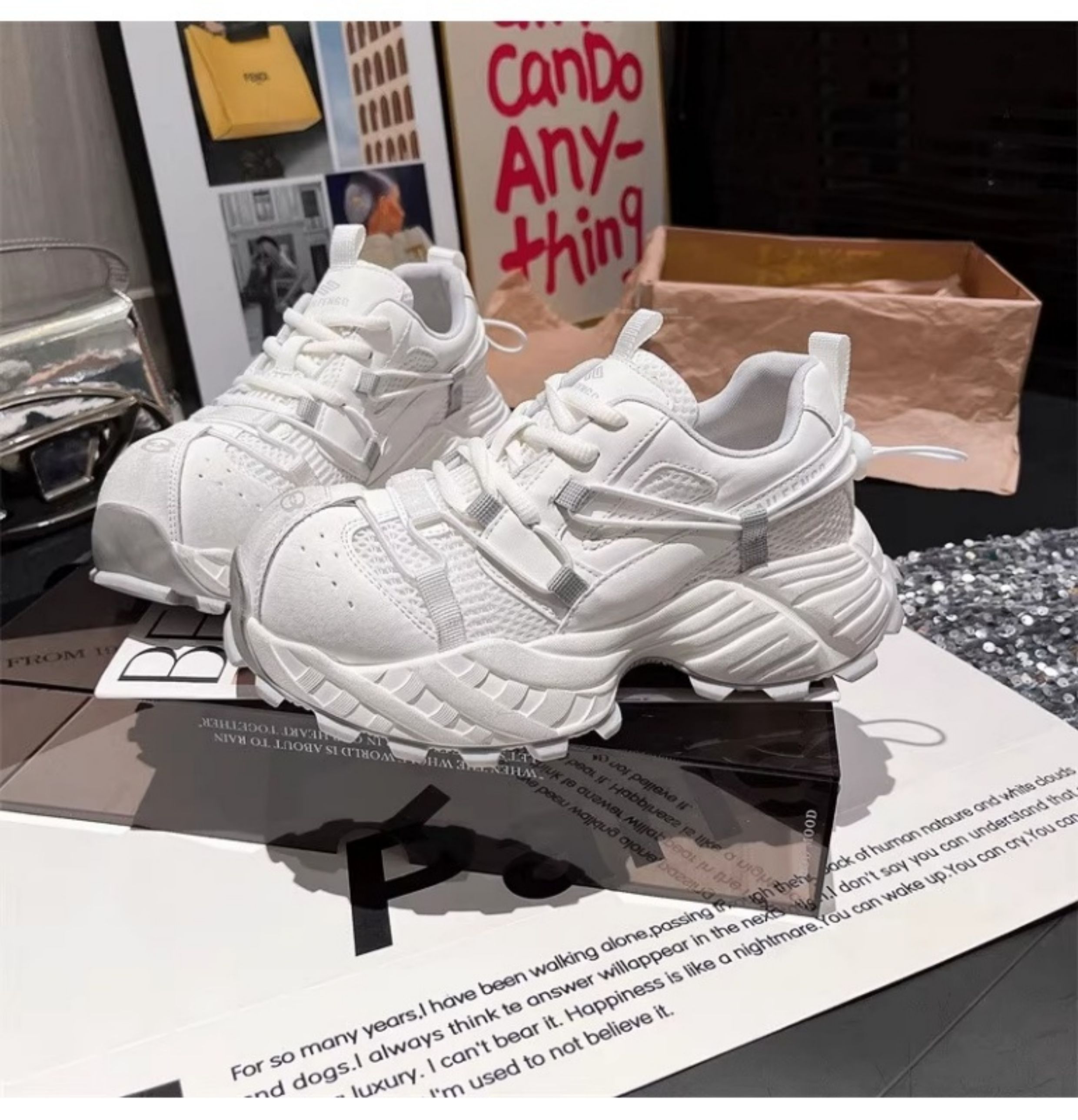 Hong Kong Casual Versatile Lace-Up Dad Shoes for Women 2025 Summer New Style Petite Thick-Soled Platform Vintage Sneakers