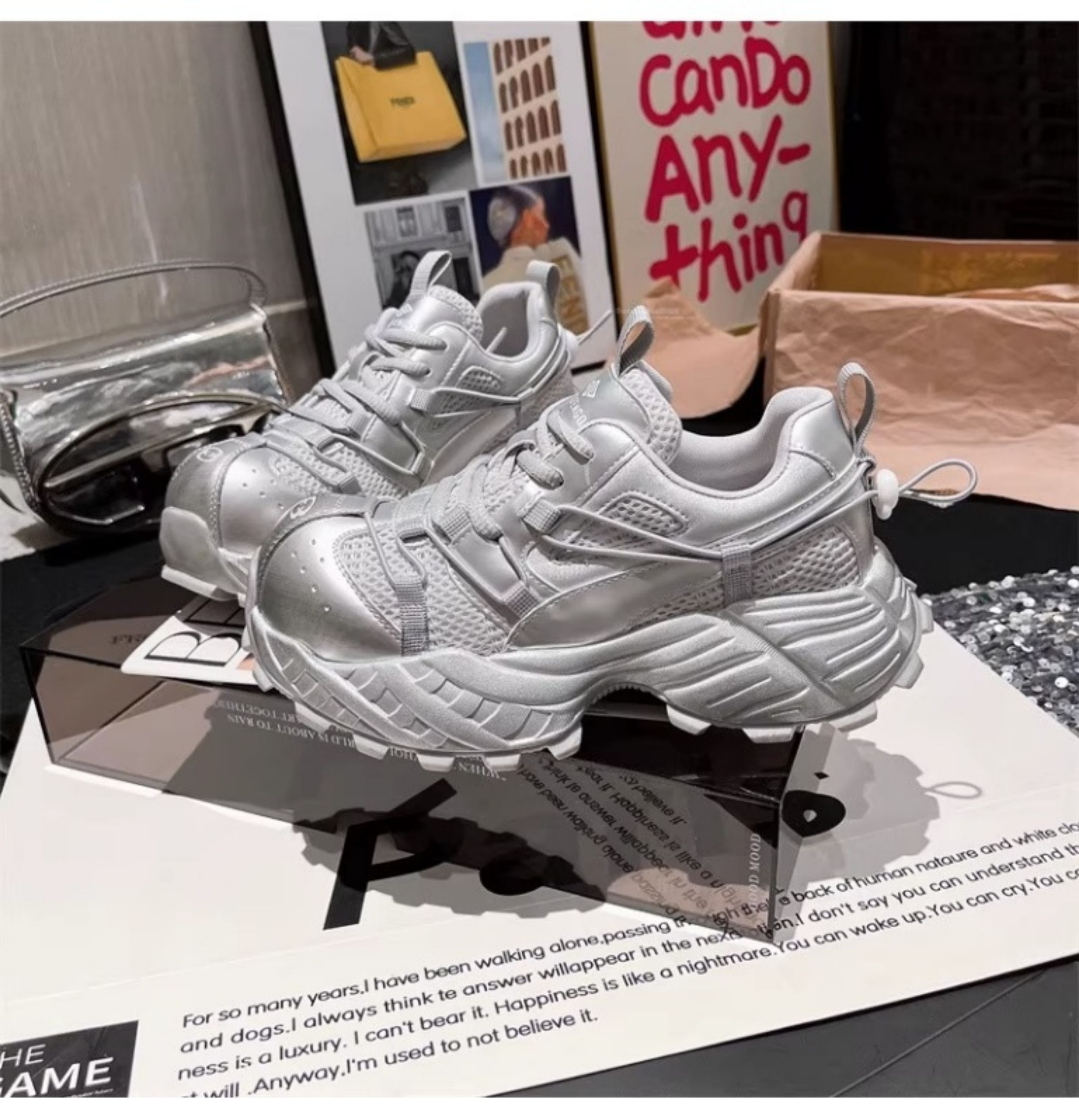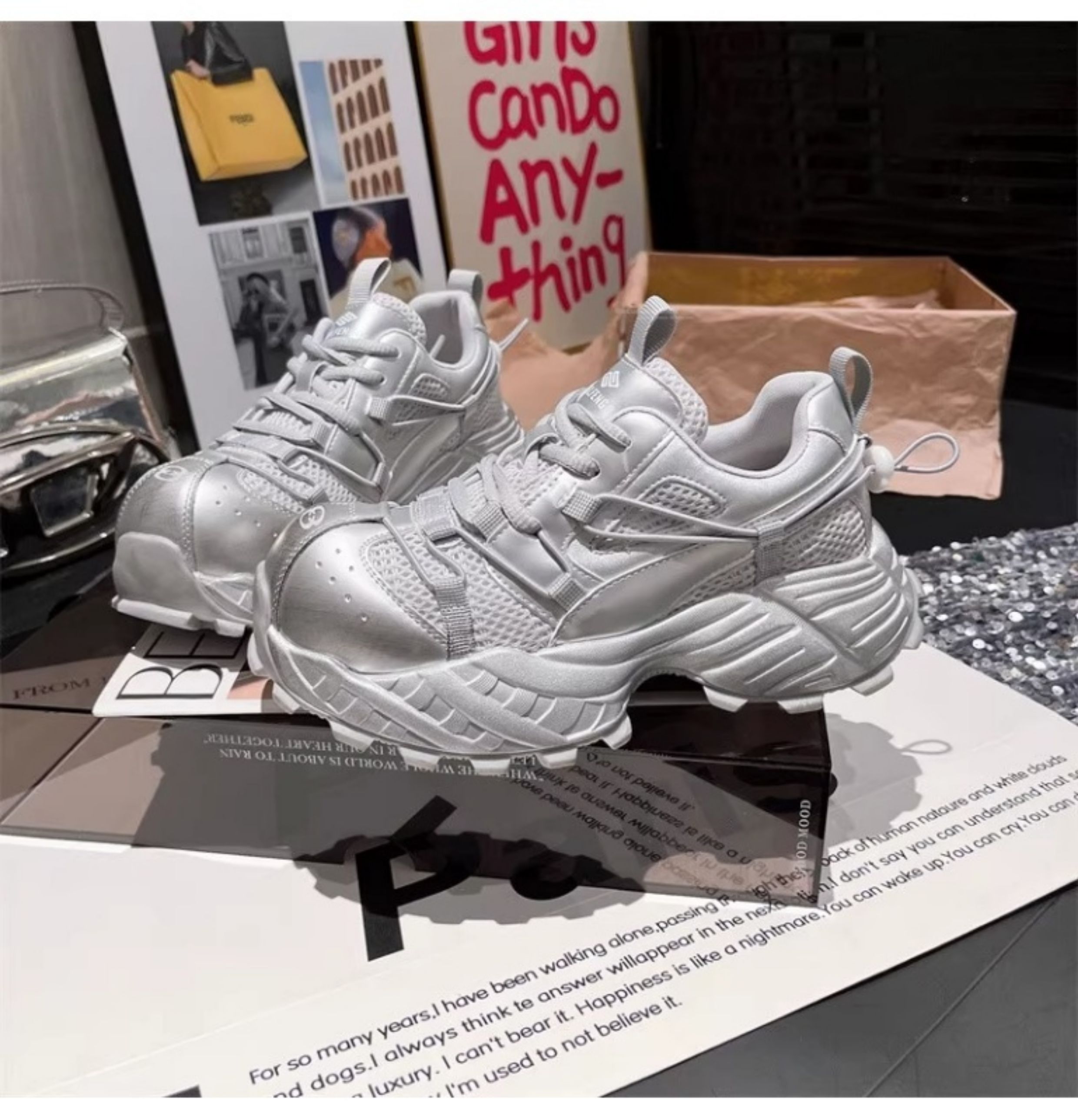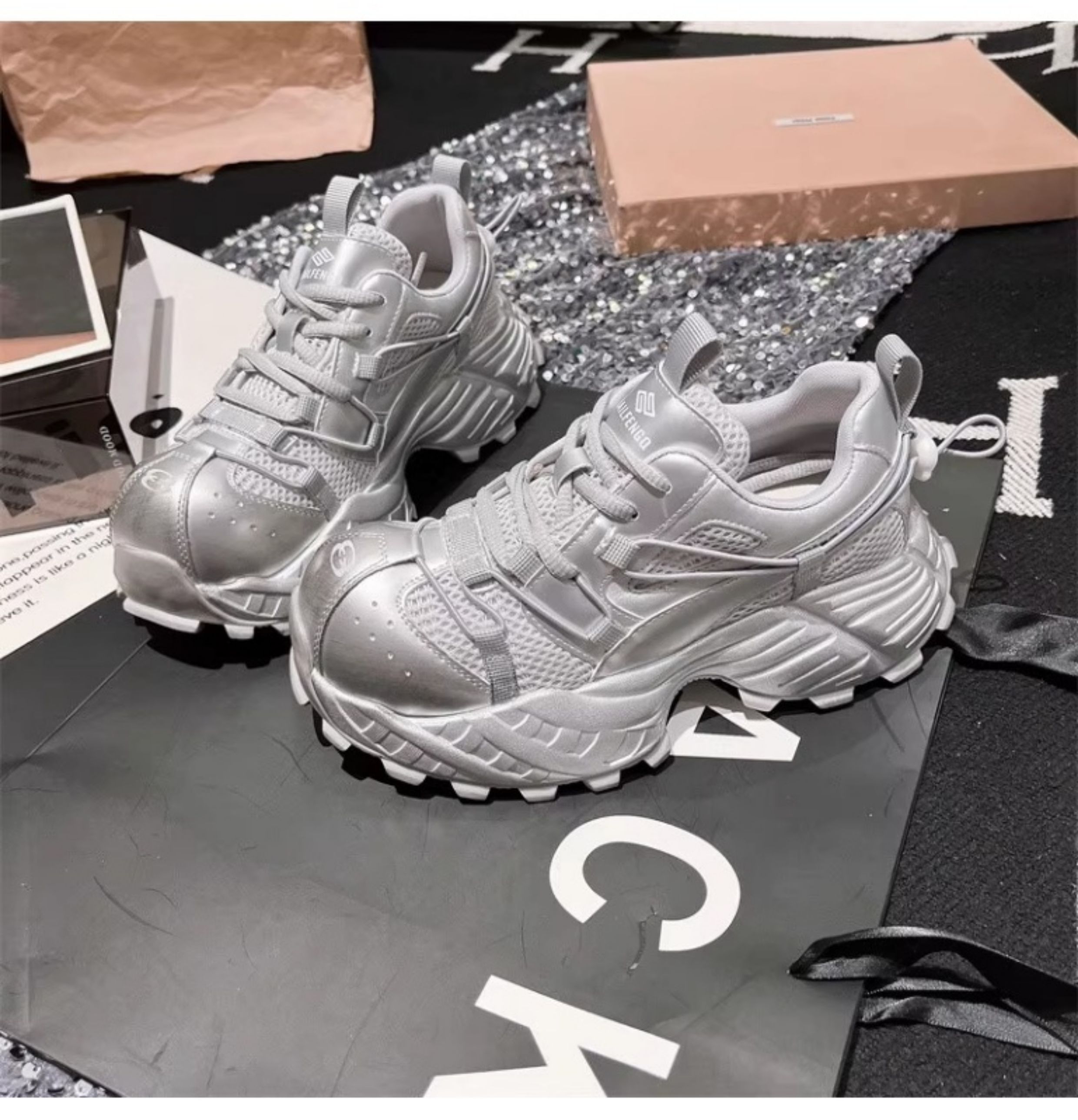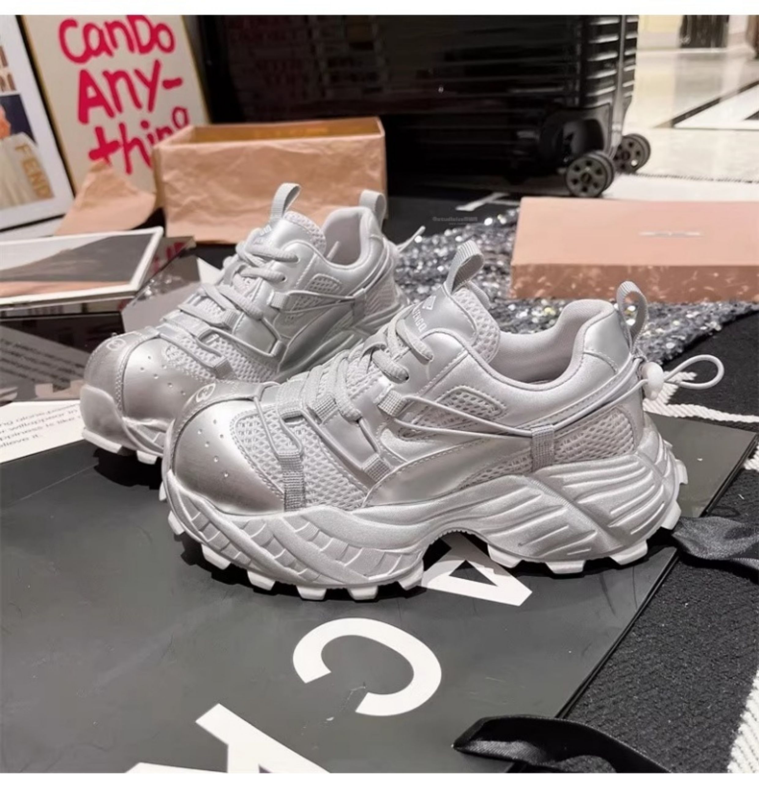 Hong Kong Casual Versatile Lace-Up Dad Shoes for Women 2025 Summer New Style Petite Thick-Soled Platform Vintage Sneakers