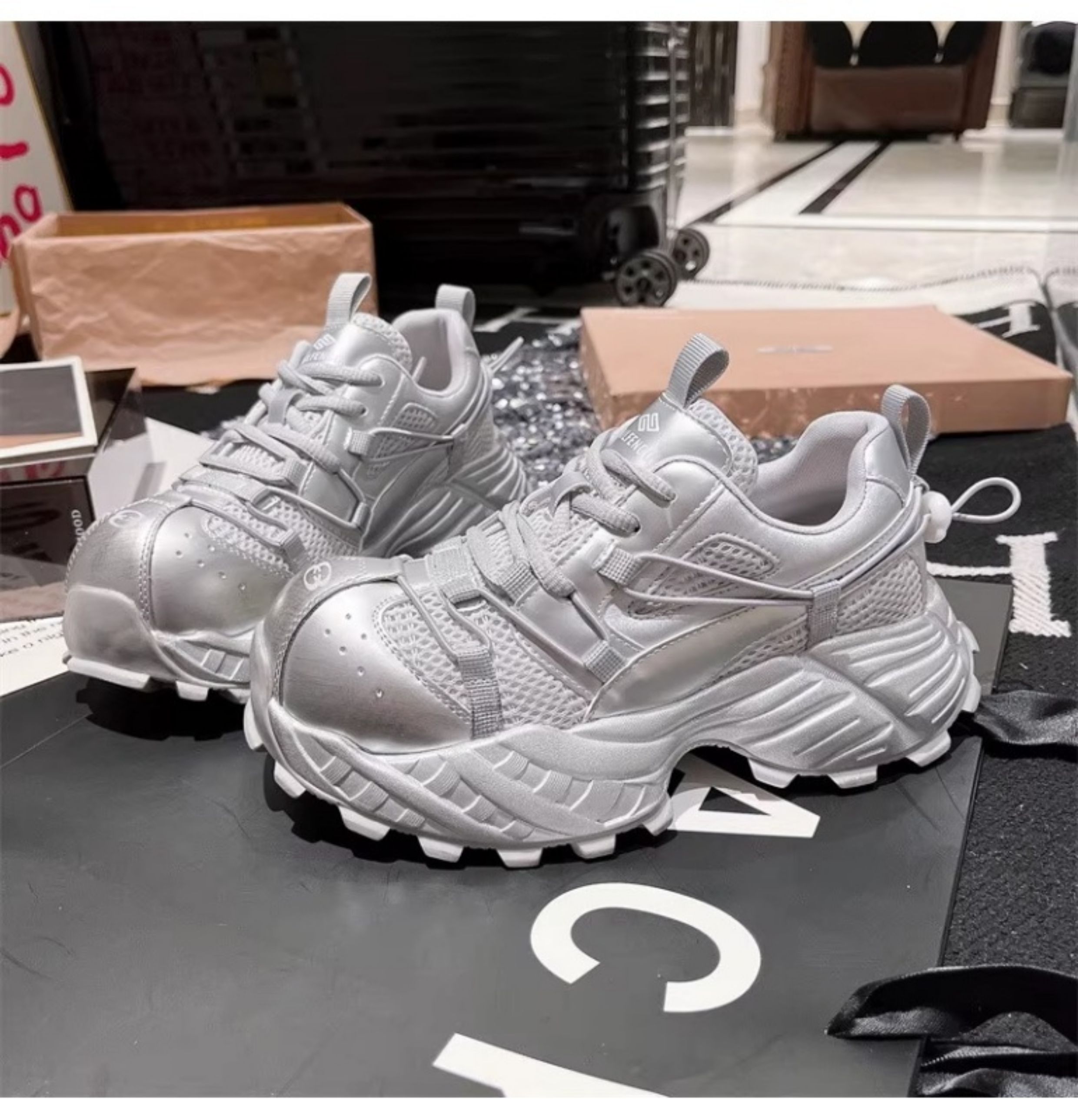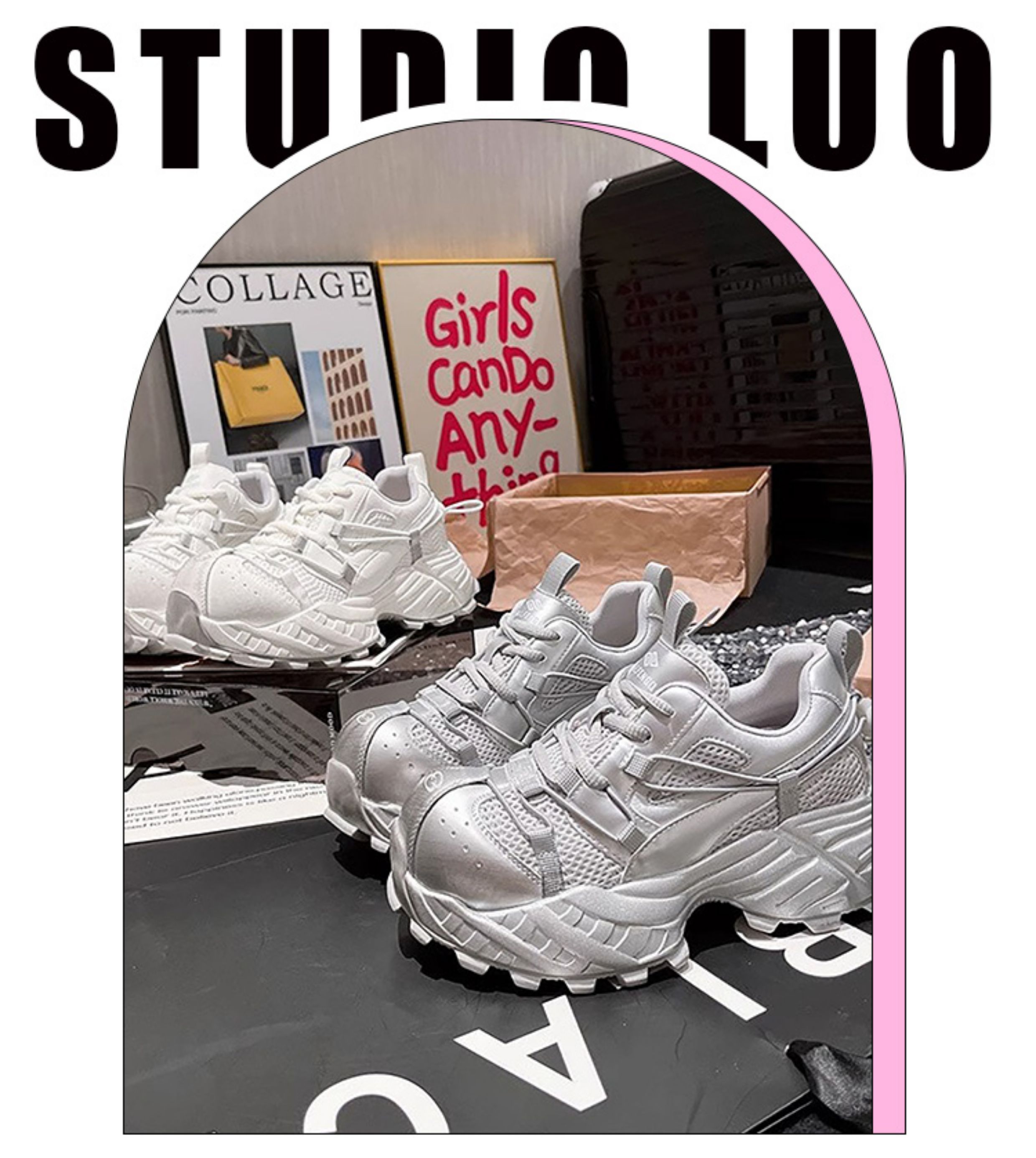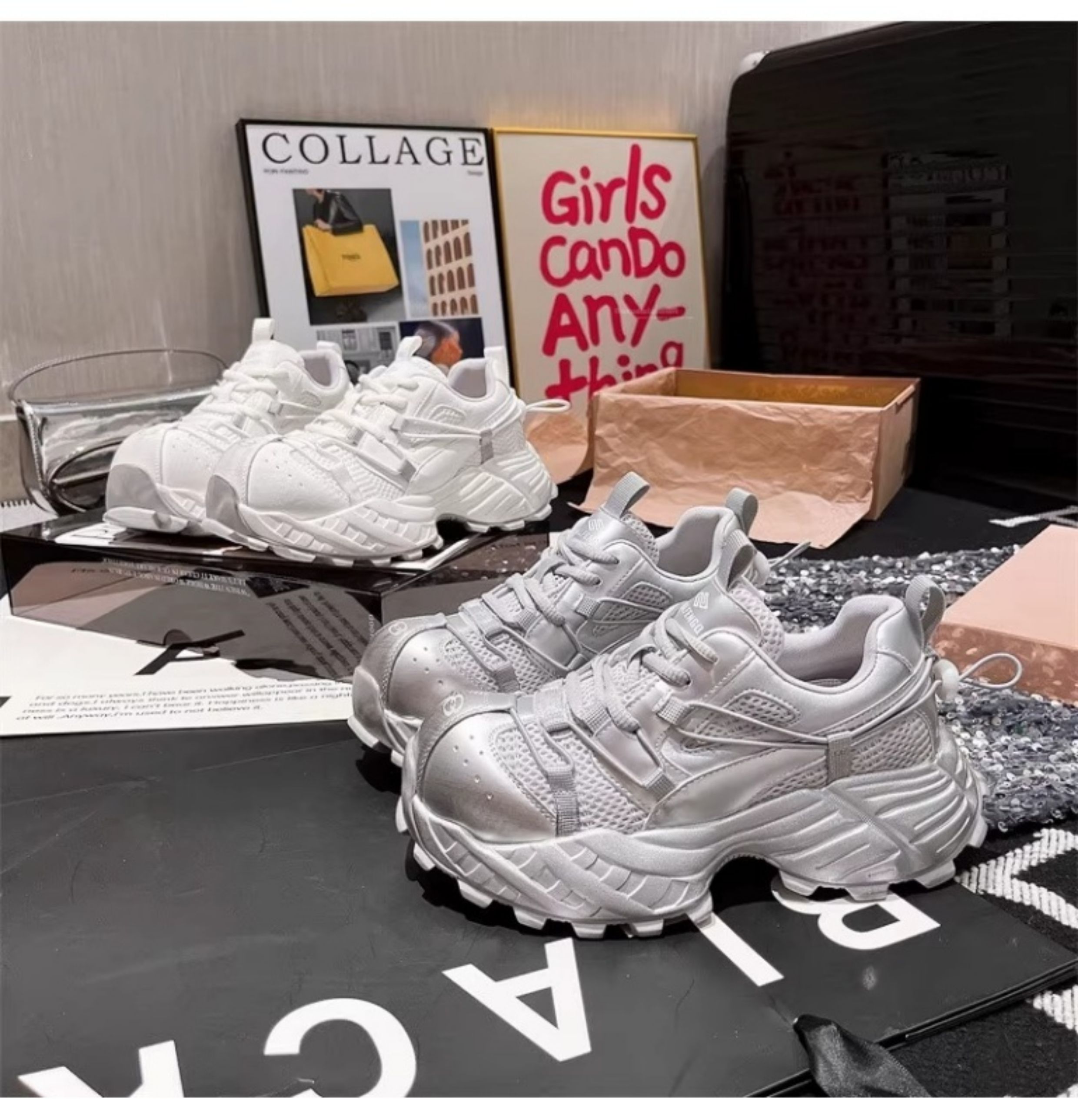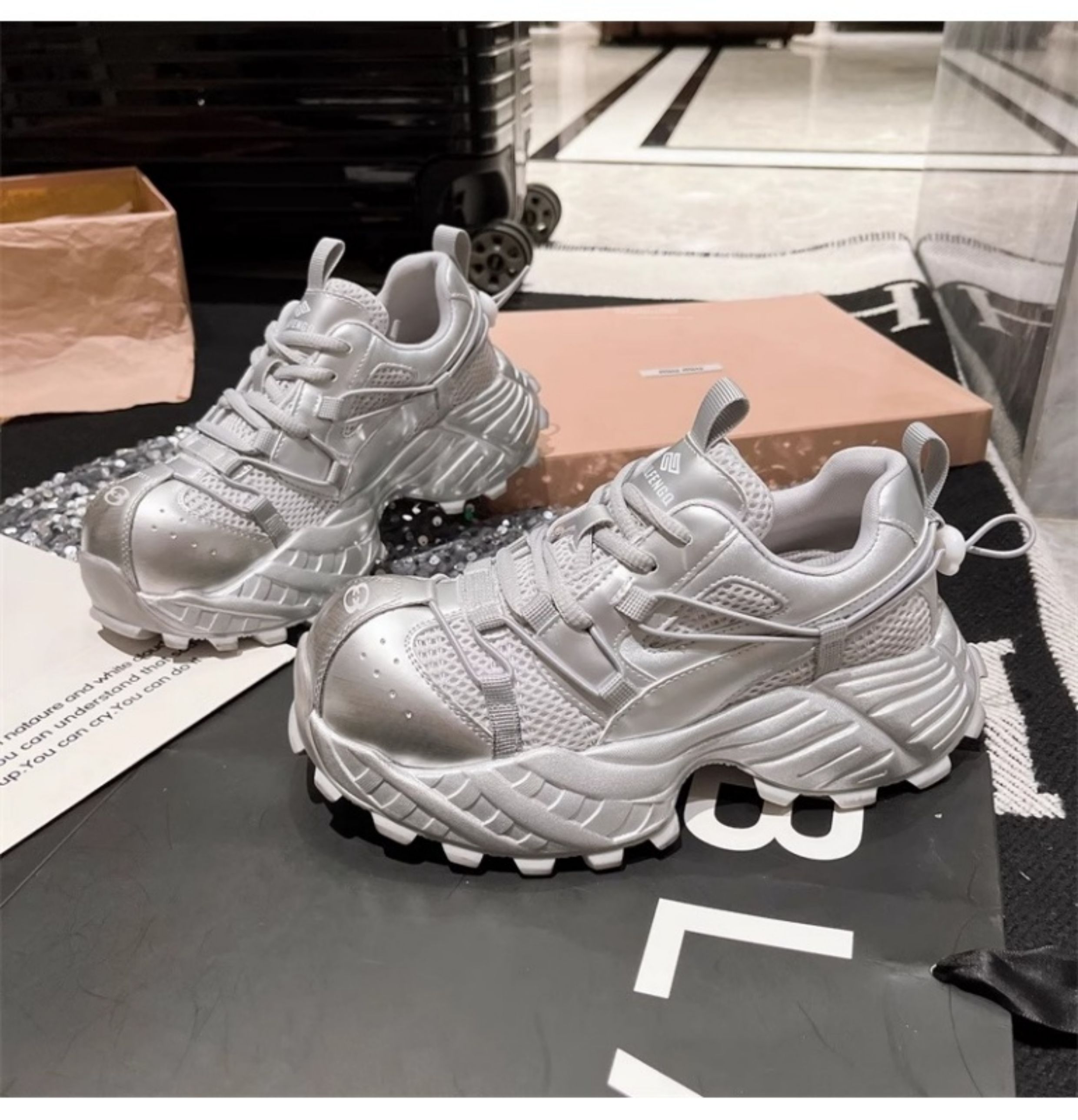 Hong Kong Casual Versatile Lace-Up Dad Shoes for Women 2025 Summer New Style Petite Thick-Soled Platform Vintage Sneakers