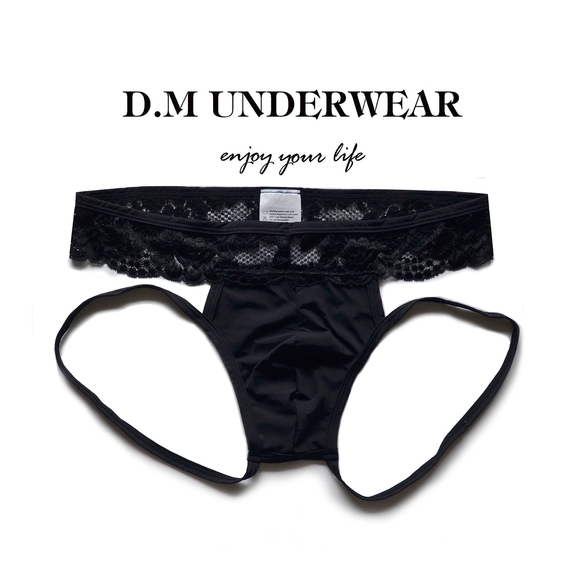 D.M Men's Underwear Lace Thong Sexy Low-Rise Mesh Breathable Erotic Temptation Double Thong Summer