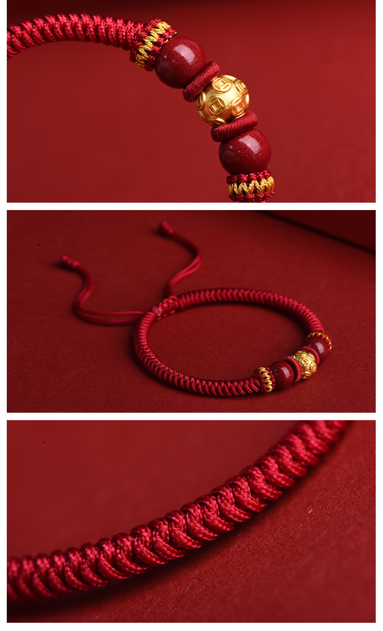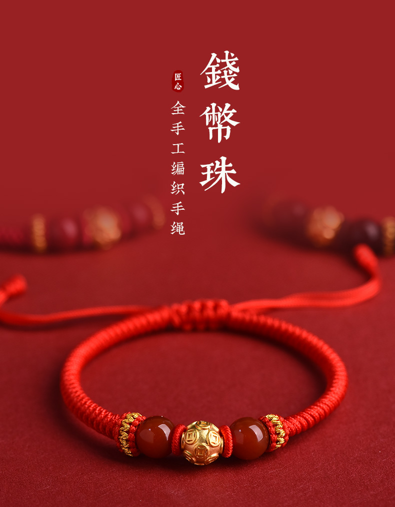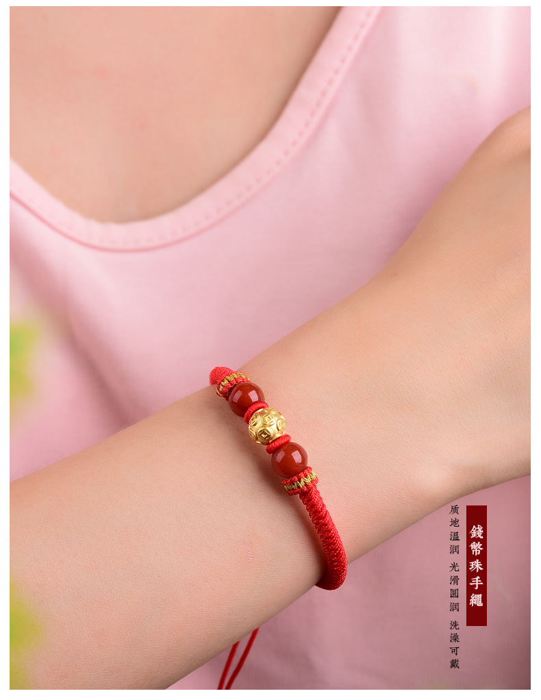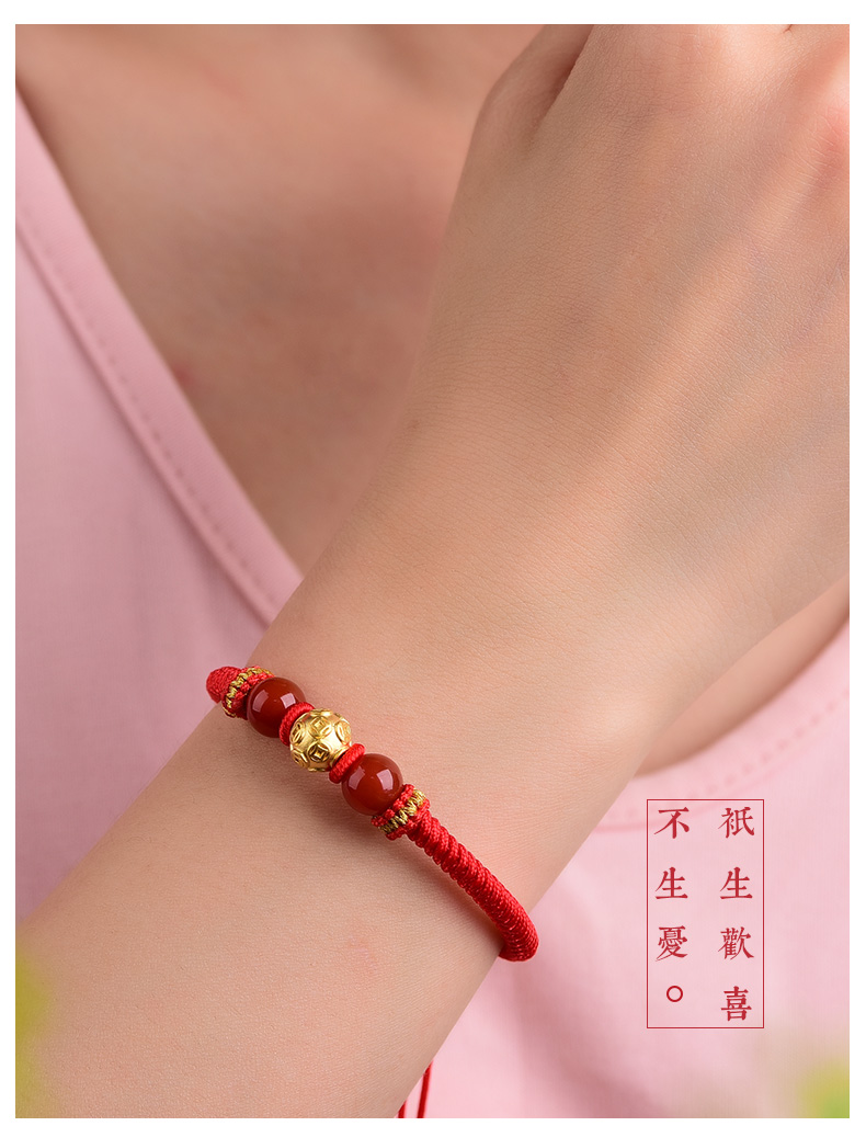 Putuo Mountain 999 Pure Gold Red Agate Red String Bracelet for Men and Women, Zodiac Year of the Horse, Fortune Bead, Safe Weaving