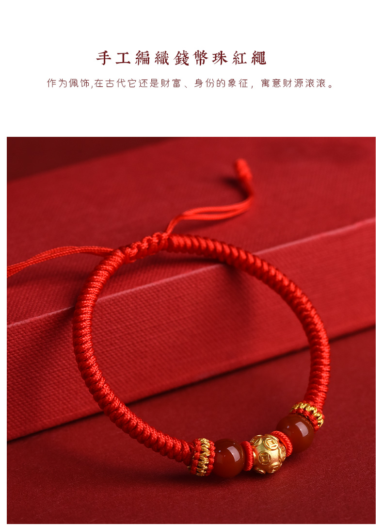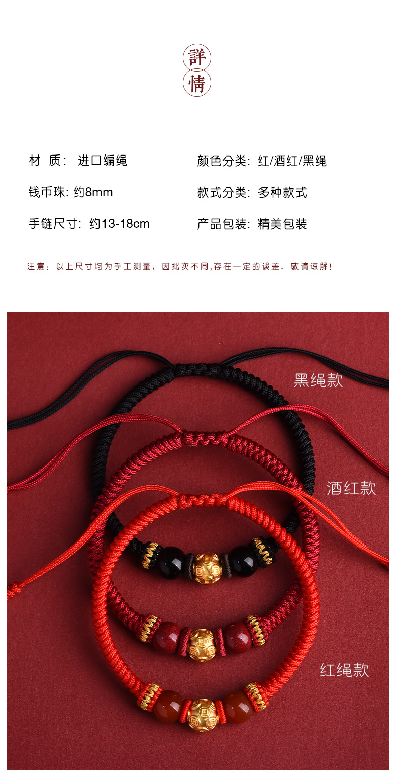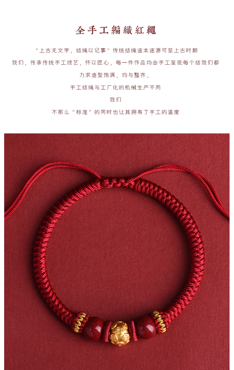 Putuo Mountain 999 Pure Gold Red Agate Red String Bracelet for Men and Women, Zodiac Year of the Horse, Fortune Bead, Safe Weaving