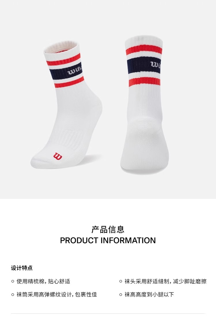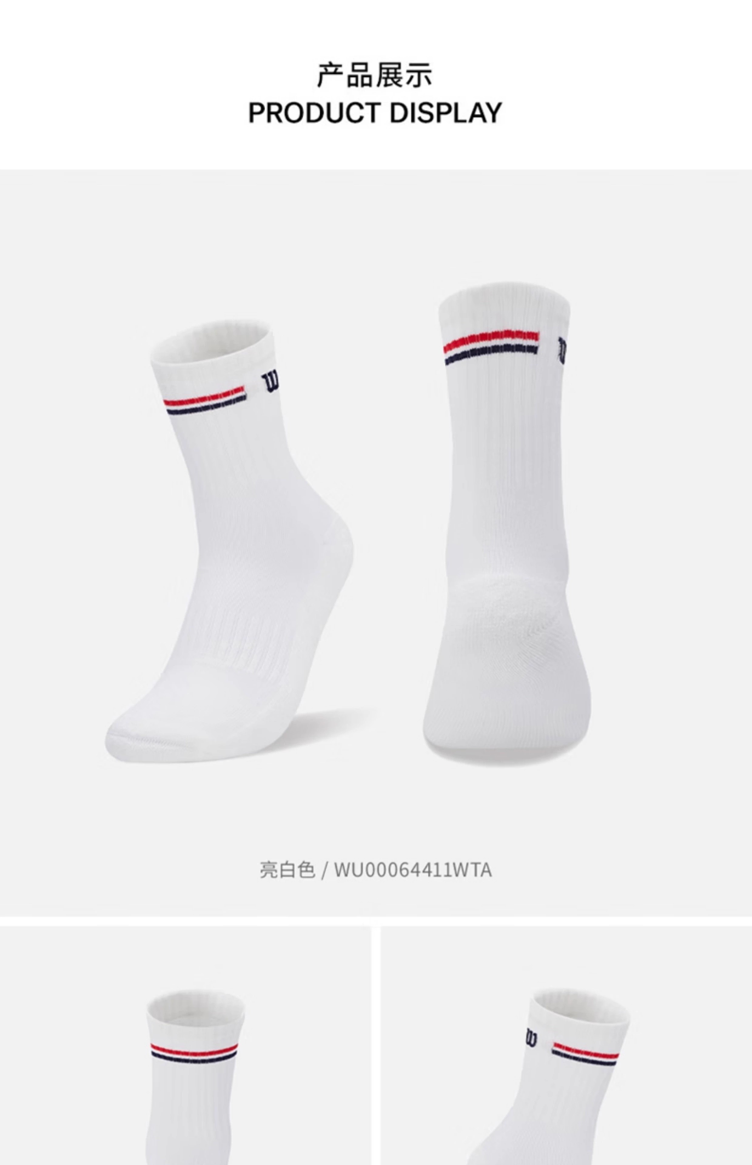 Wilson Professional Tennis Socks Breathable Sweat-Absorbent Low-Waist Socks Long Knee-High Socks Men's and Women's Badminton Socks