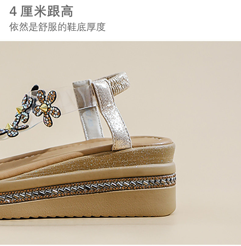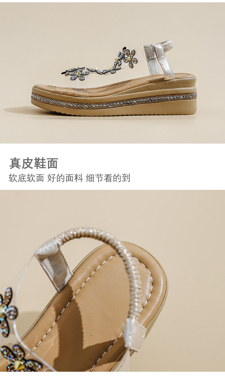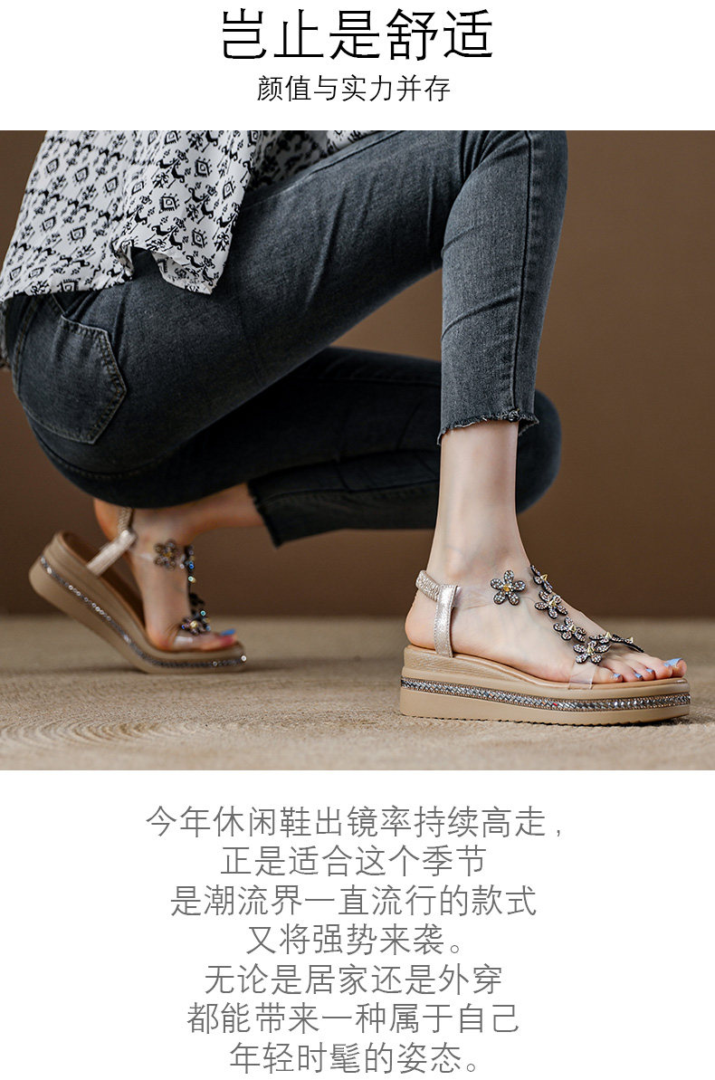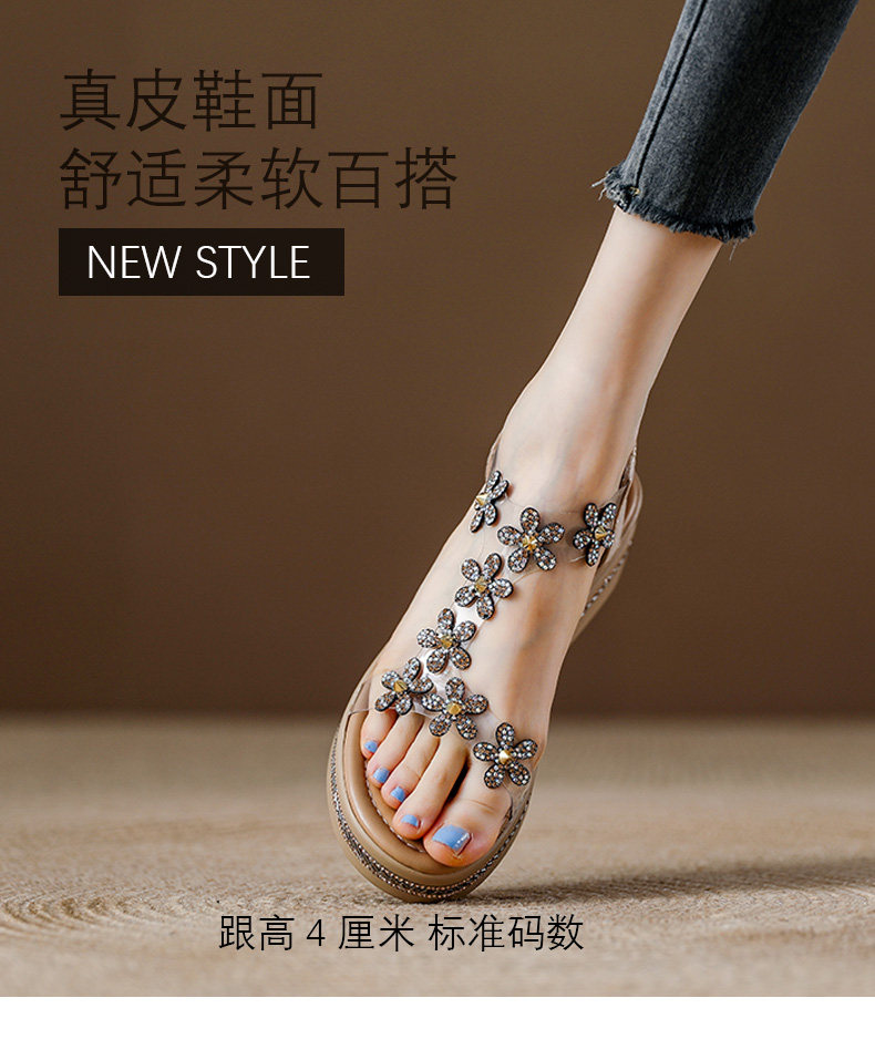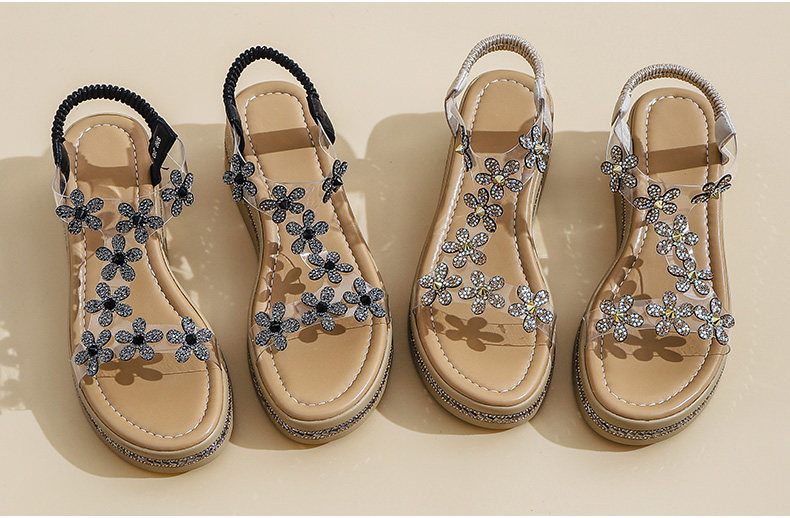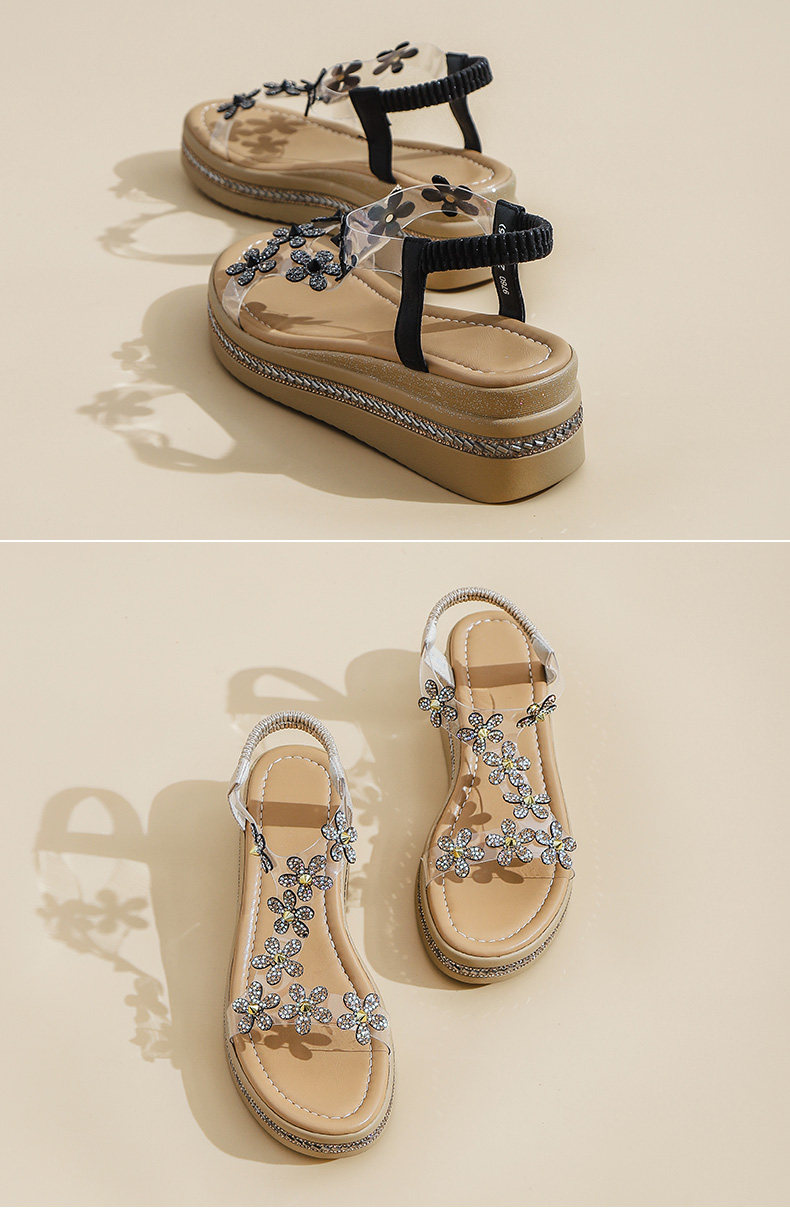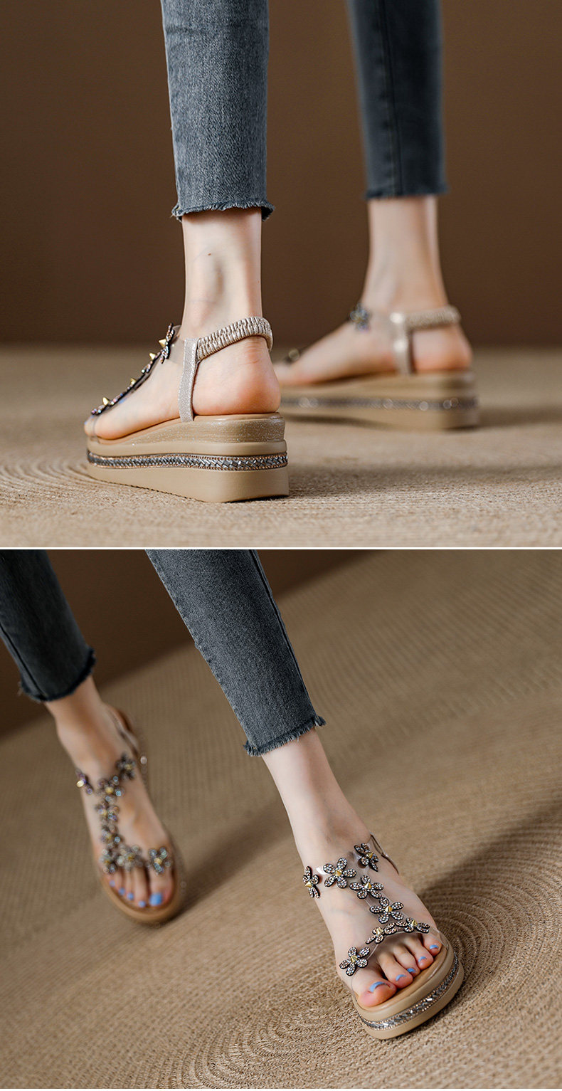 Spanish Niche Brandongysl Rhinestone Flats Sandals Summer Versatile Thick-Soled Women's Beach Sandals