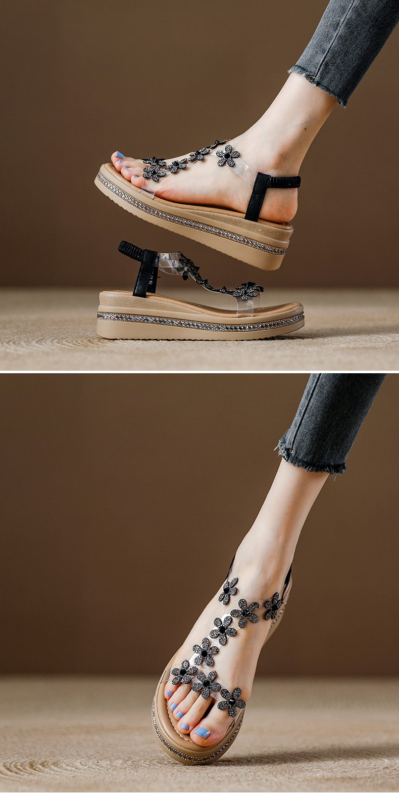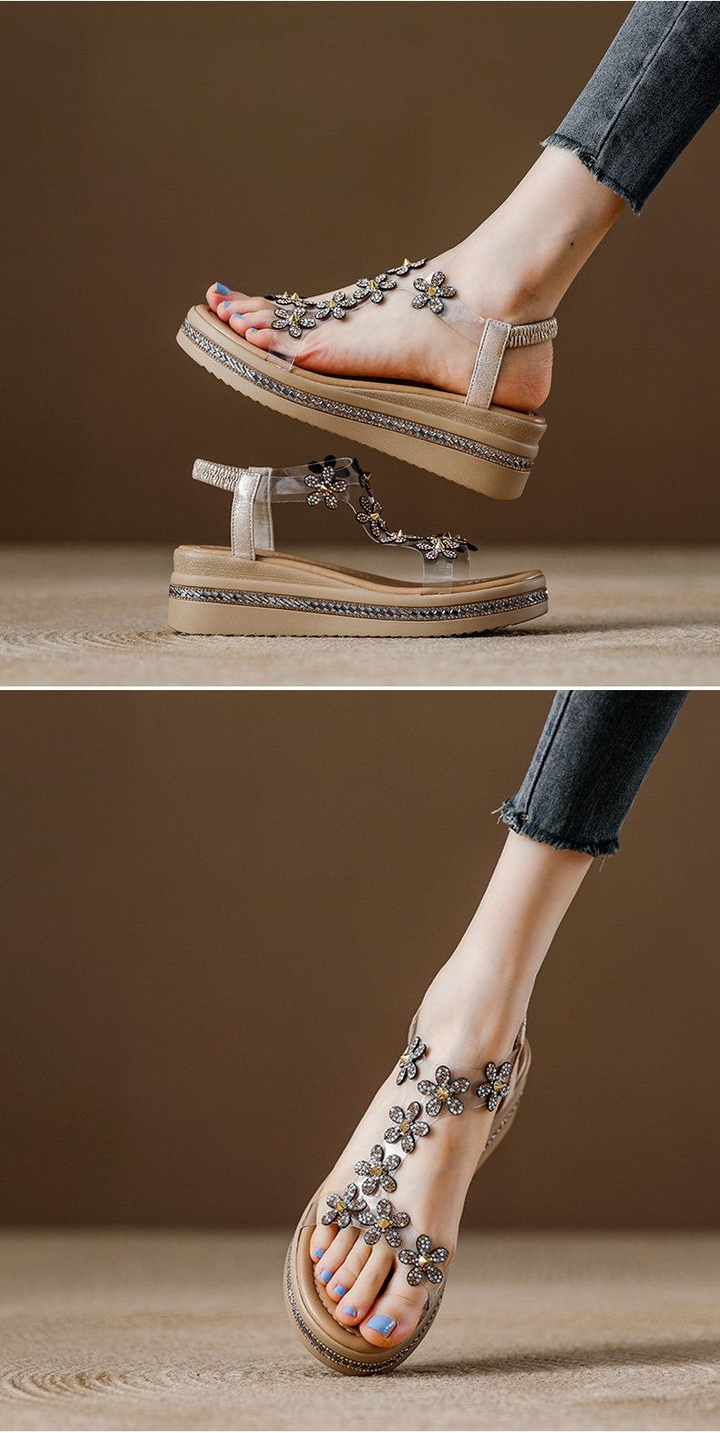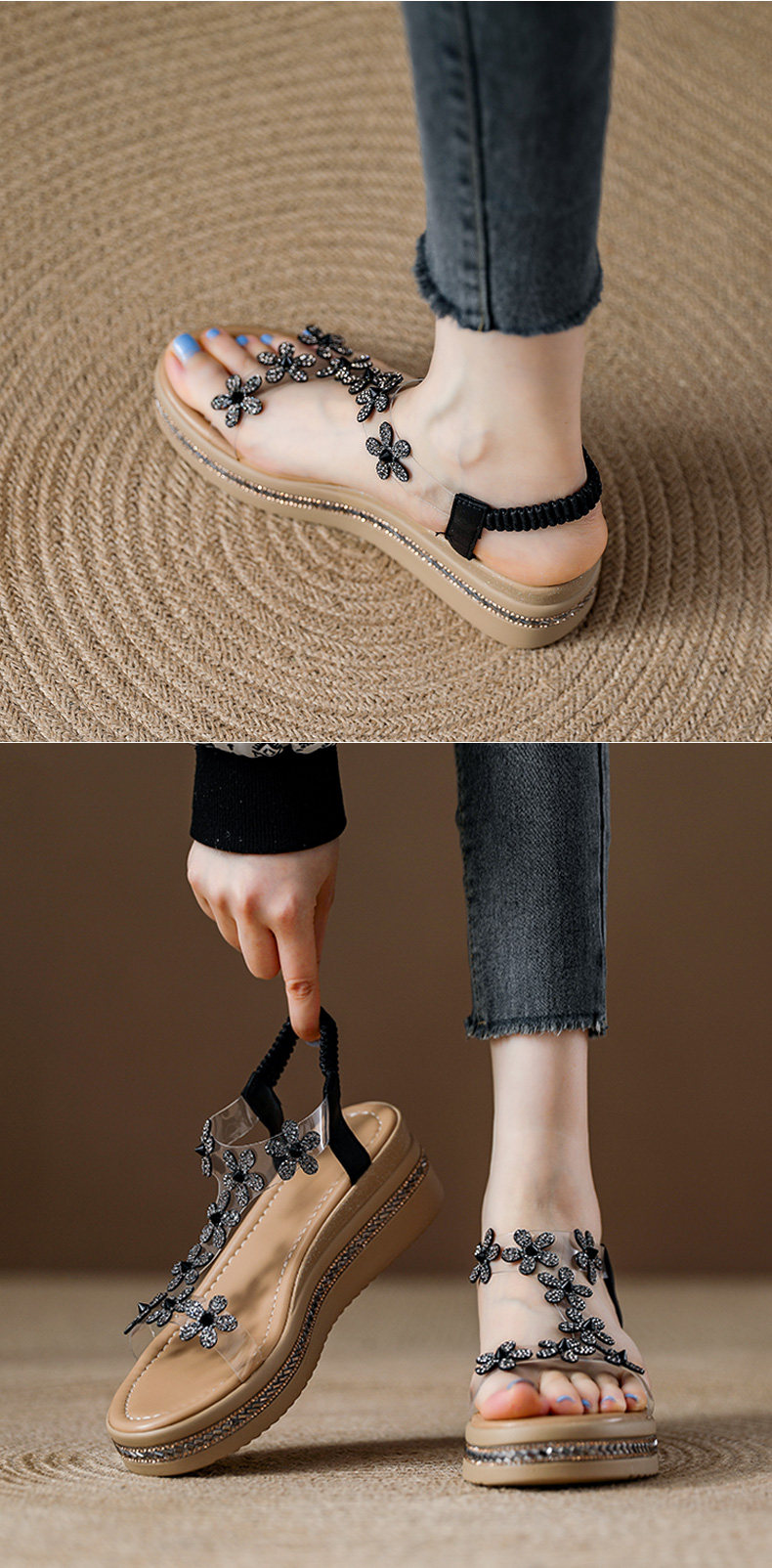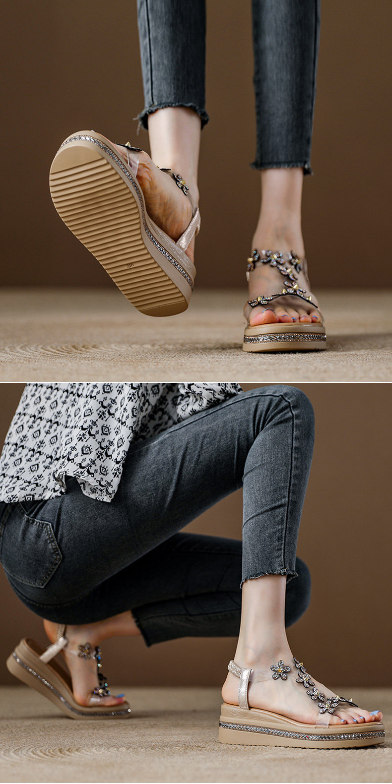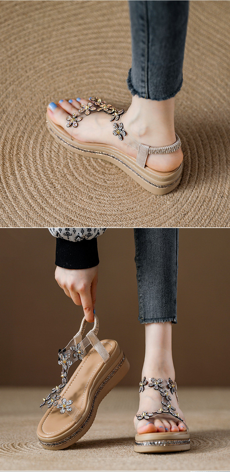 Spanish Niche Brandongysl Rhinestone Flats Sandals Summer Versatile Thick-Soled Women's Beach Sandals