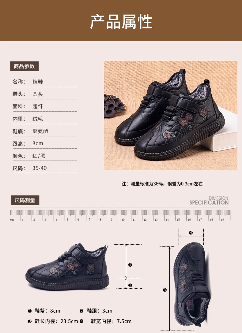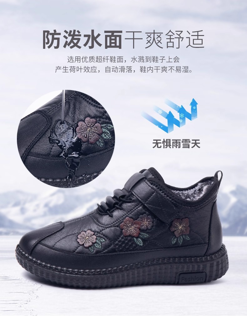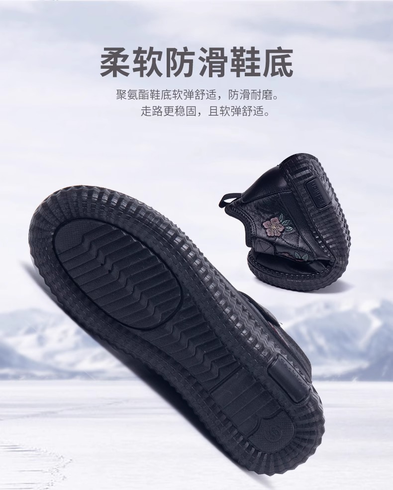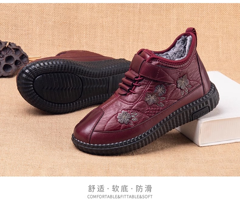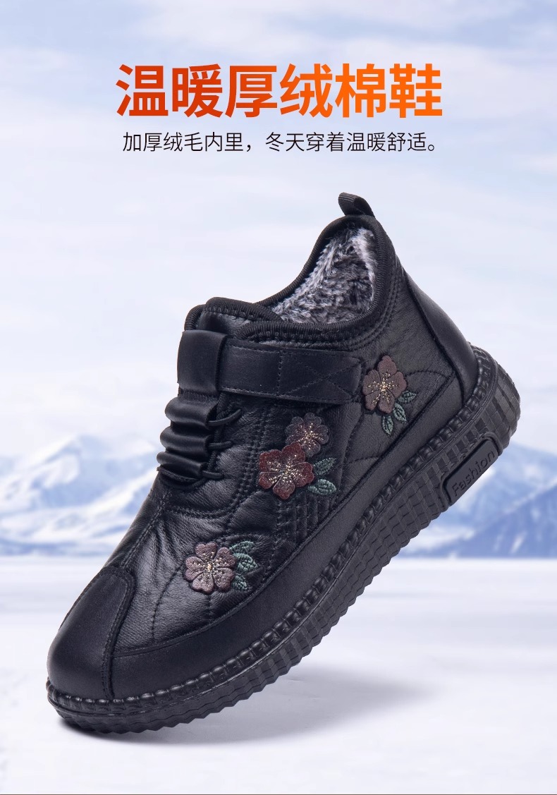 Winter Velvet Granny Shoes, Old Beijing Cloth Shoes, Cotton Shoes for the Elderly, Warm Mother's Shoes, Soft Soles, Non-Slip Women's Shoes