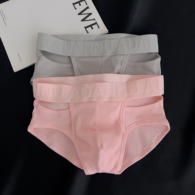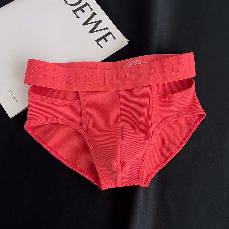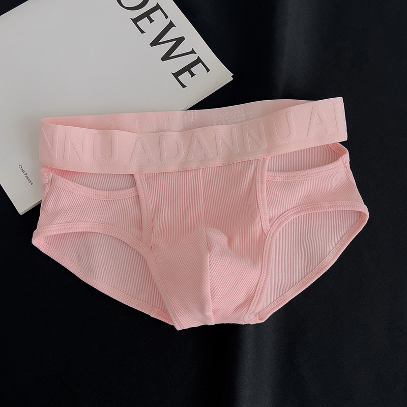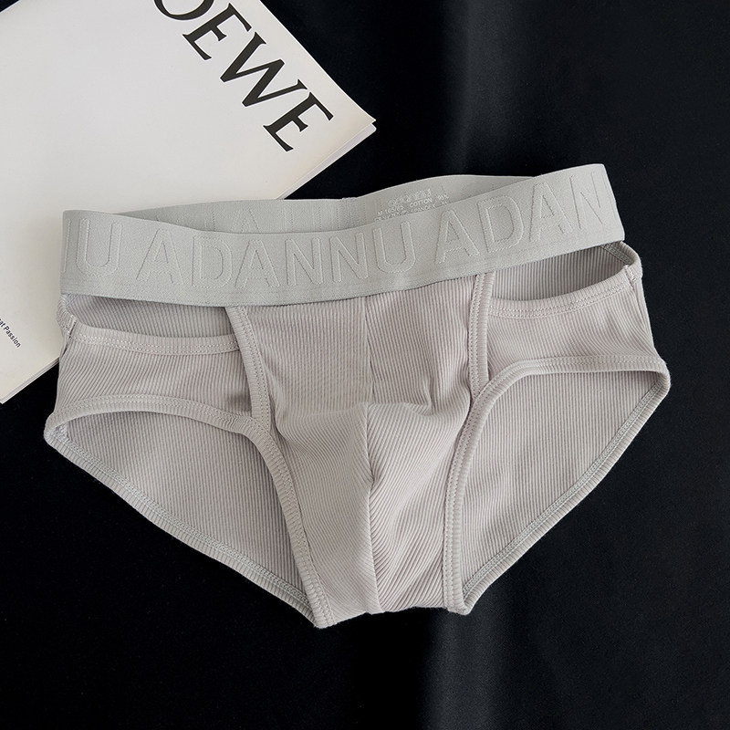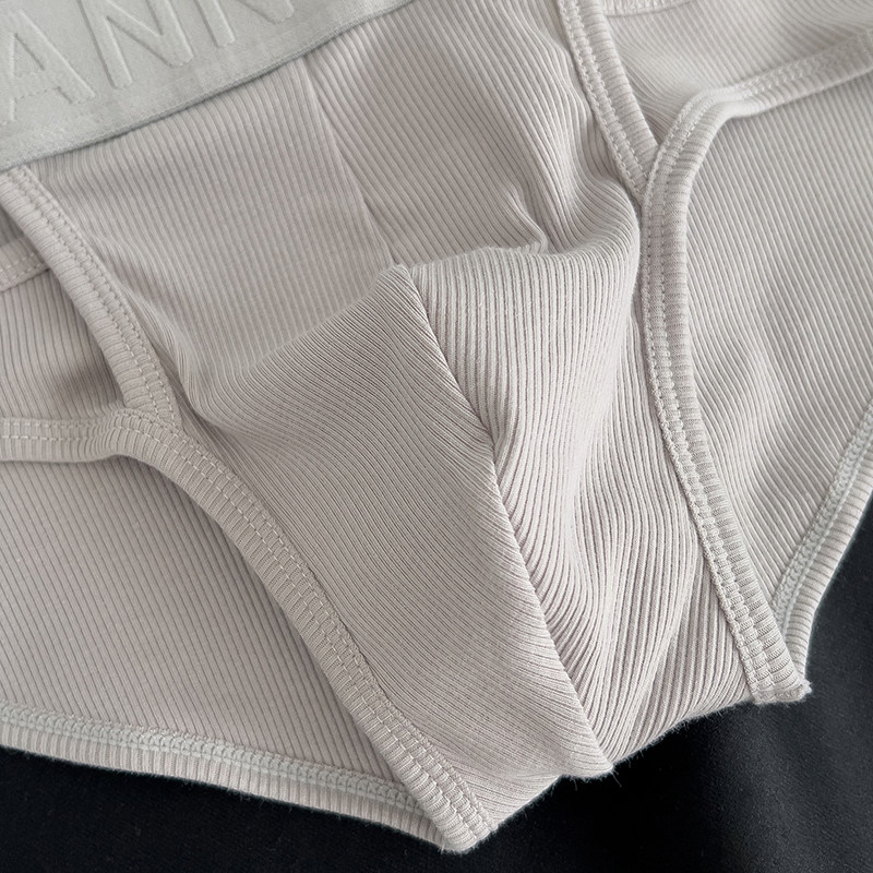 Men's Ribbed Cotton Briefs with Unique Hollow-Out Design, Sexy Embossed Pattern, Sports U-Pouch, Breathable Triangle Shorts