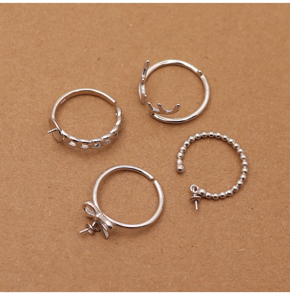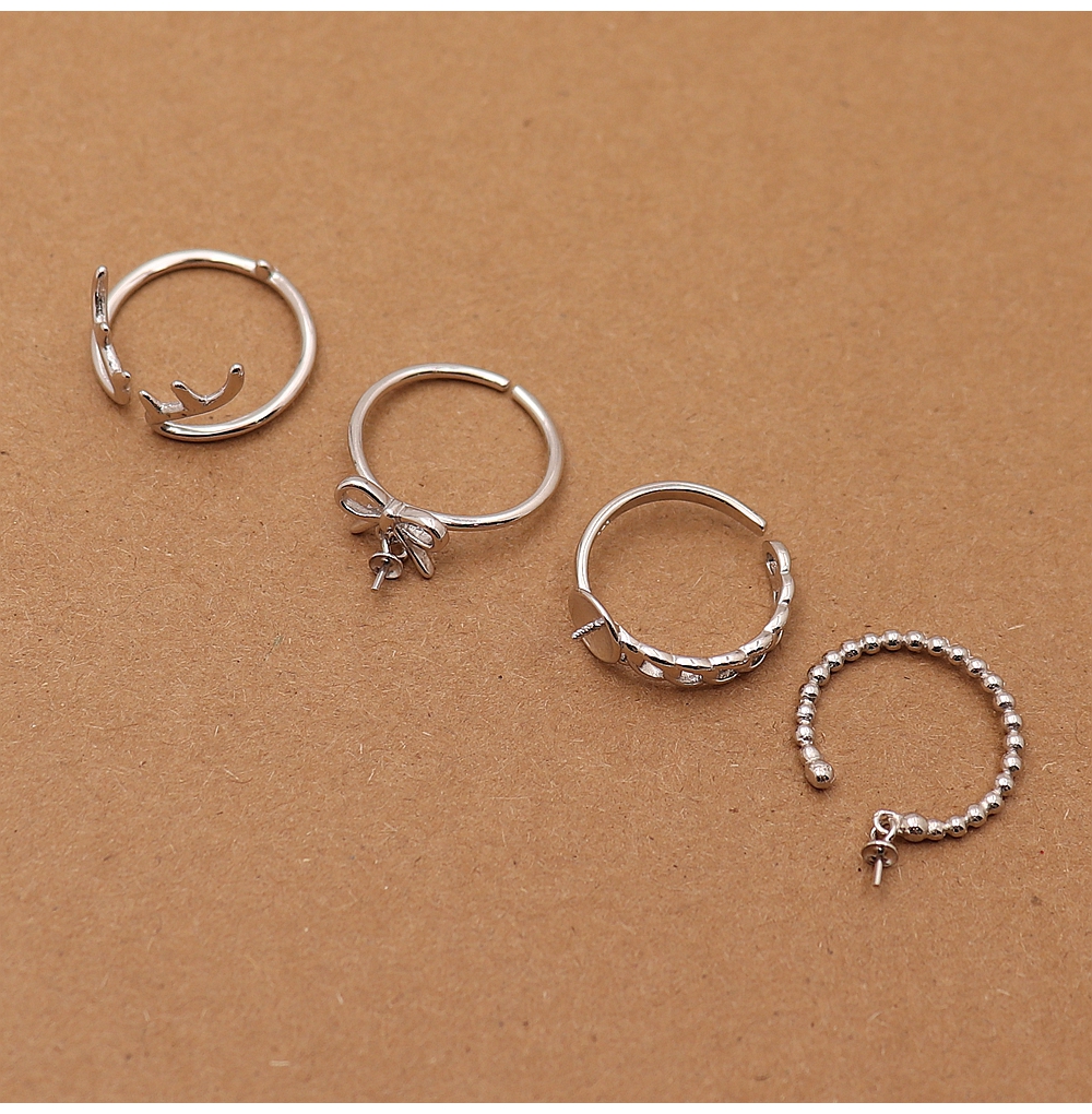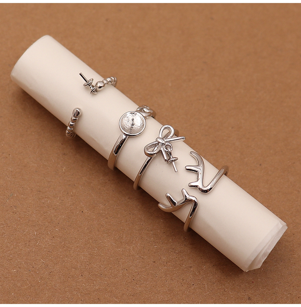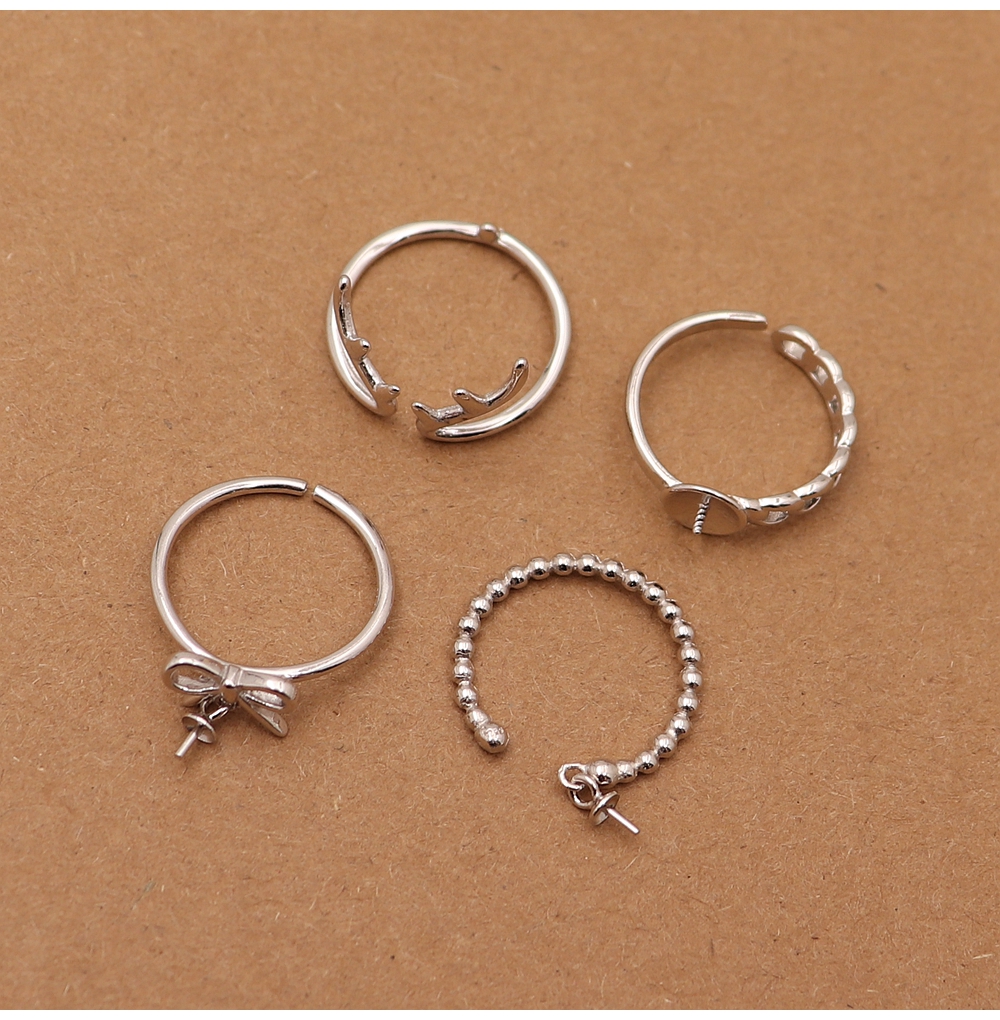 S925 Sterling Silver Niche Adjustable Open Ring for Women, Deer Index Finger Ring, Bowknot Ring, Round Bead Ring