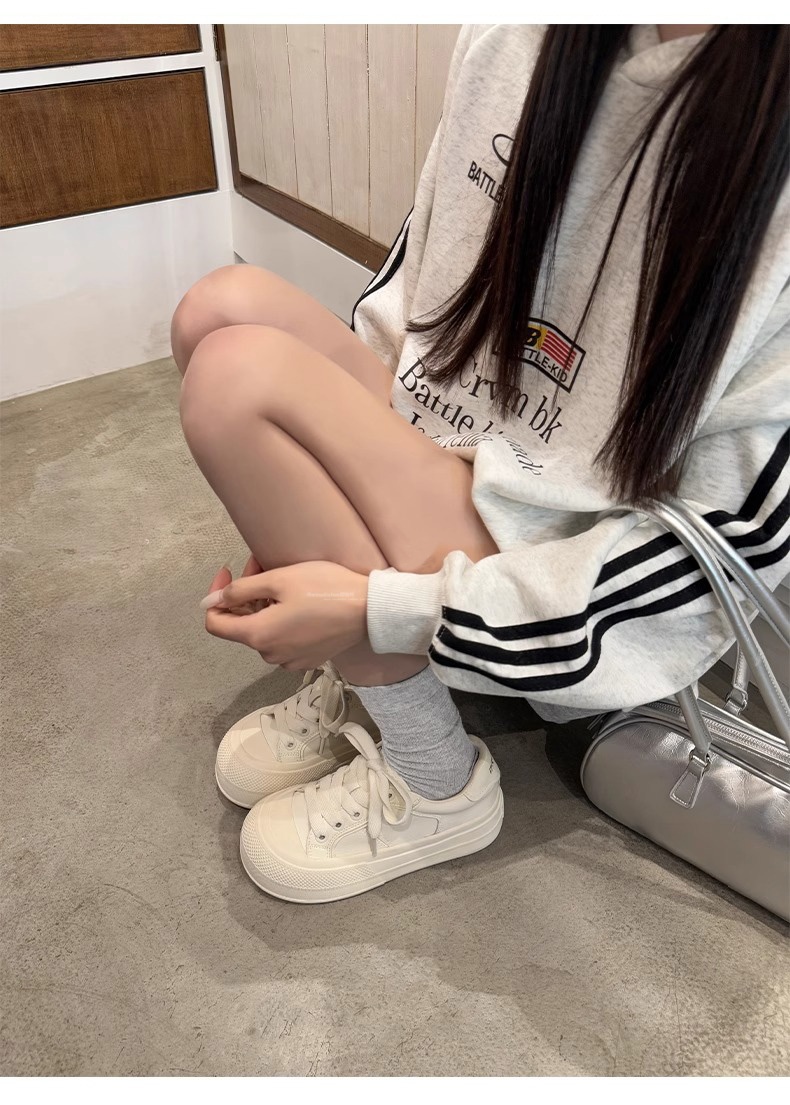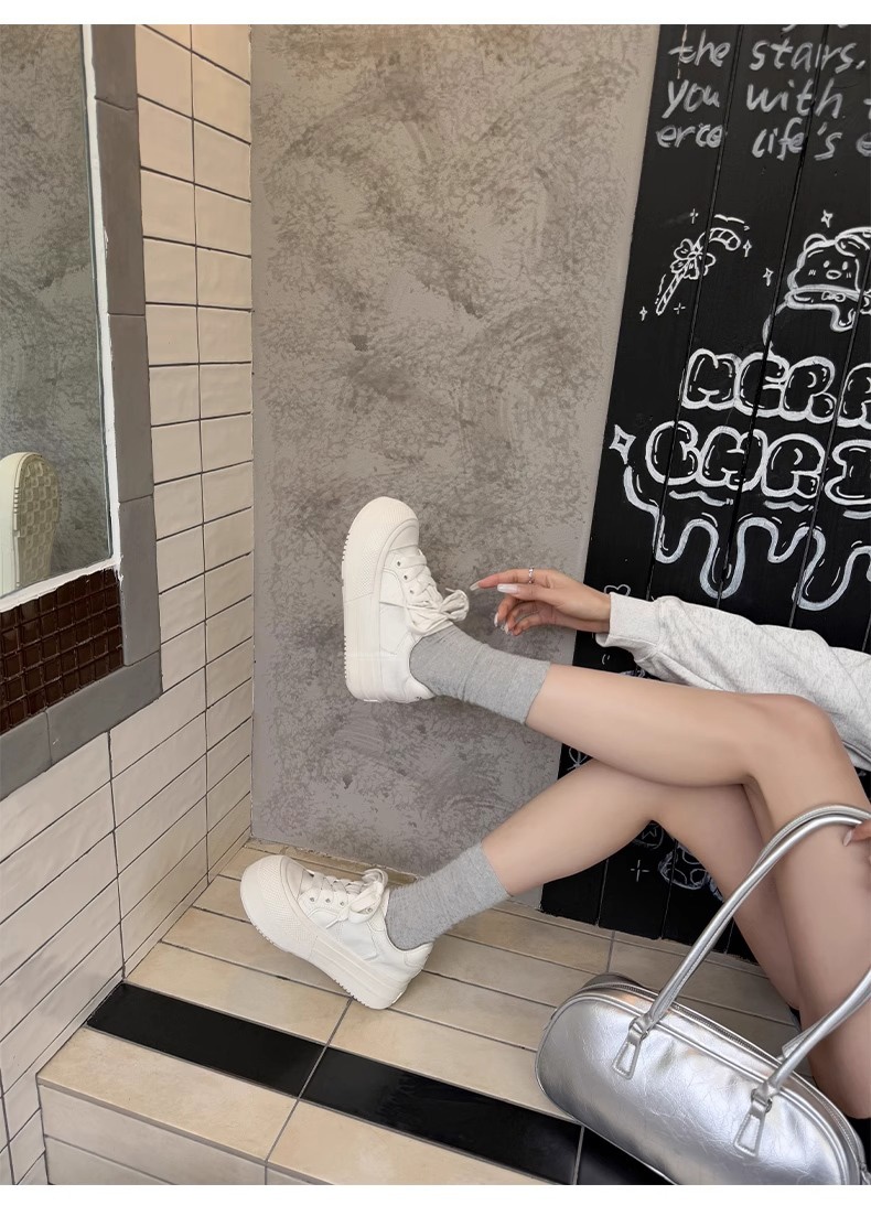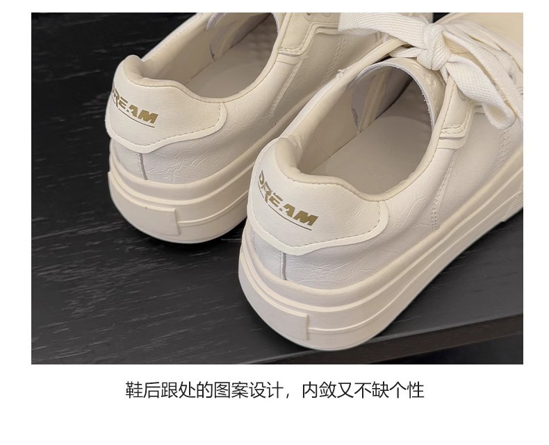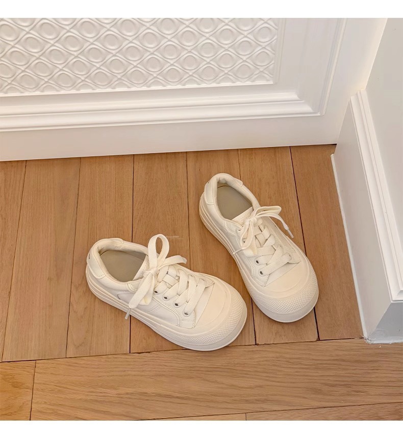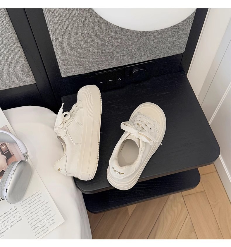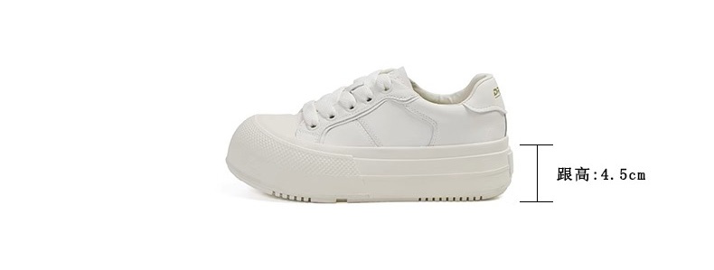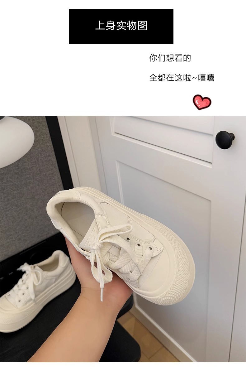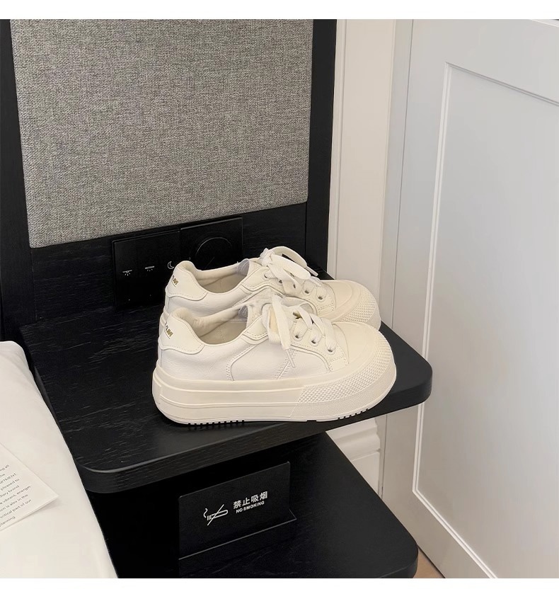 Hong Kong Simple Genuine Leather Thick-Soled White Sneakers for Women 2025 Summer New Round-Toe Lace-Up Sneakers Versatile Sports Casual Shoes
