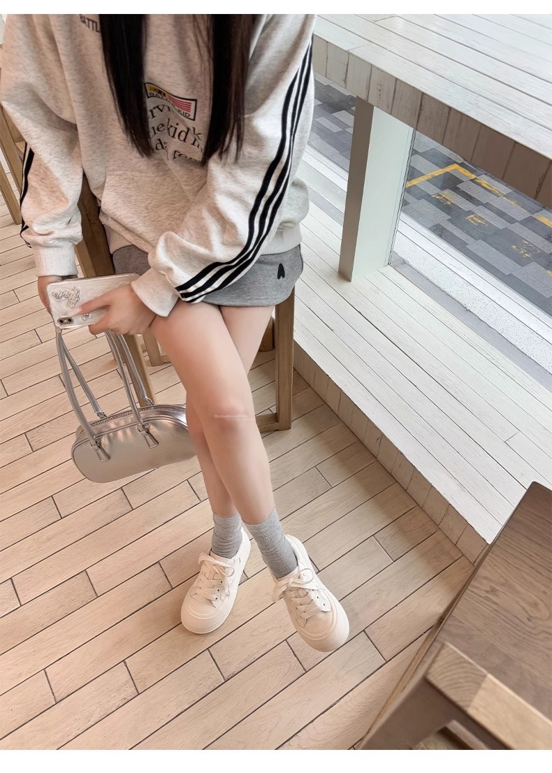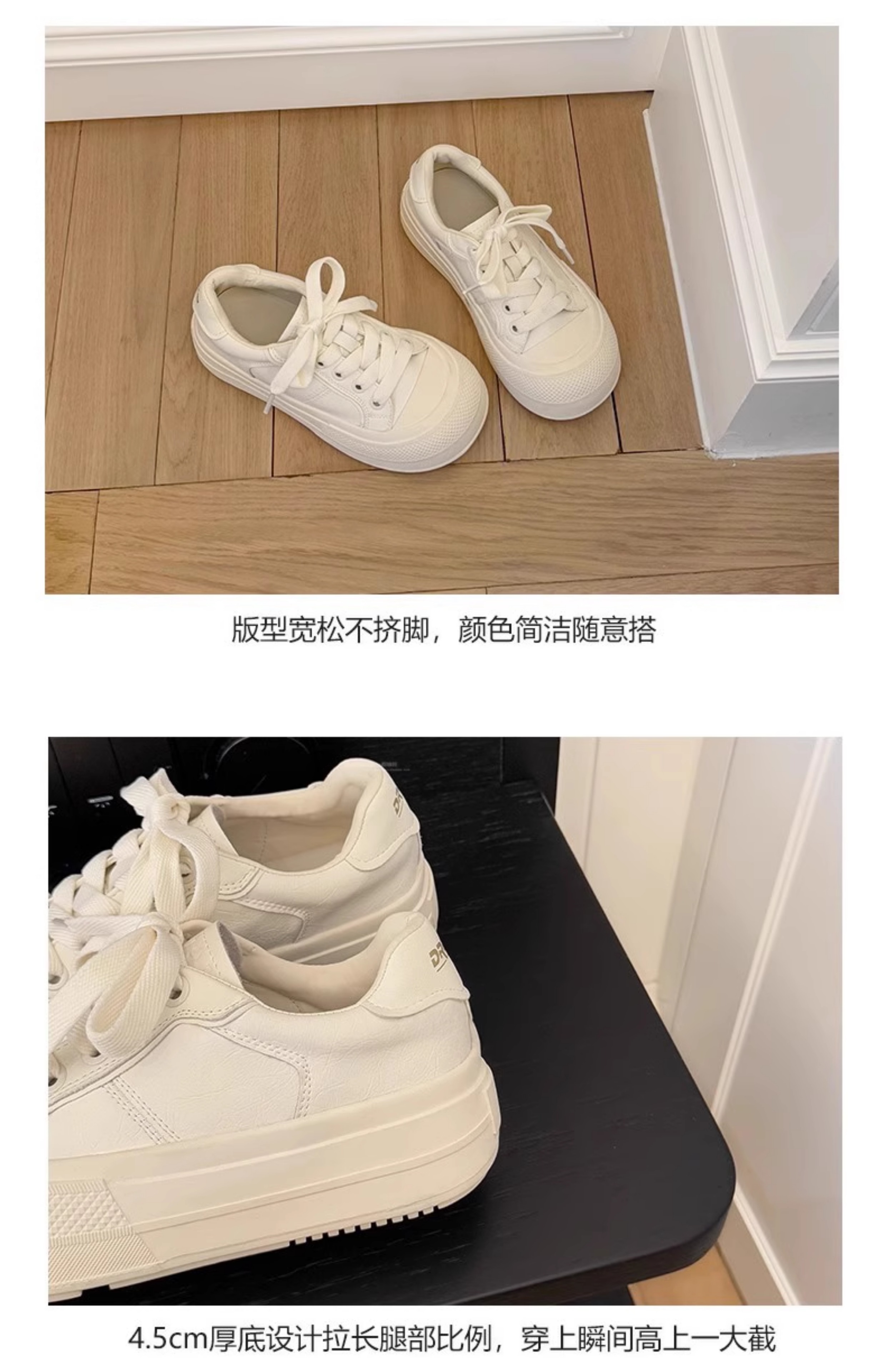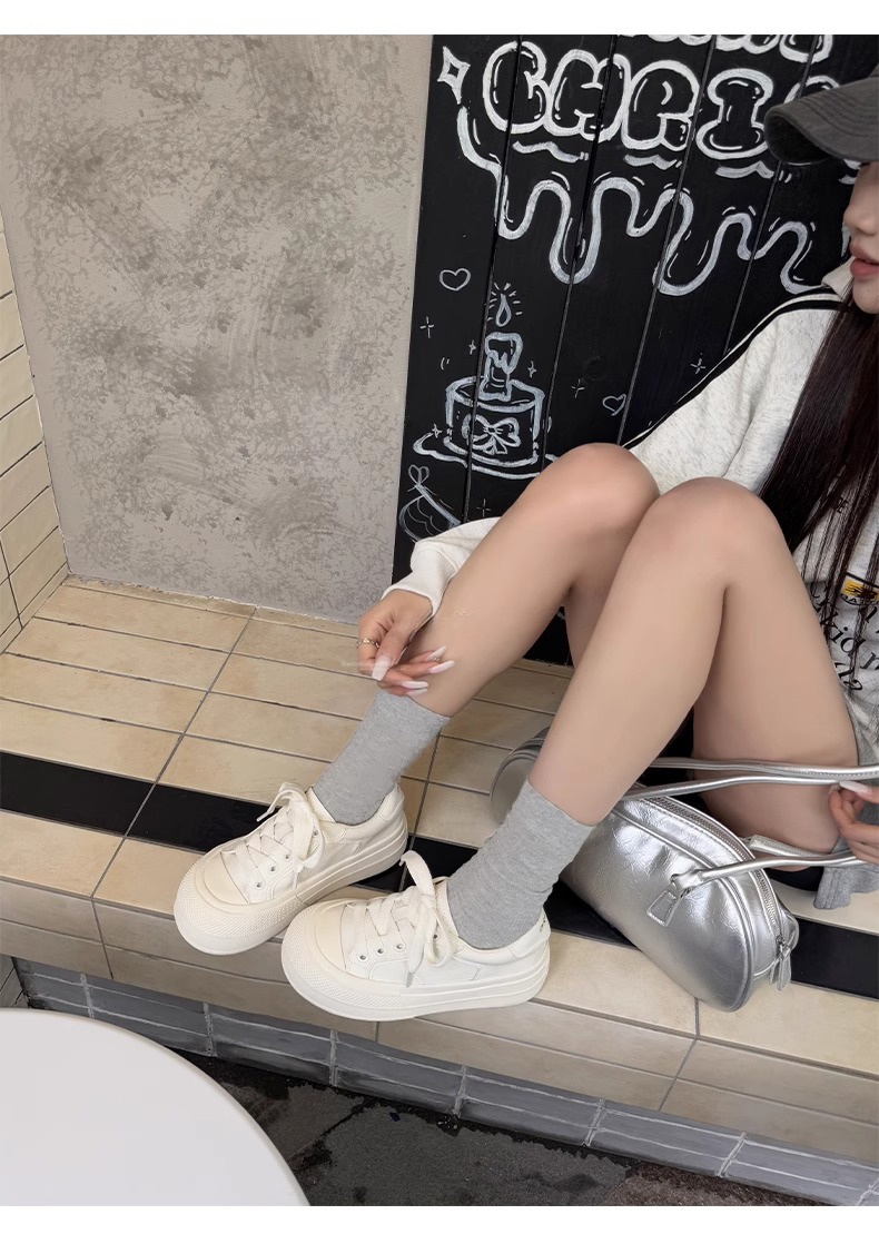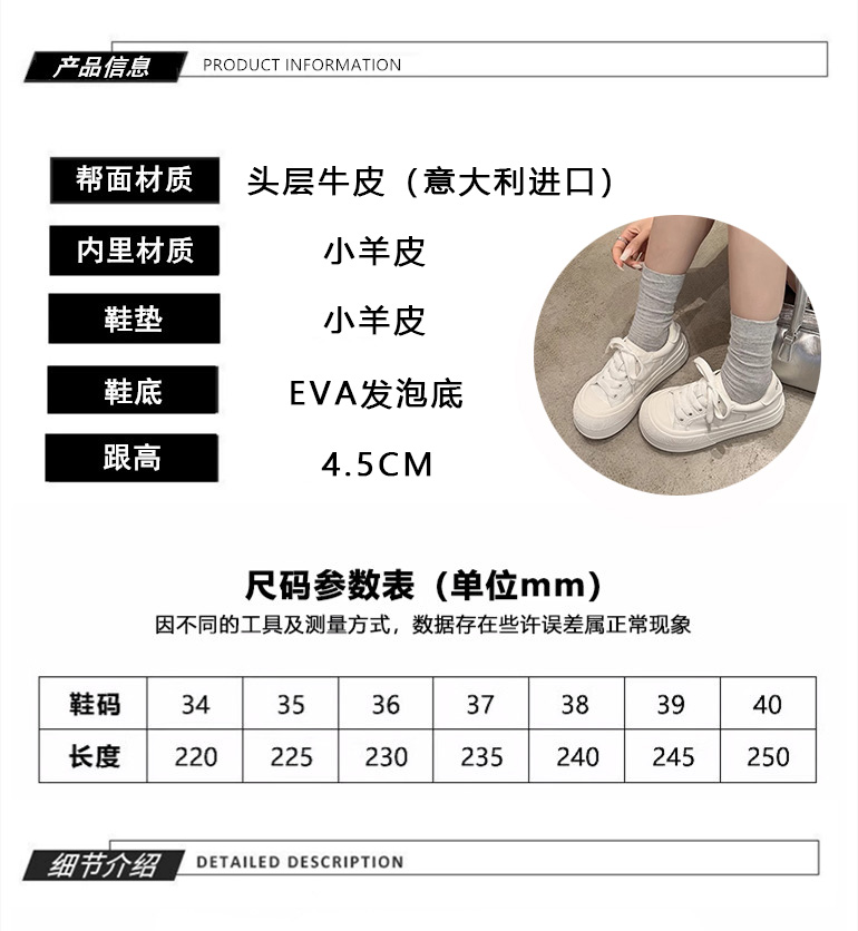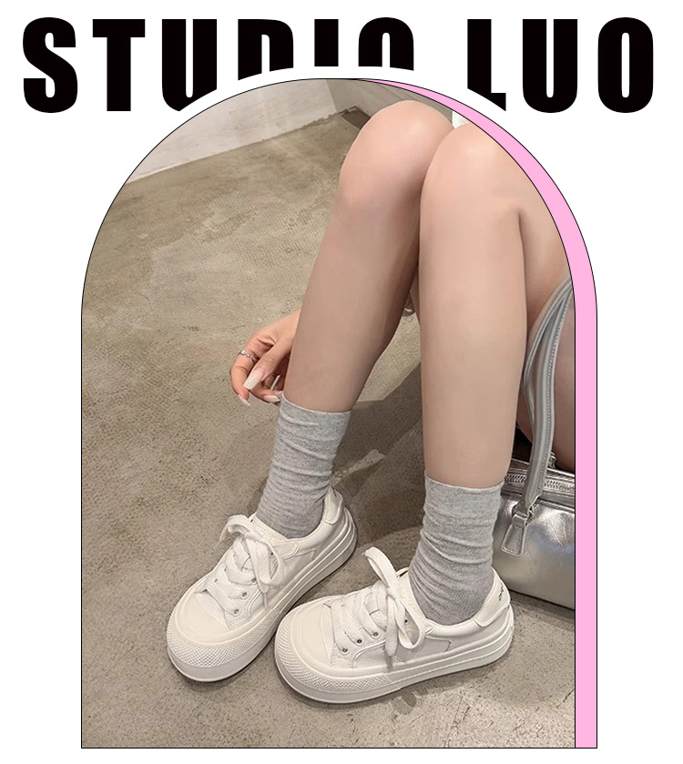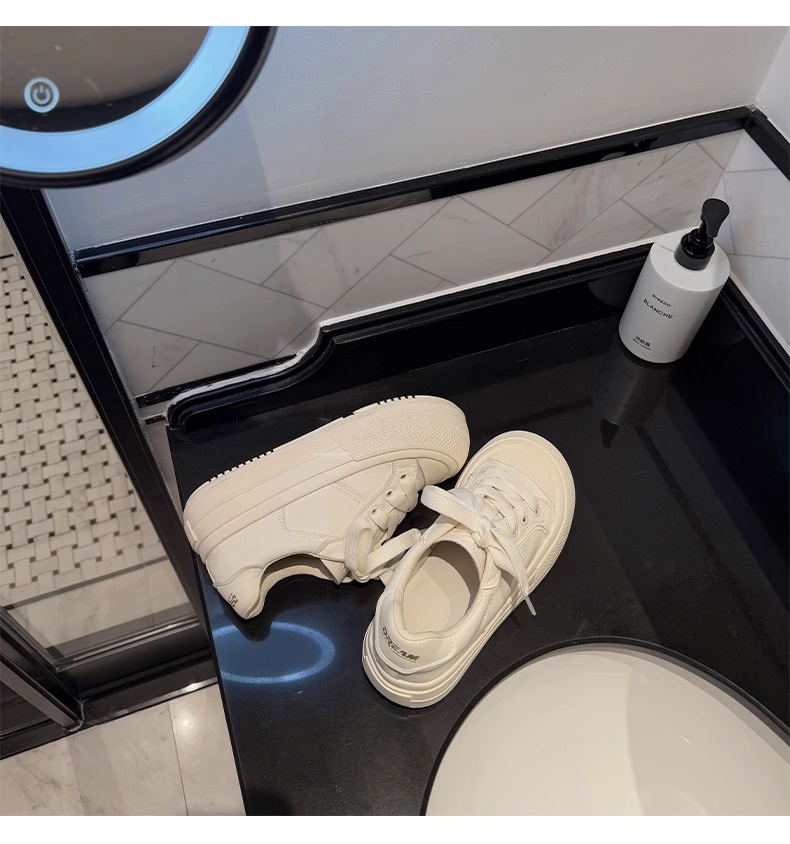 Hong Kong Simple Genuine Leather Thick-Soled White Sneakers for Women 2025 Summer New Round-Toe Lace-Up Sneakers Versatile Sports Casual Shoes