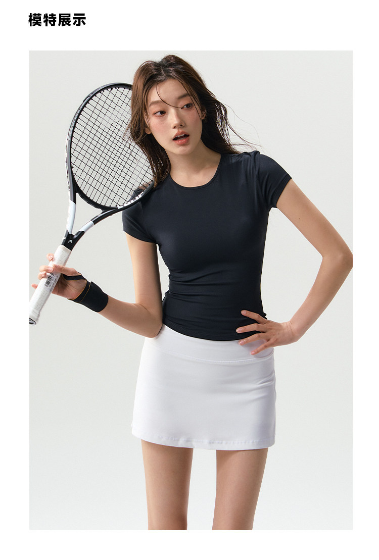 Sports Half-Length Skirt for Women, Quick-Drying Tennis and Badminton Suit, Pilates Training Yoga Wear, Short-Sleeved Fitness Top