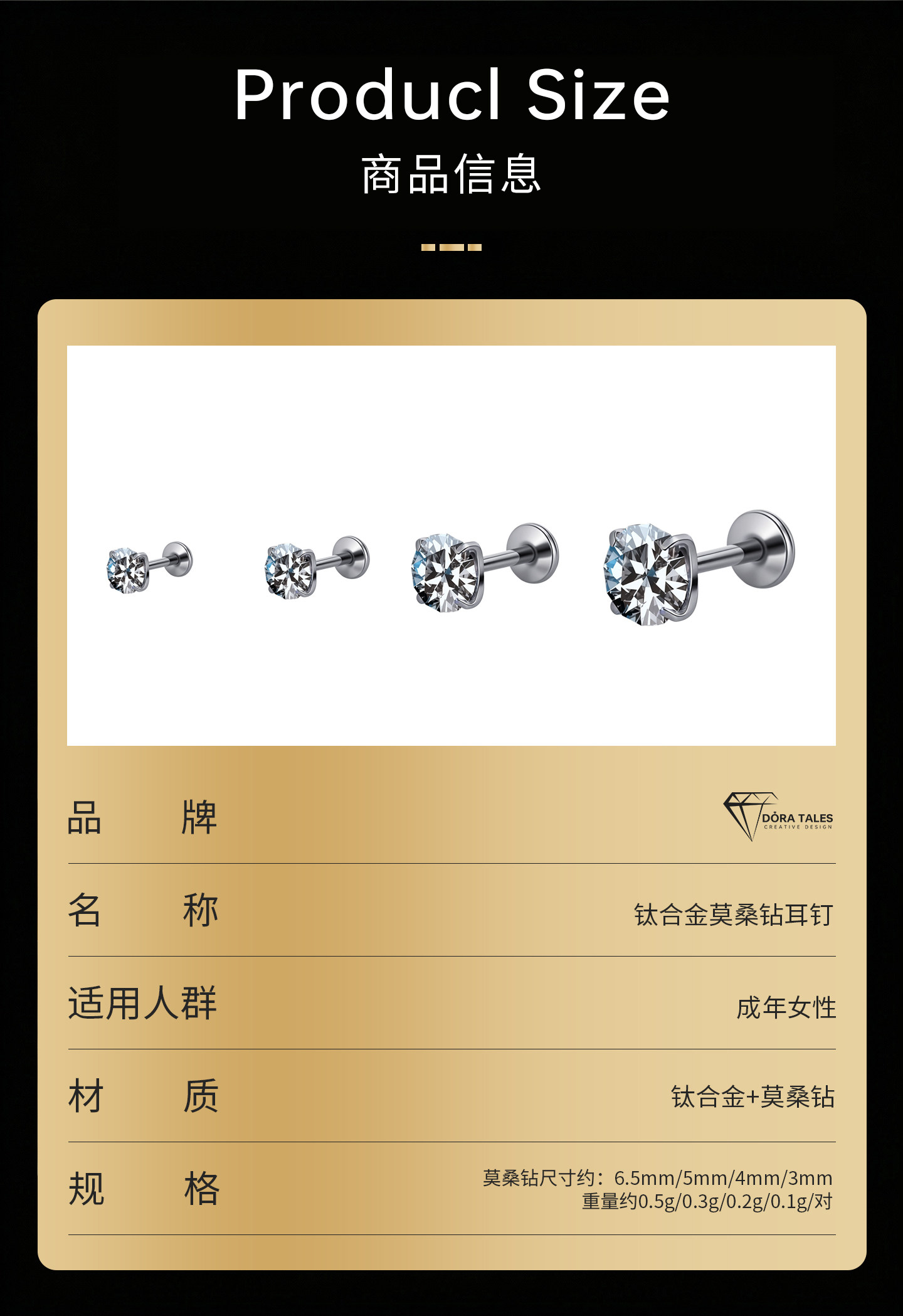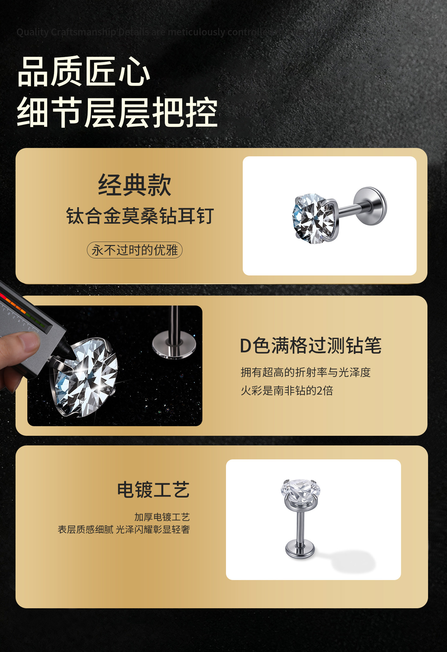 F136 Medical Titanium Alloy Moissanite Earrings, Hypoallergenic, Suitable for Ear Piercing Care, Can Be Worn While Sleeping, Lip Studs, Ear Cartilage Studs, Cochlear Studs