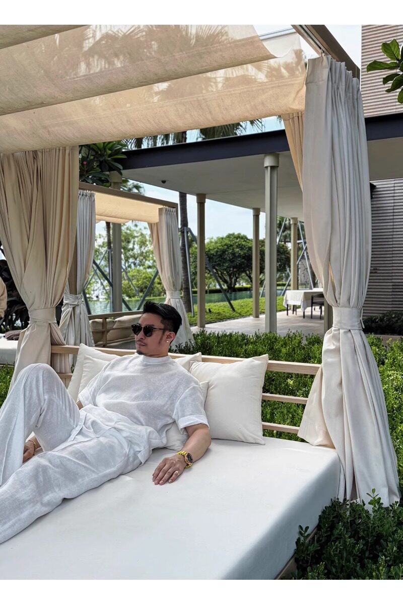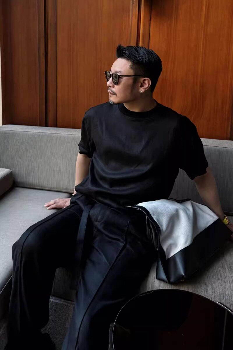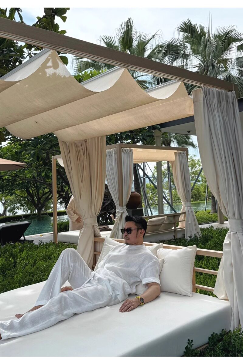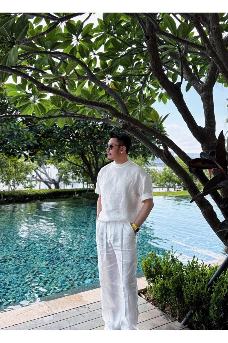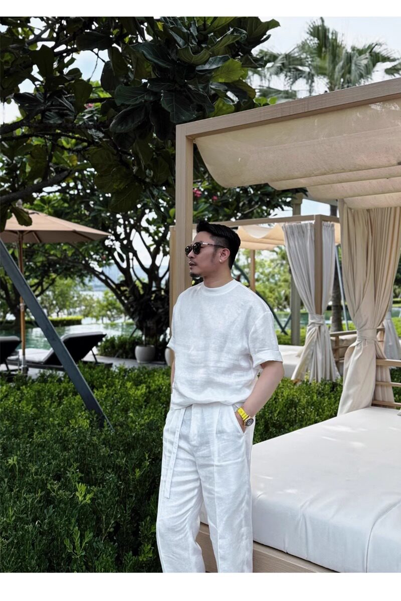 Old Money Style Set, Cool Tencel Linen Short-Sleeve T-Shirt for Men, Summer Outfit for a Youthful Look, Complete Set with Pants