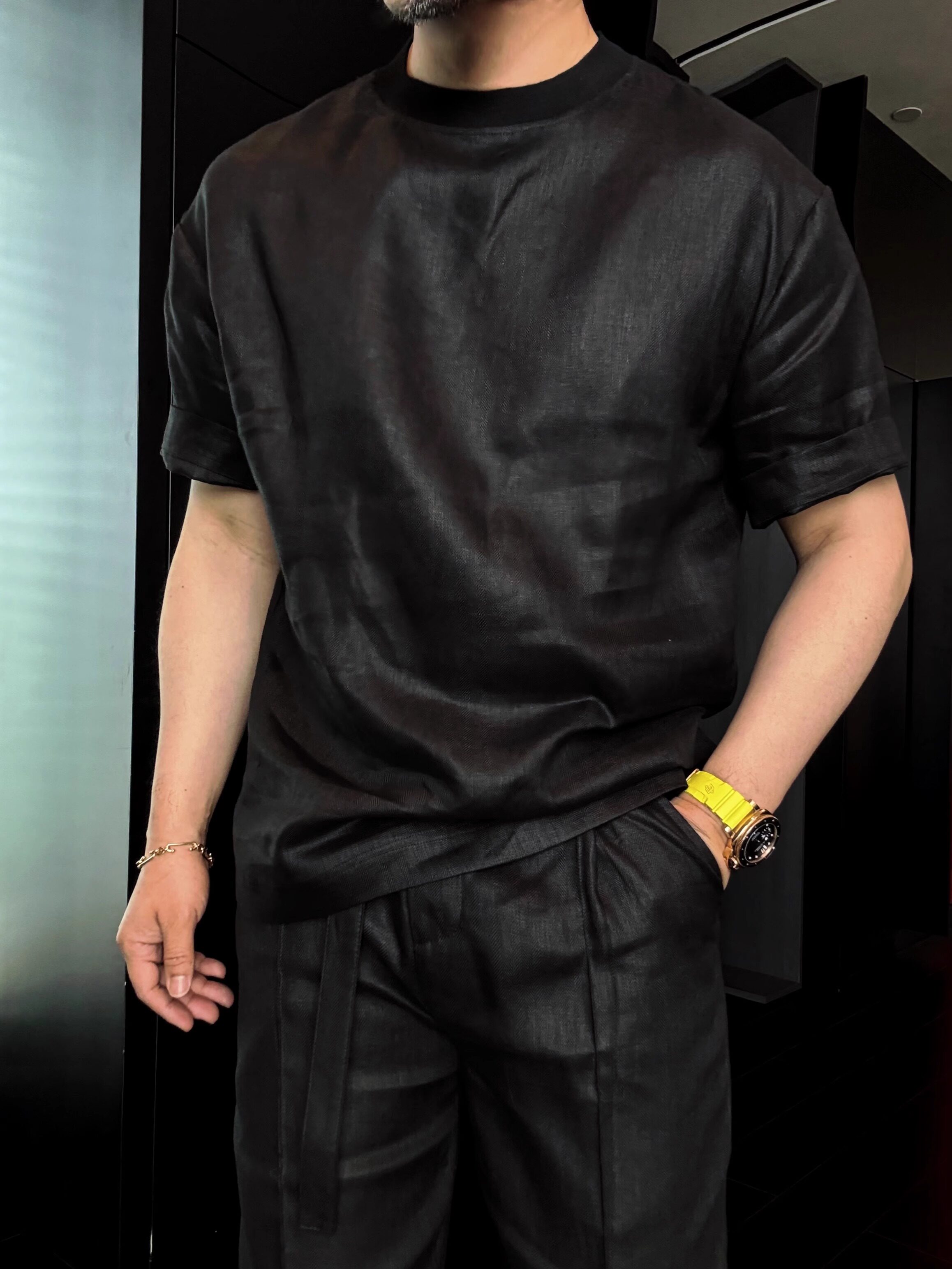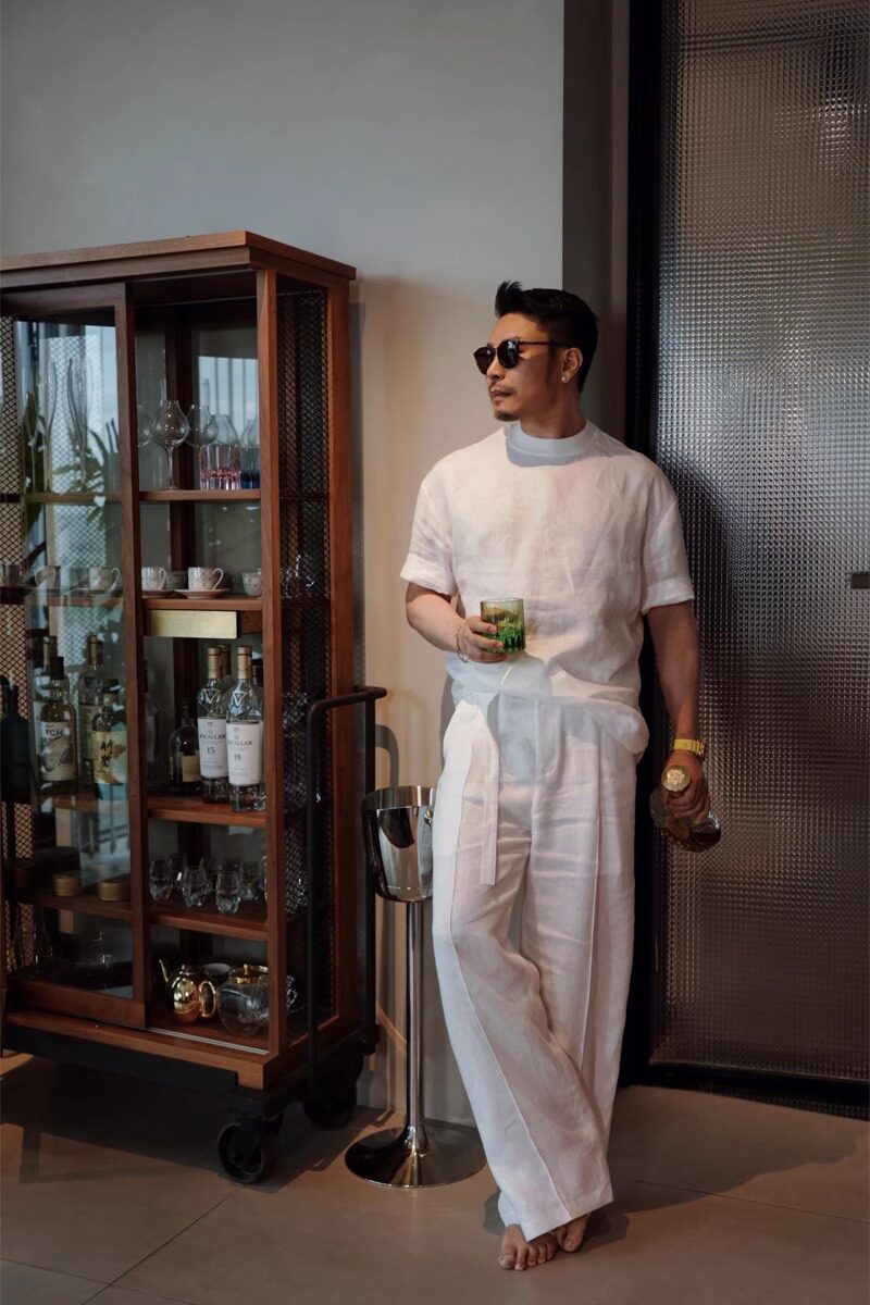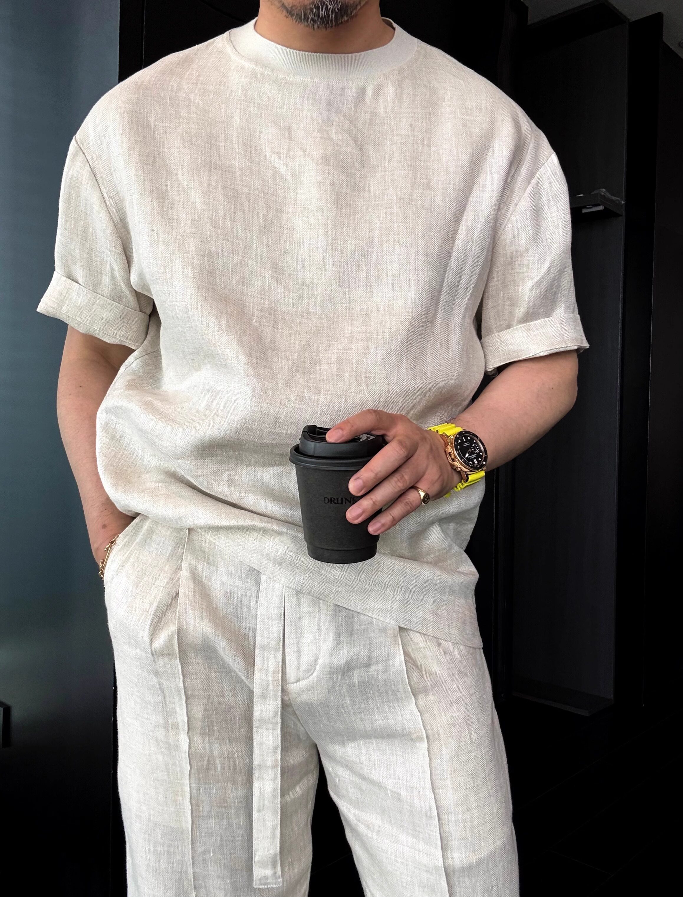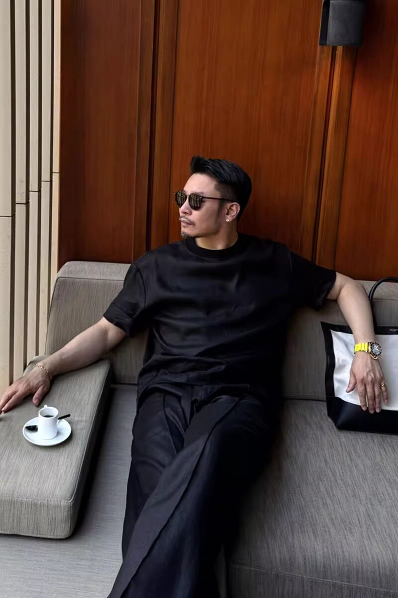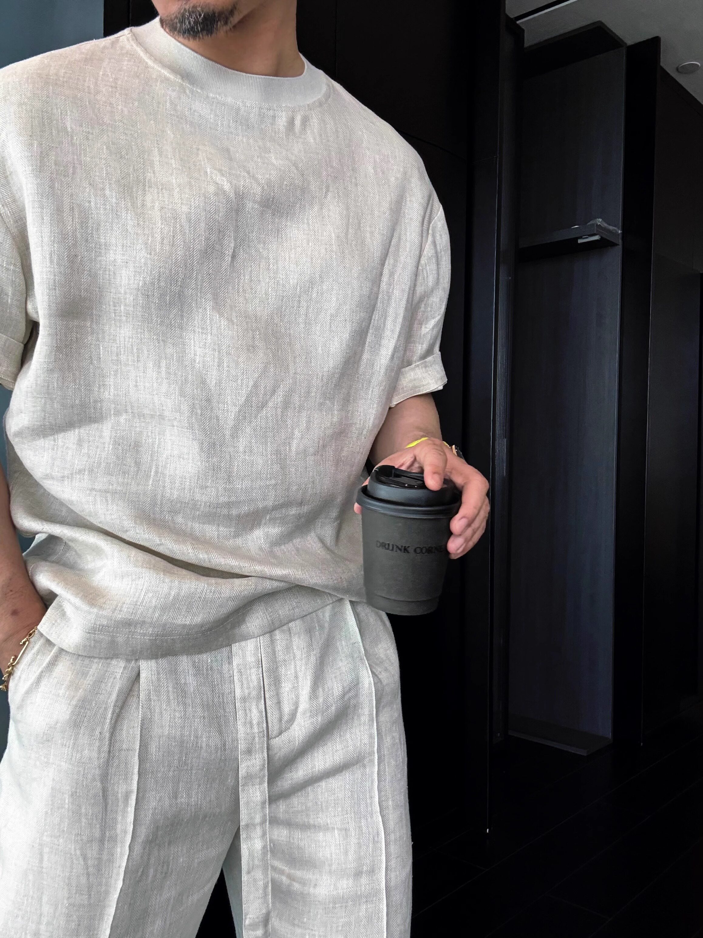 Old Money Style Set, Cool Tencel Linen Short-Sleeve T-Shirt for Men, Summer Outfit for a Youthful Look, Complete Set with Pants