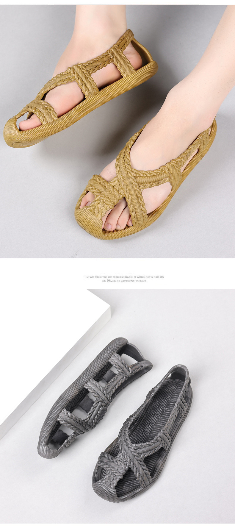 Summer Retro Hand-Woven Shoes Soft Sole Breathable Non-Slip Beach Shoes Imitation Men's and Women's Sandals Rubber Rattan Straw Sandals
