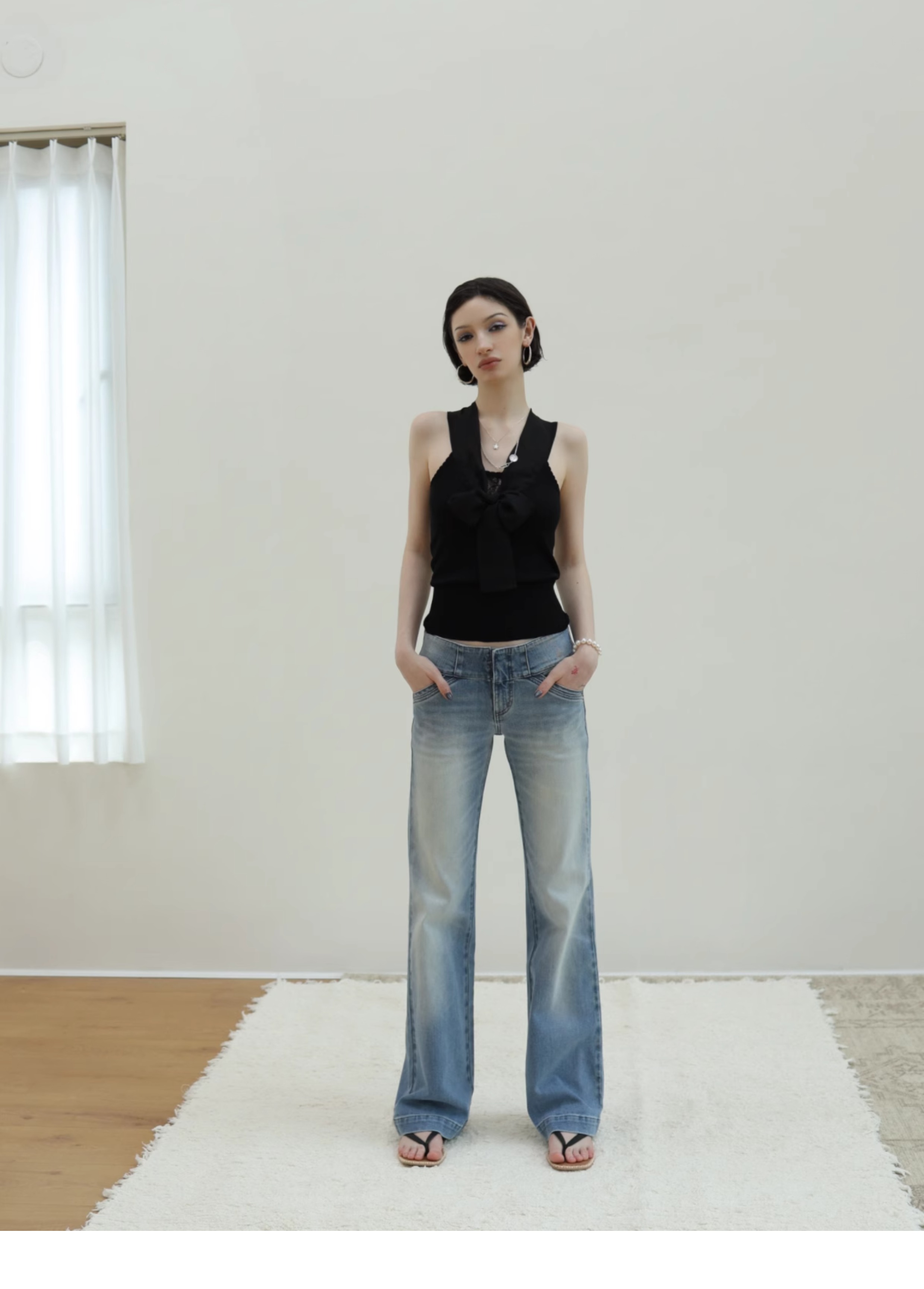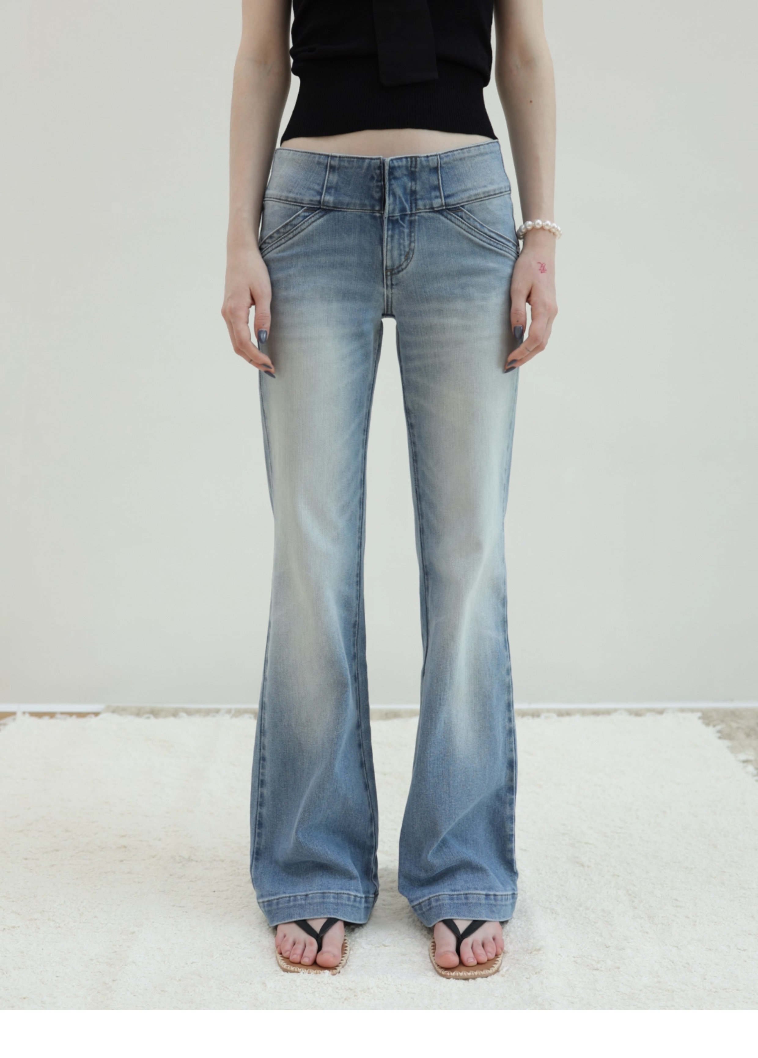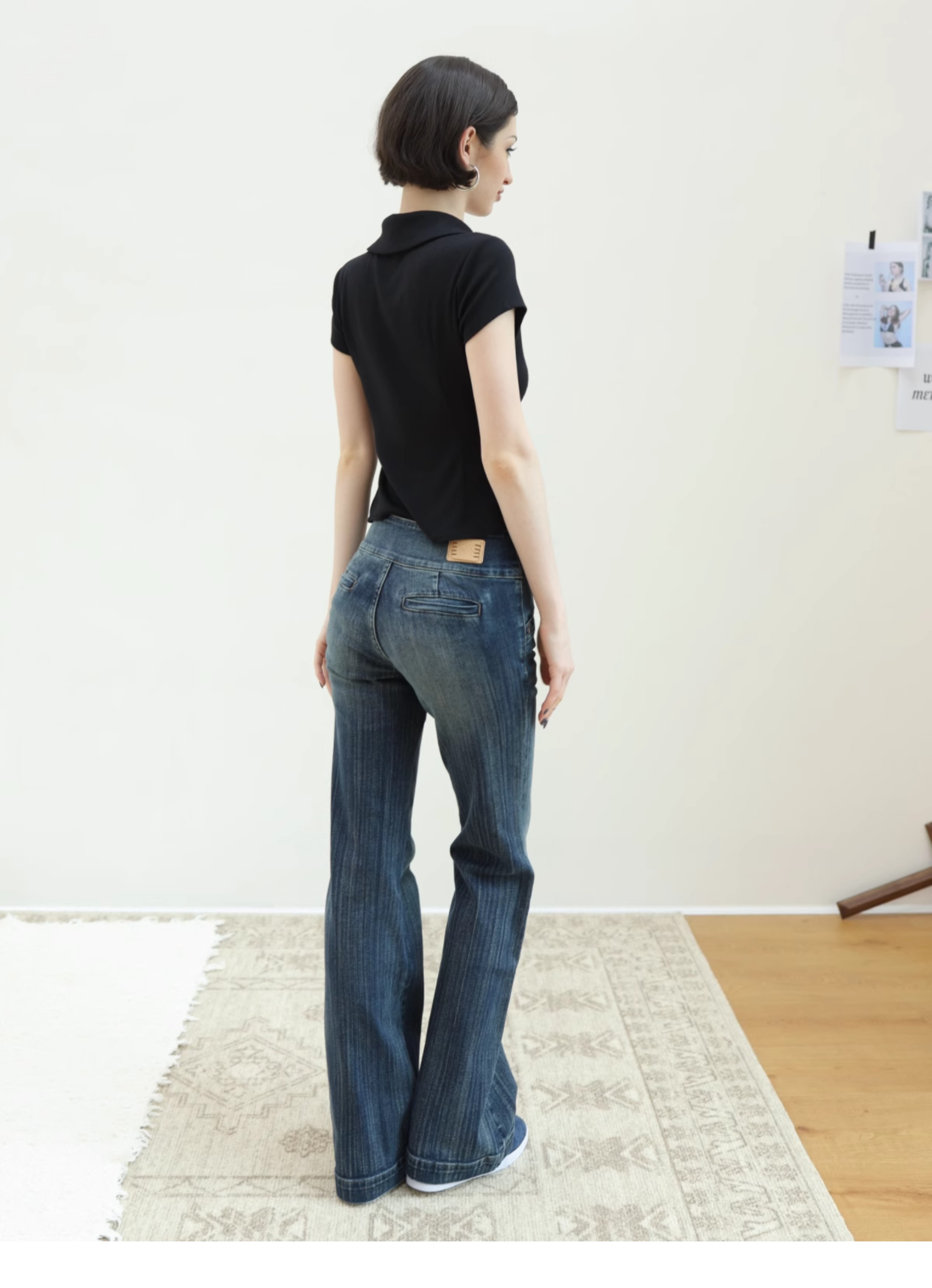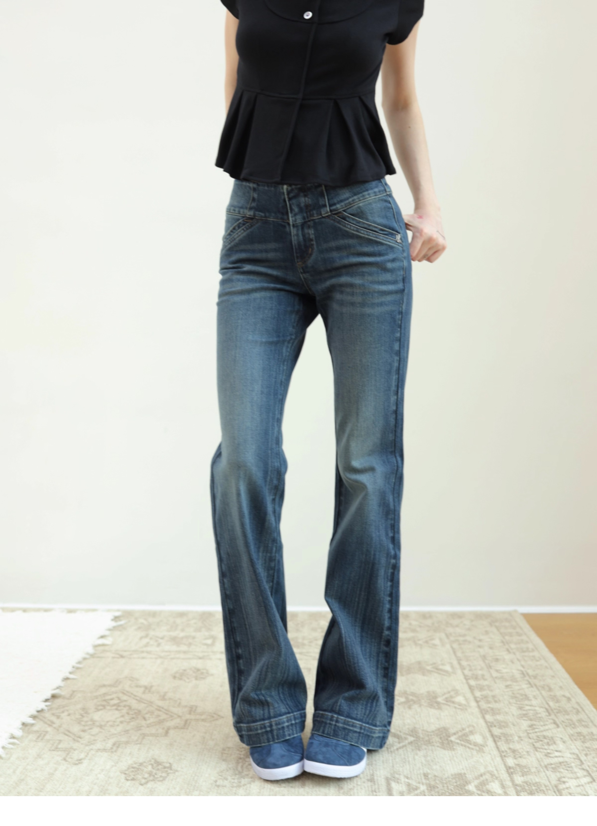 Fot2025 Spring/Summer Three-Color Wide Vintage Waist Straight-Leg Slightly Loose (Not Tight) Denim Long Pants Washed