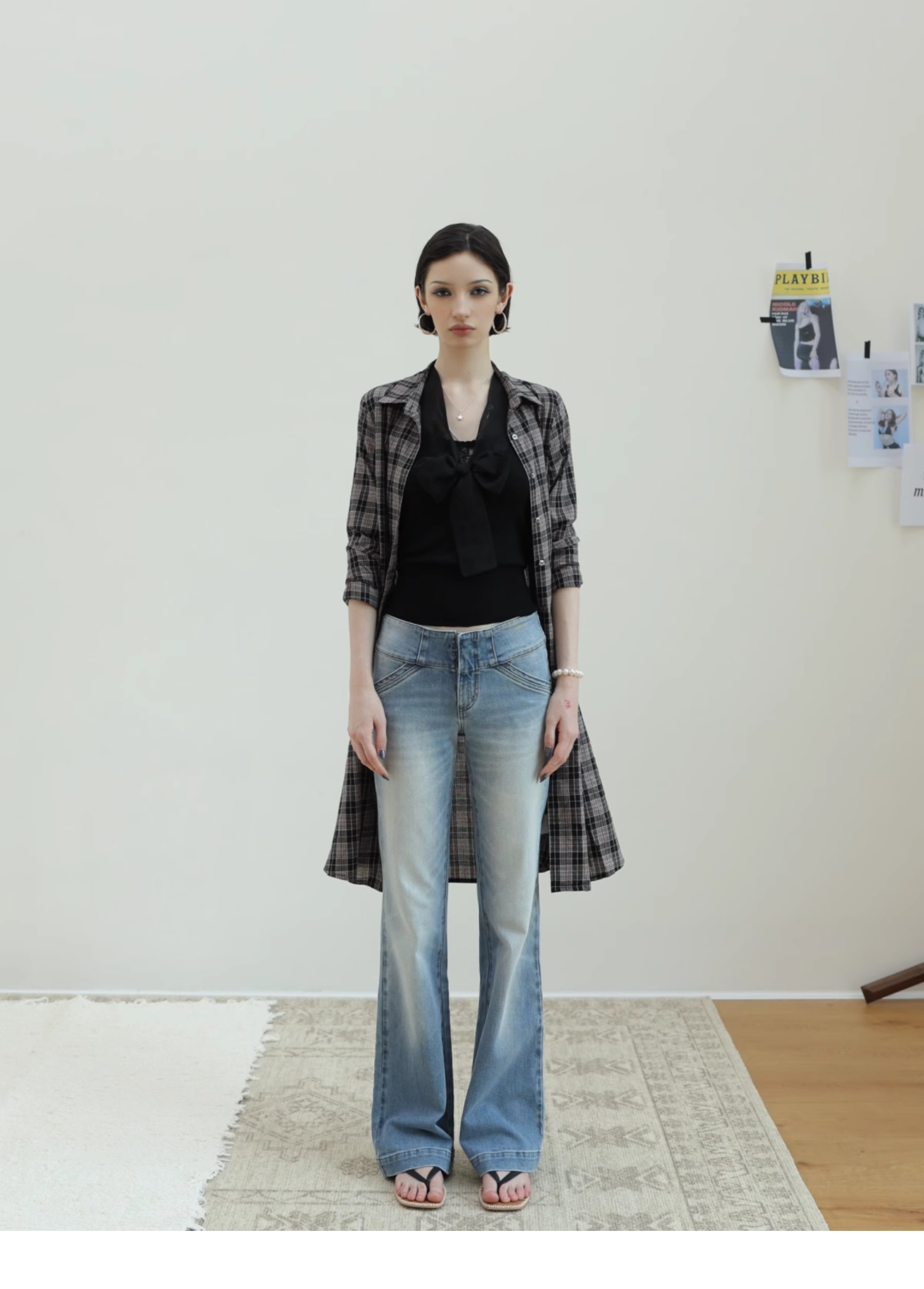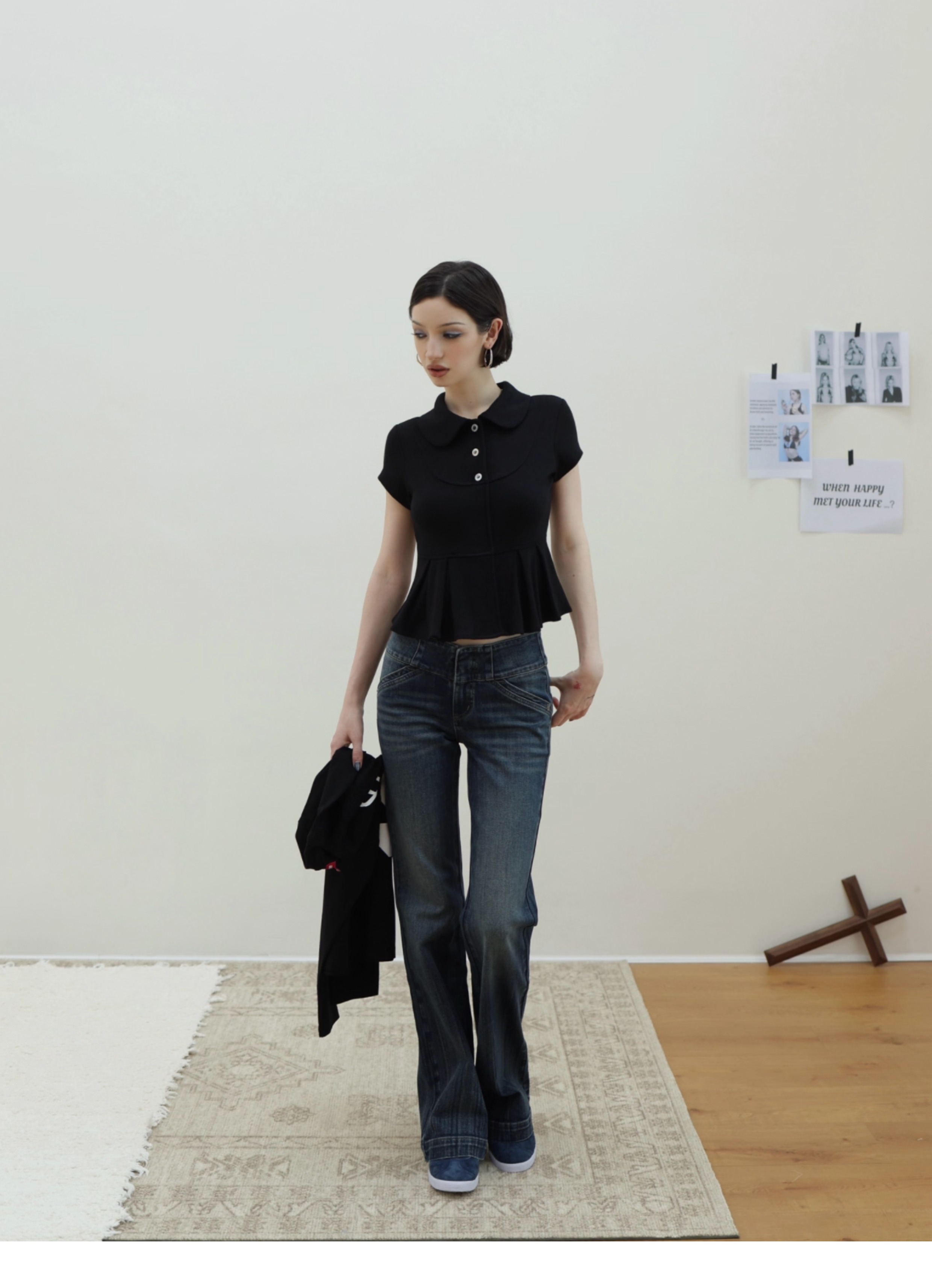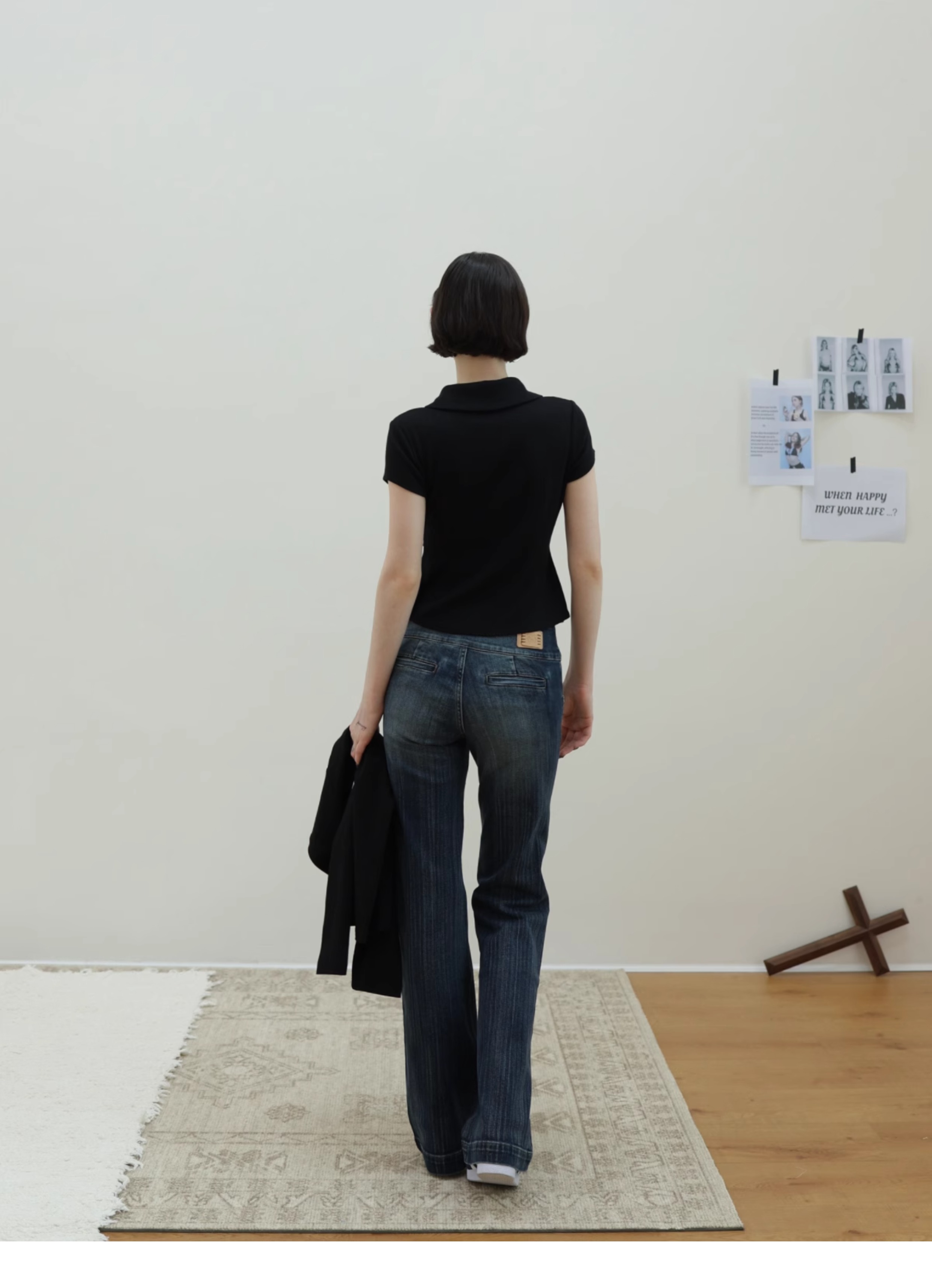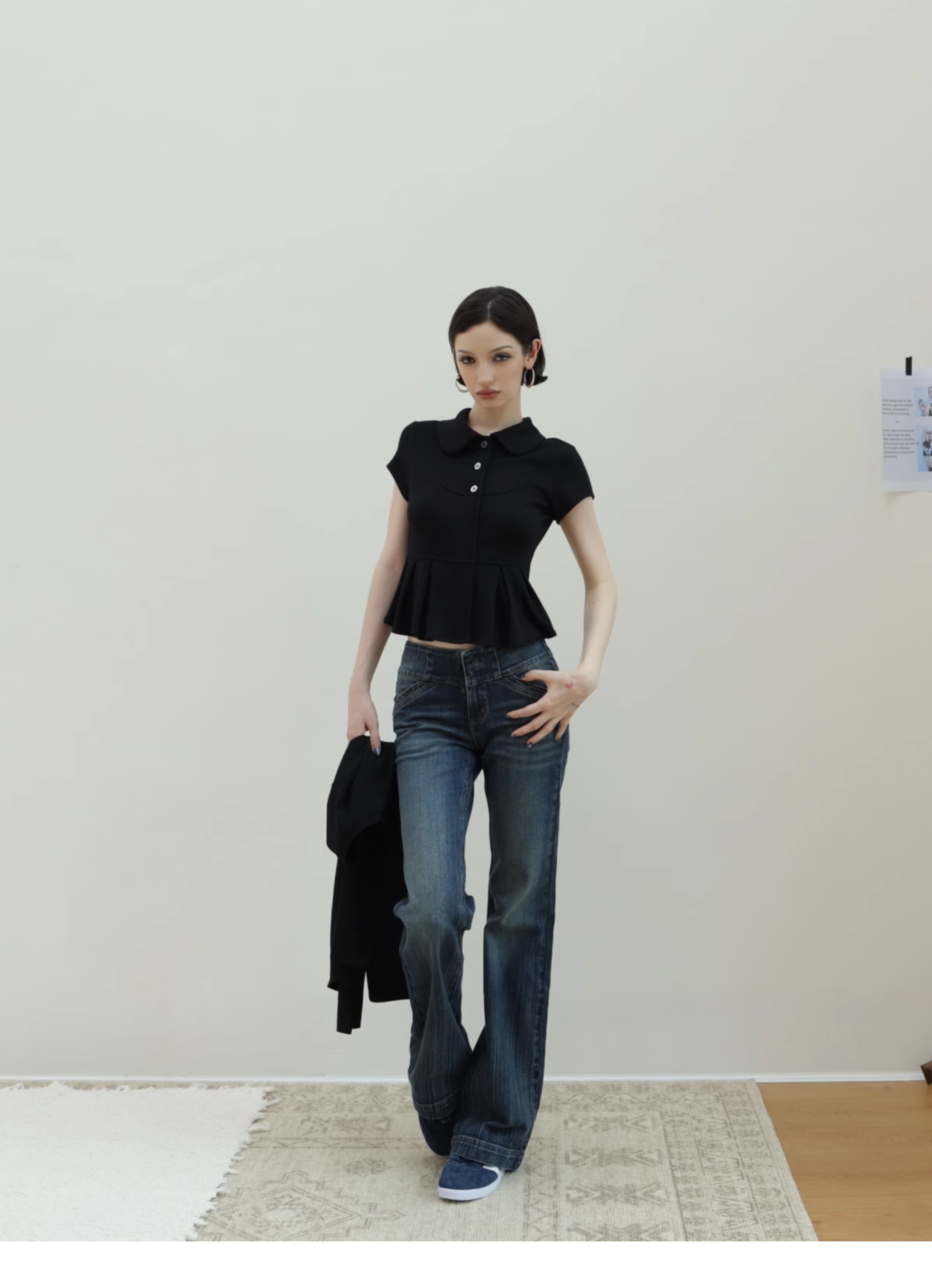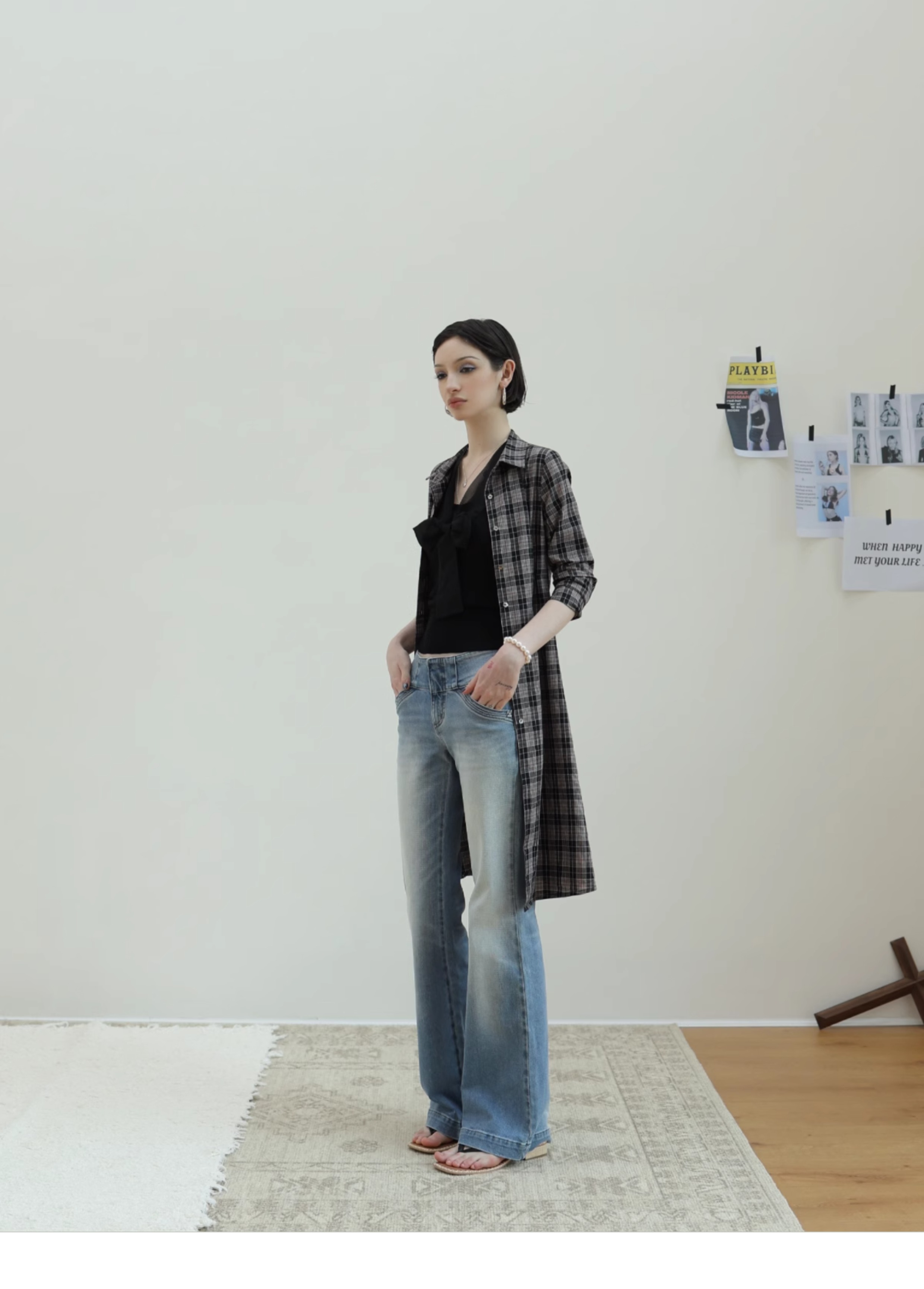 Fot2025 Spring/Summer Three-Color Wide Vintage Waist Straight-Leg Slightly Loose (Not Tight) Denim Long Pants Washed