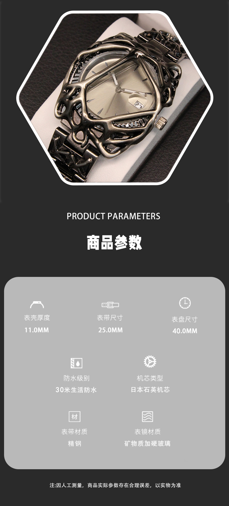 Millennium Alien Watch Alabaster Vintage Style Niche Spider Web Calendar European and American Cool Men's Watch Gift
