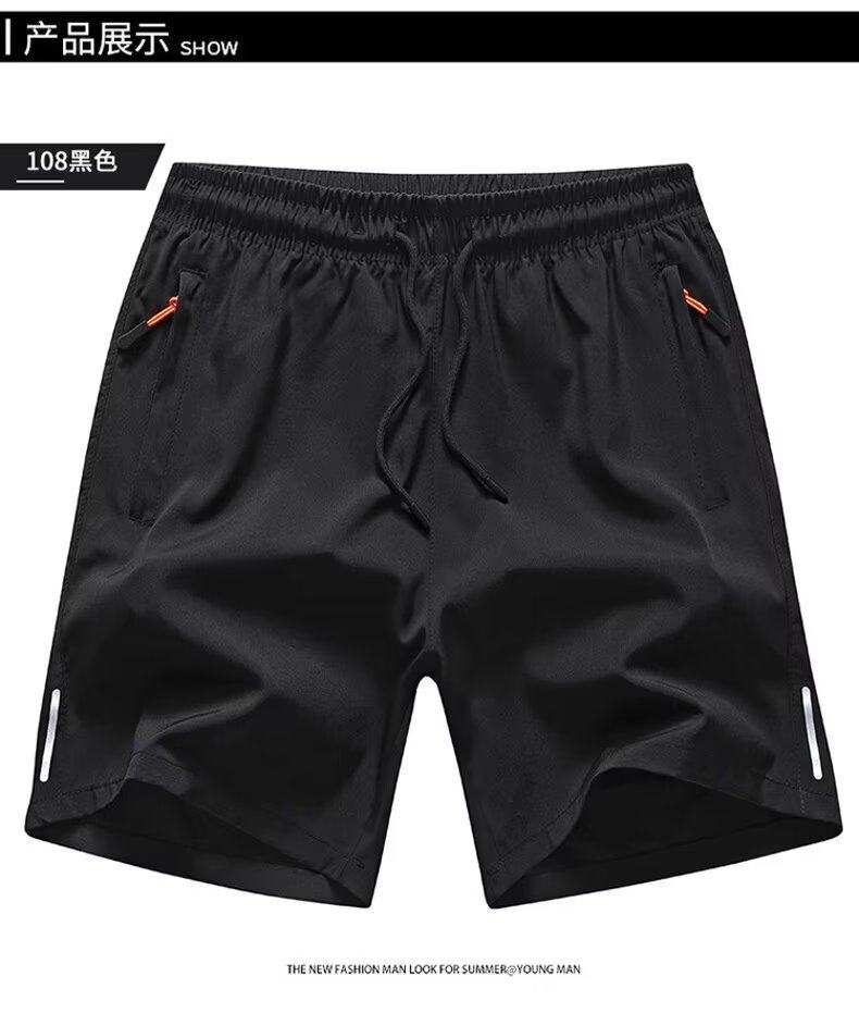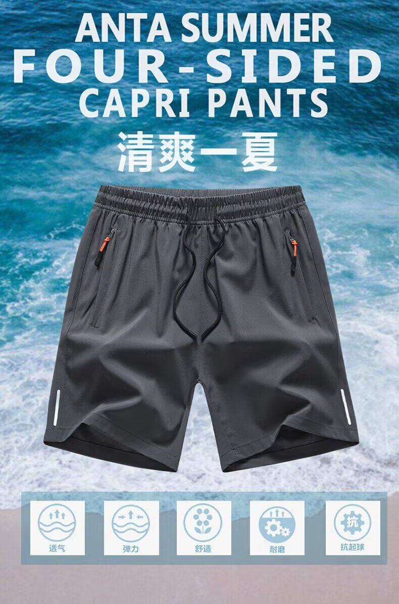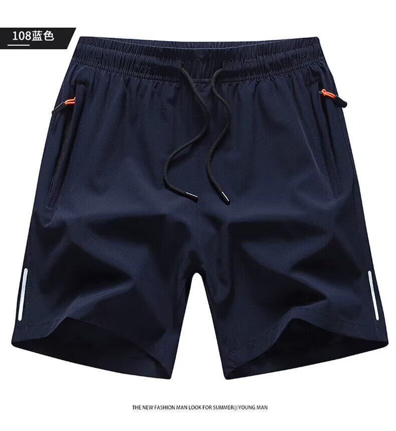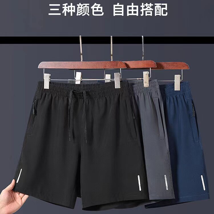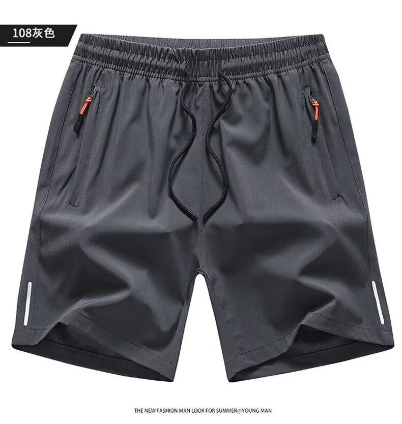 Ice Silk Quarter Shorts for Men, Summer Loose Fit with Pockets and Zipper, Suitable for Running and Fitness, Plus Size Five-Point Shorts