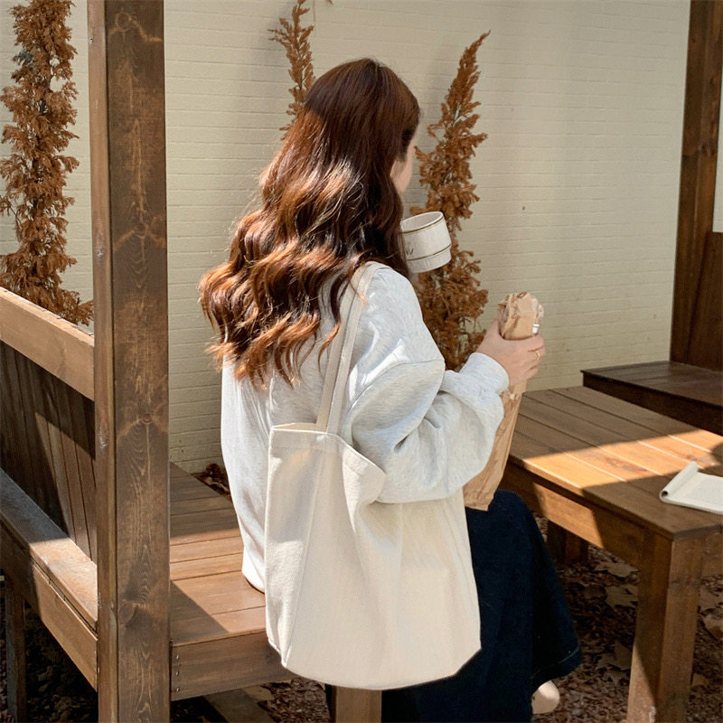 Korean Style Large-Capacity Casual Versatile Canvas Bag Simple Commuter Tote Shoulder Underarm Bag Shopping Large Bag