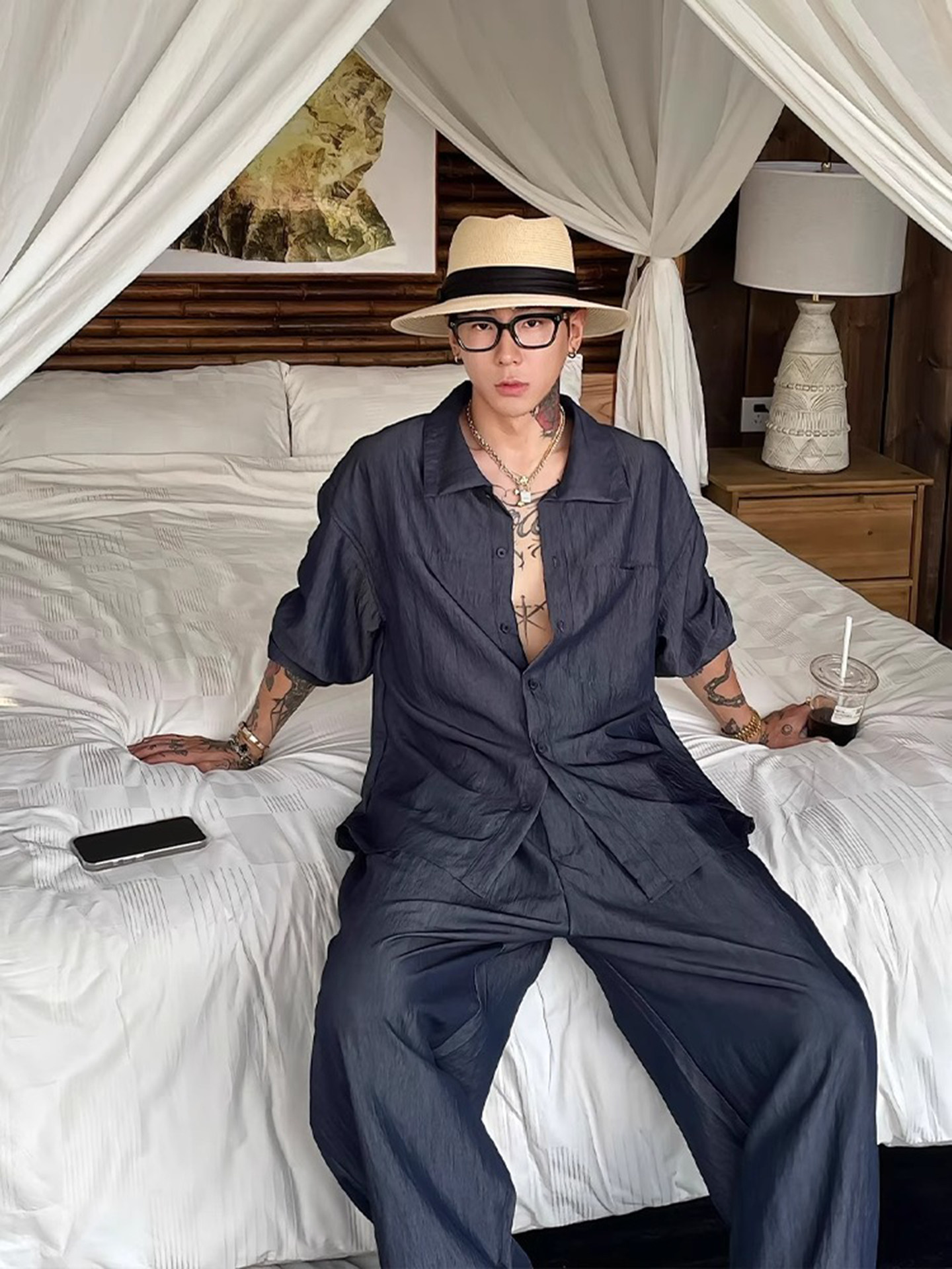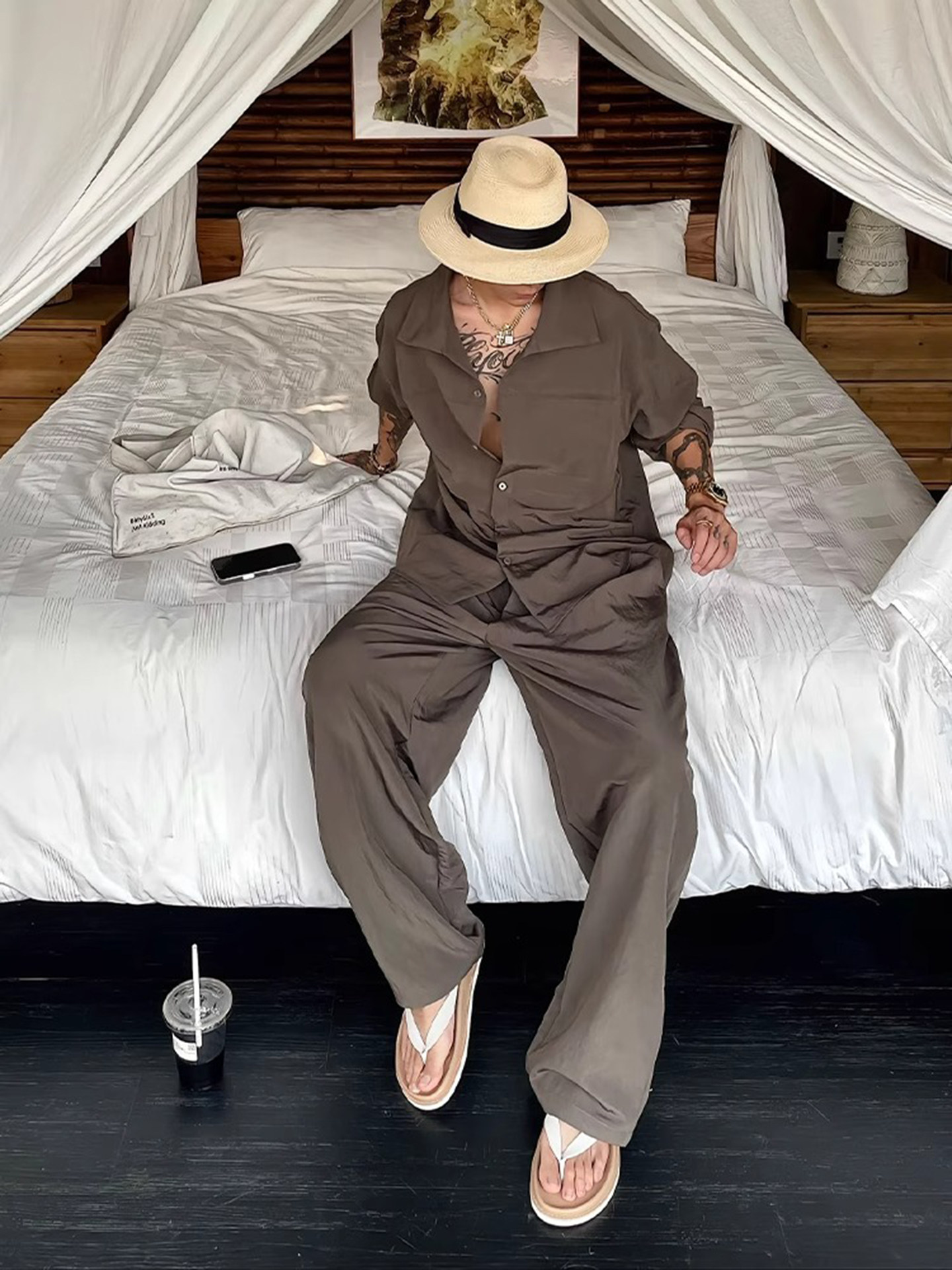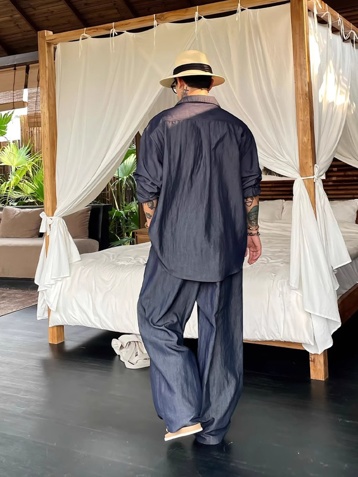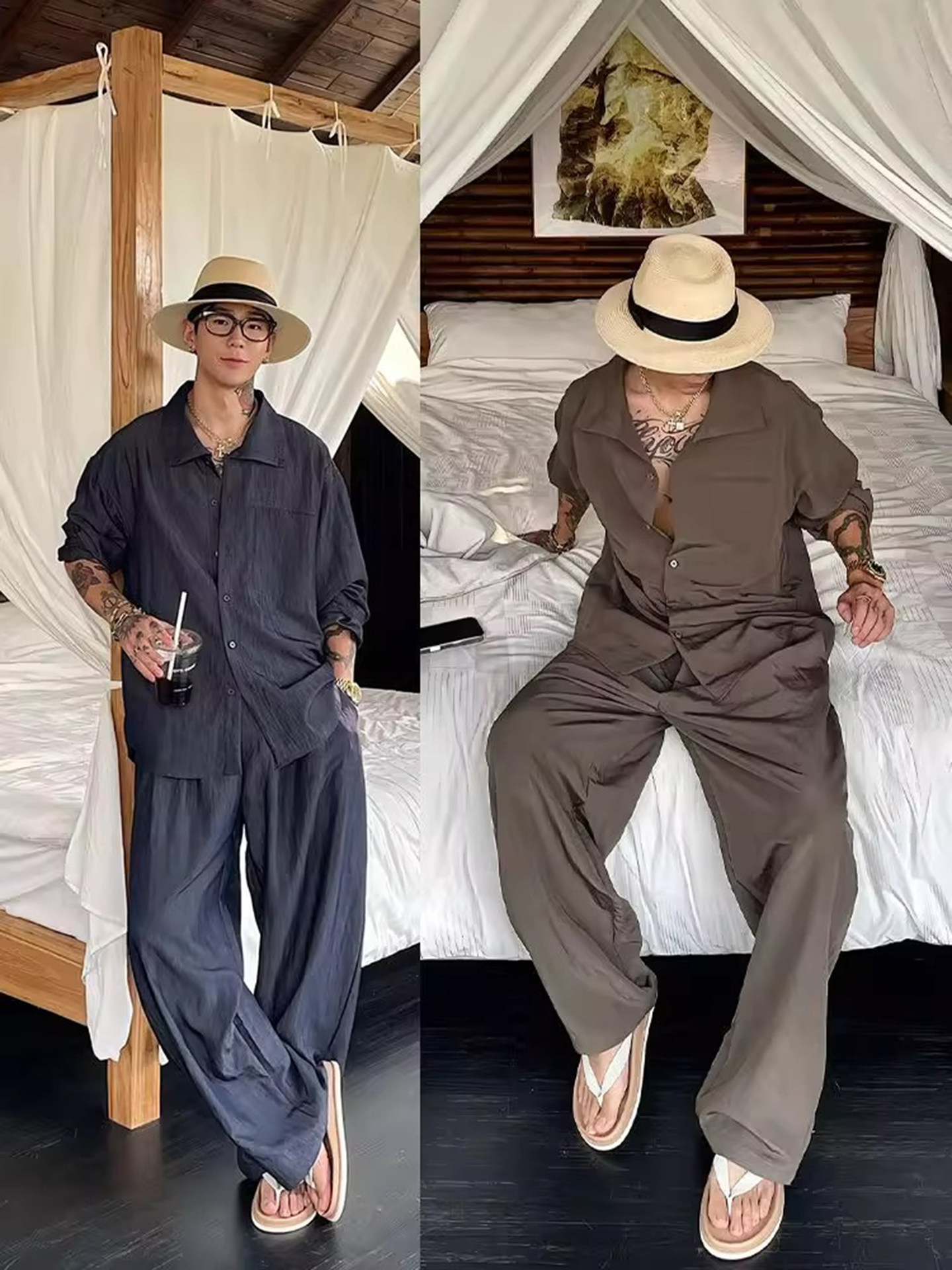 Old Money Style Linen Suit for Men, Summer New Luxury Light Luxury High-End Long-Sleeved Shirt and Trousers, Vacation Casual Complete Set