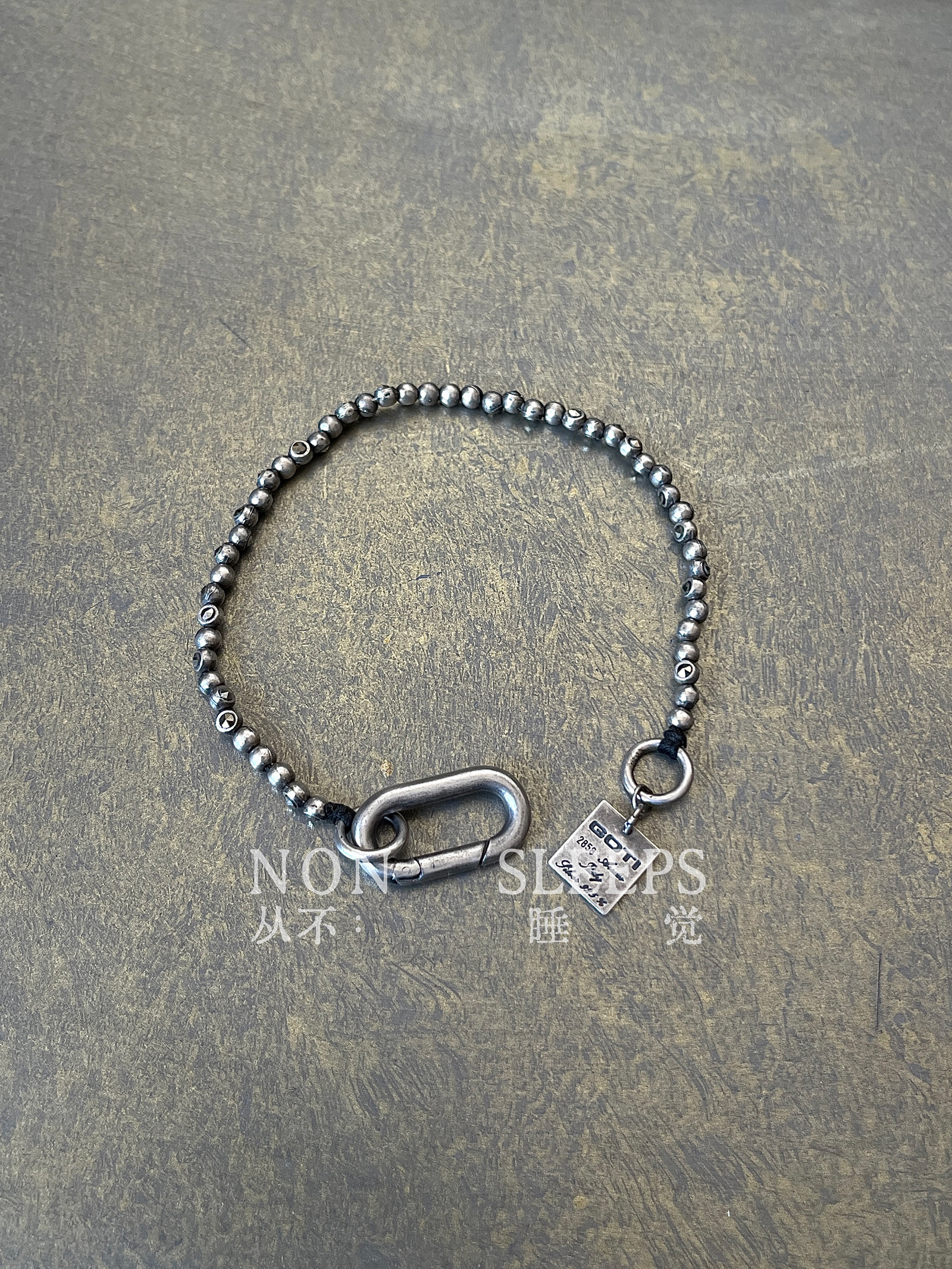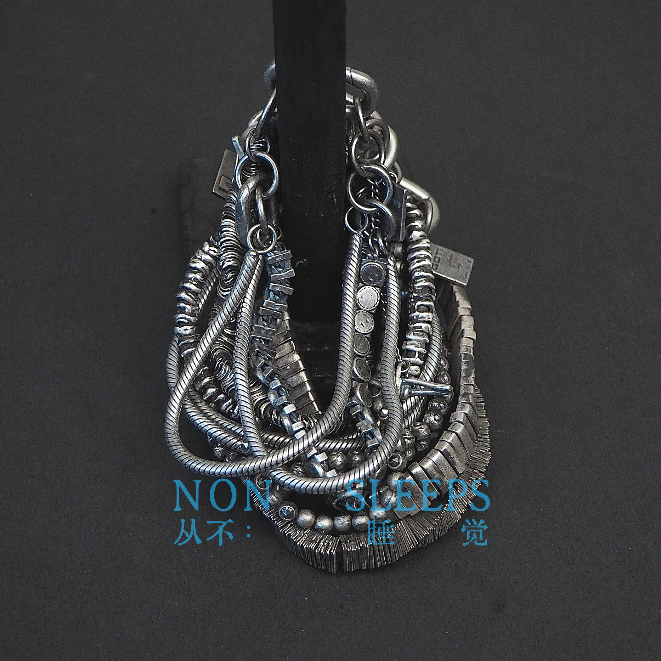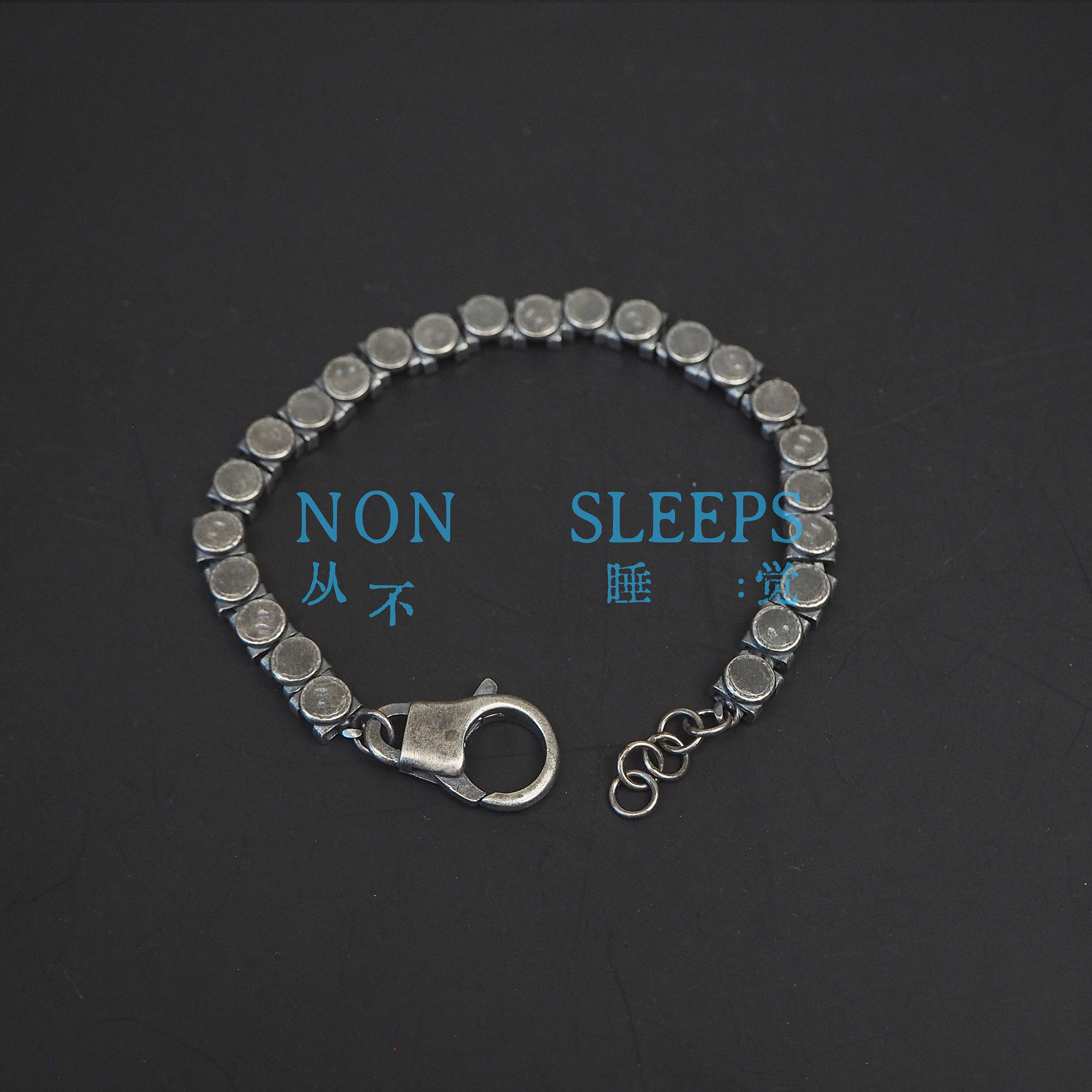 Never Sleep Dark Gothic Style Tungsten Steel Stone Shaped Thin Bracelet Heavy Craft Distressed Sterling Silver Vintage Bracelet