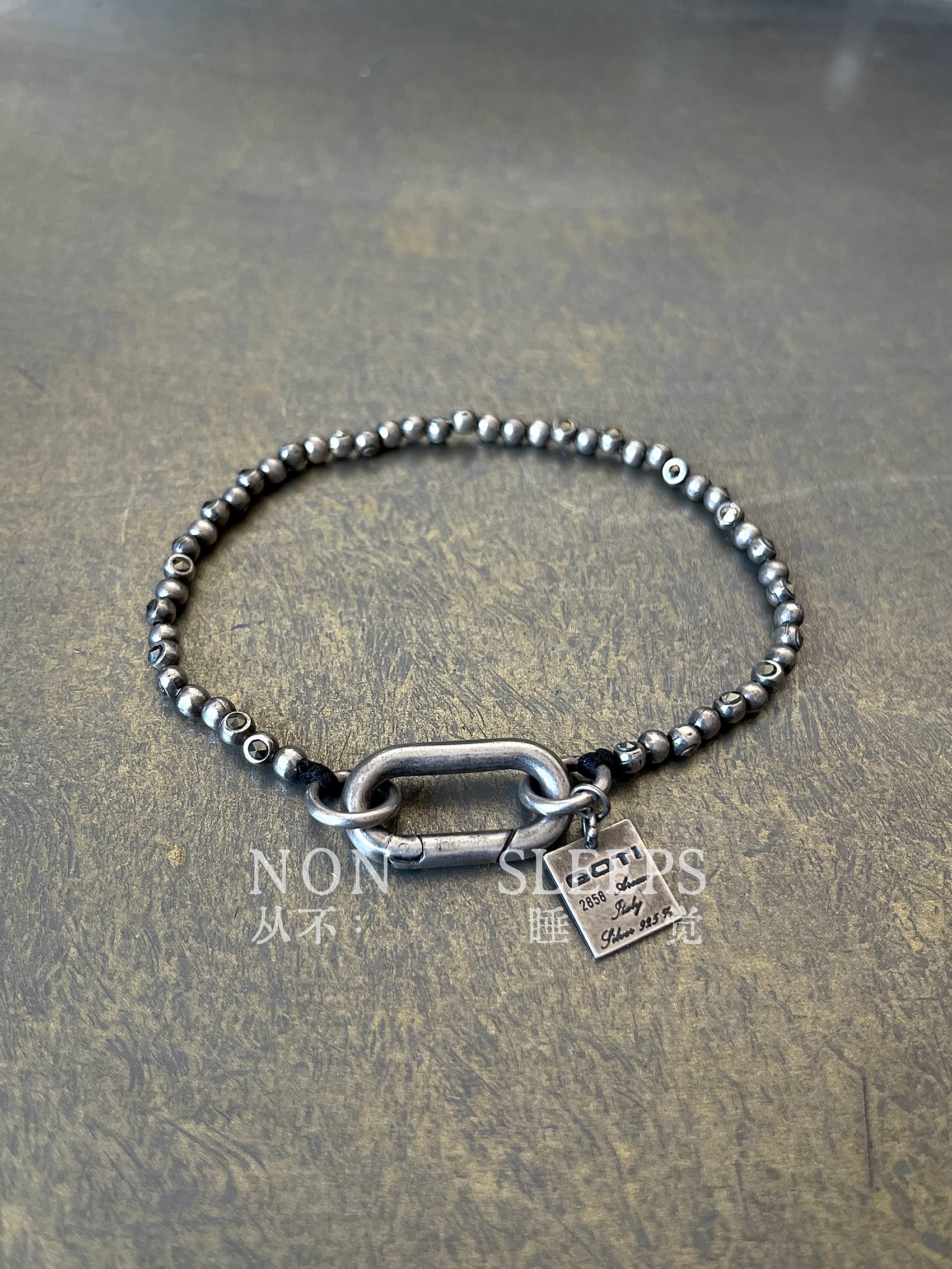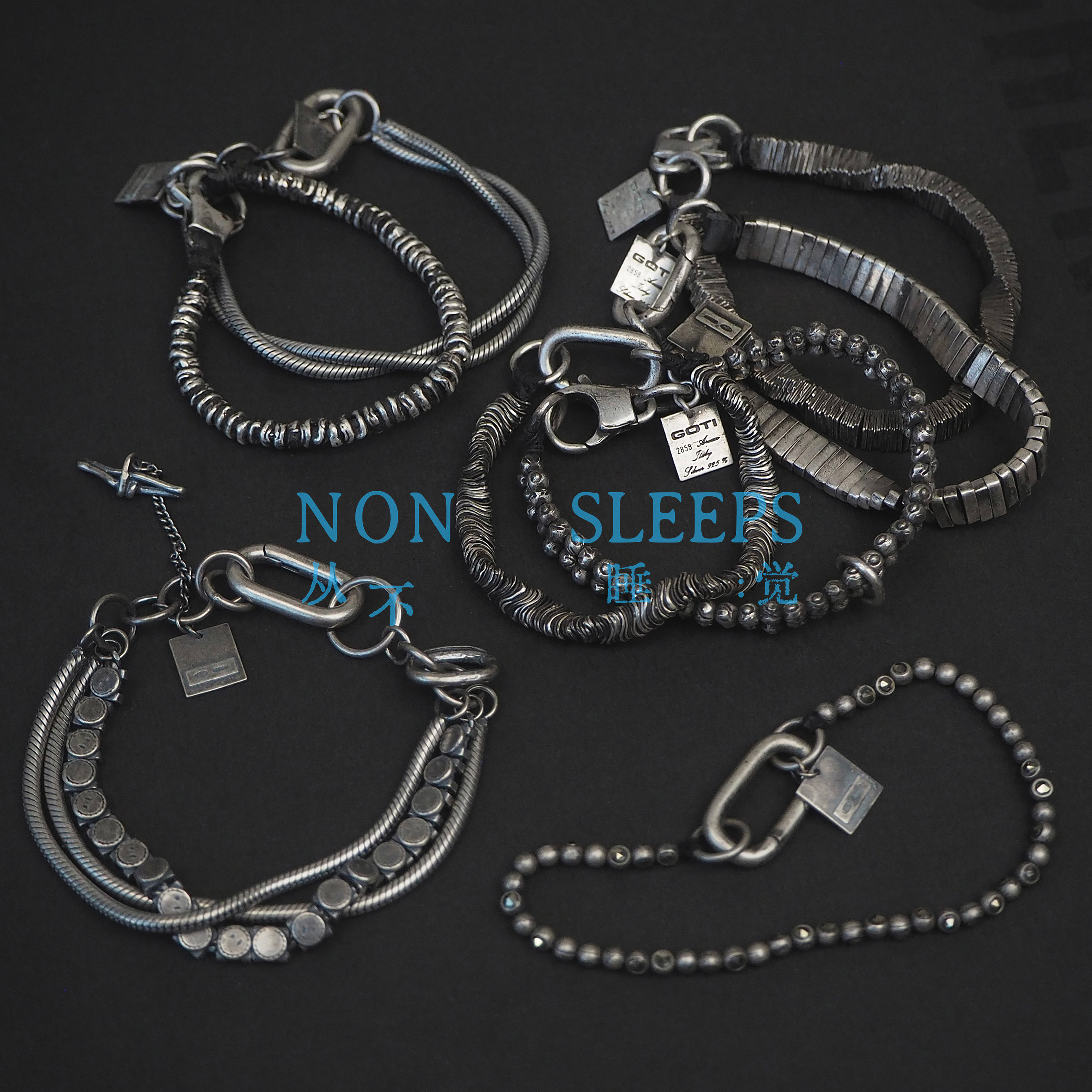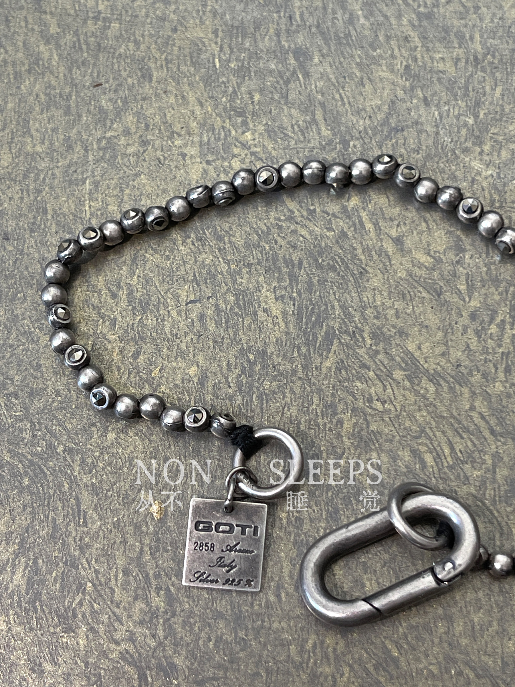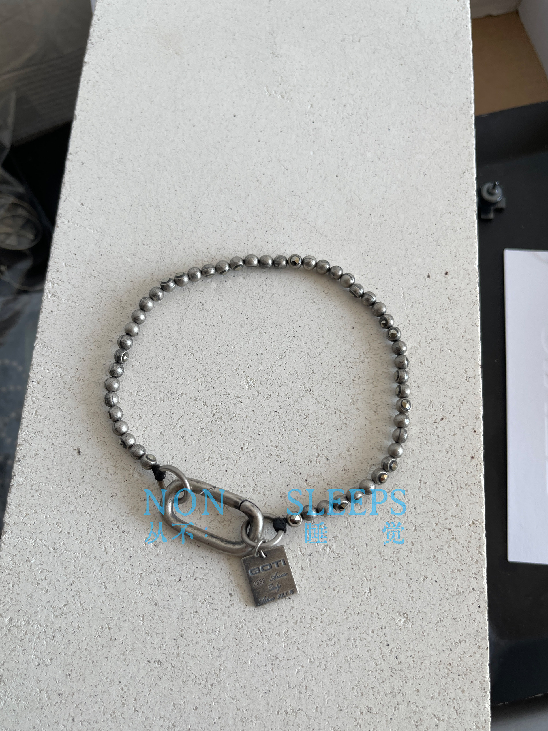 Never Sleep Dark Gothic Style Tungsten Steel Stone Shaped Thin Bracelet Heavy Craft Distressed Sterling Silver Vintage Bracelet