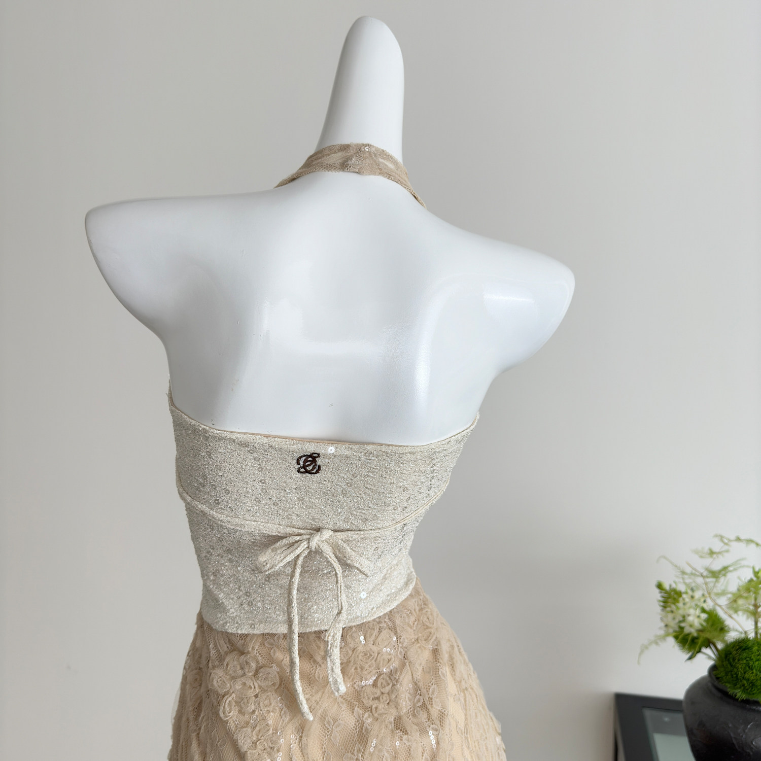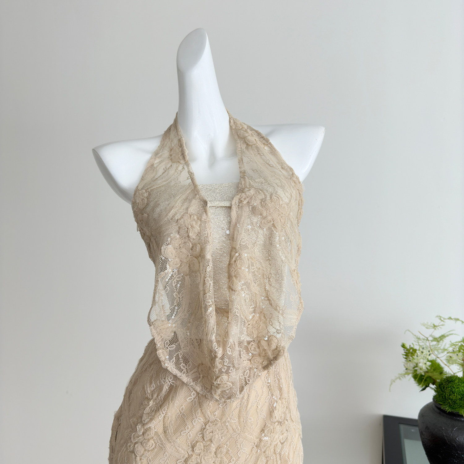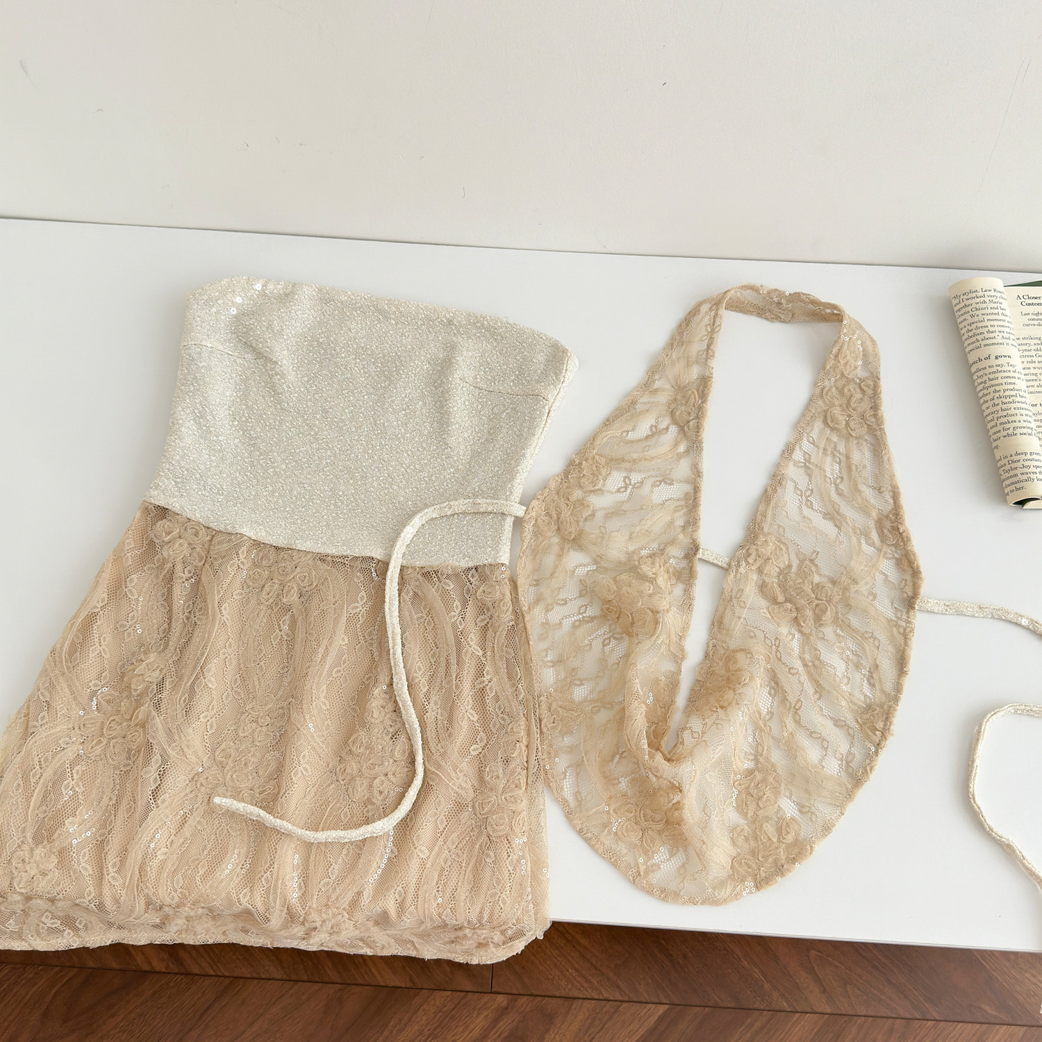 Youni LAOSHU Sequin Lace Embroidered Elegant Hot Girl Dress Halter Neck Slim Fit Tube Top Bodycon Dress