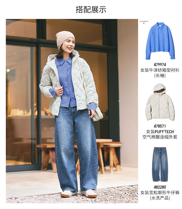 Uniqlo Women's Pufftech Air Cotton Hooded Jacket/25 Autumn and Winter New Style 478571 469871