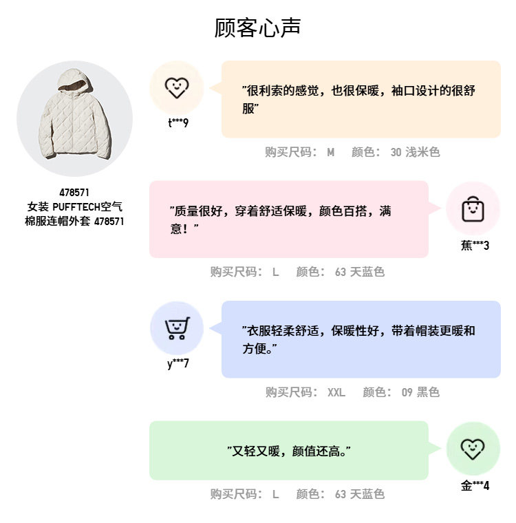 Uniqlo Women's Pufftech Air Cotton Hooded Jacket 478571 469871
