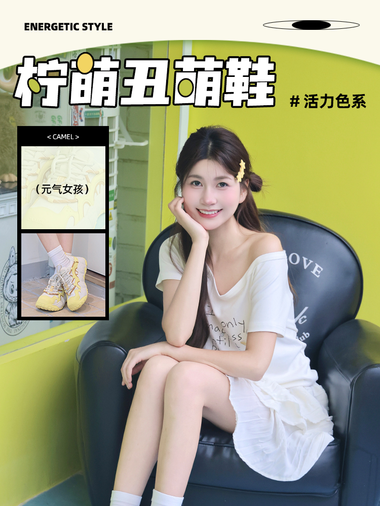 Dilraba's Same Style Camel Lemon Cute Outdoor Casual Shoes, Ugly-Cute Shoes, Women's Sneakers, Women's Dad Shoes