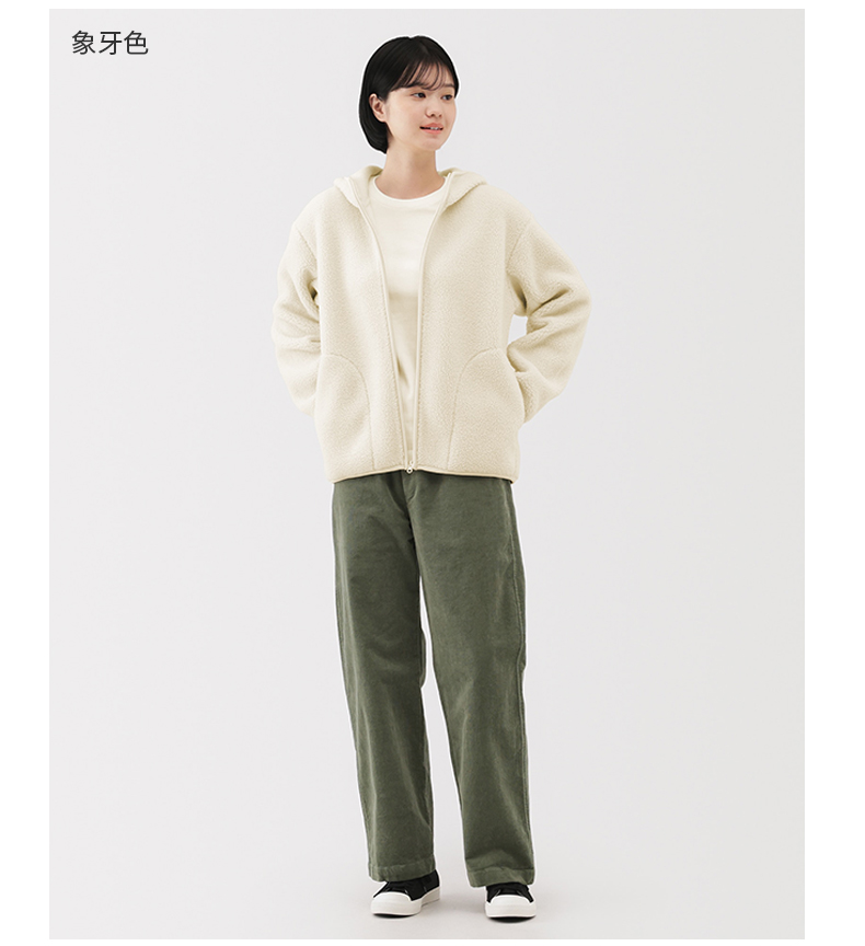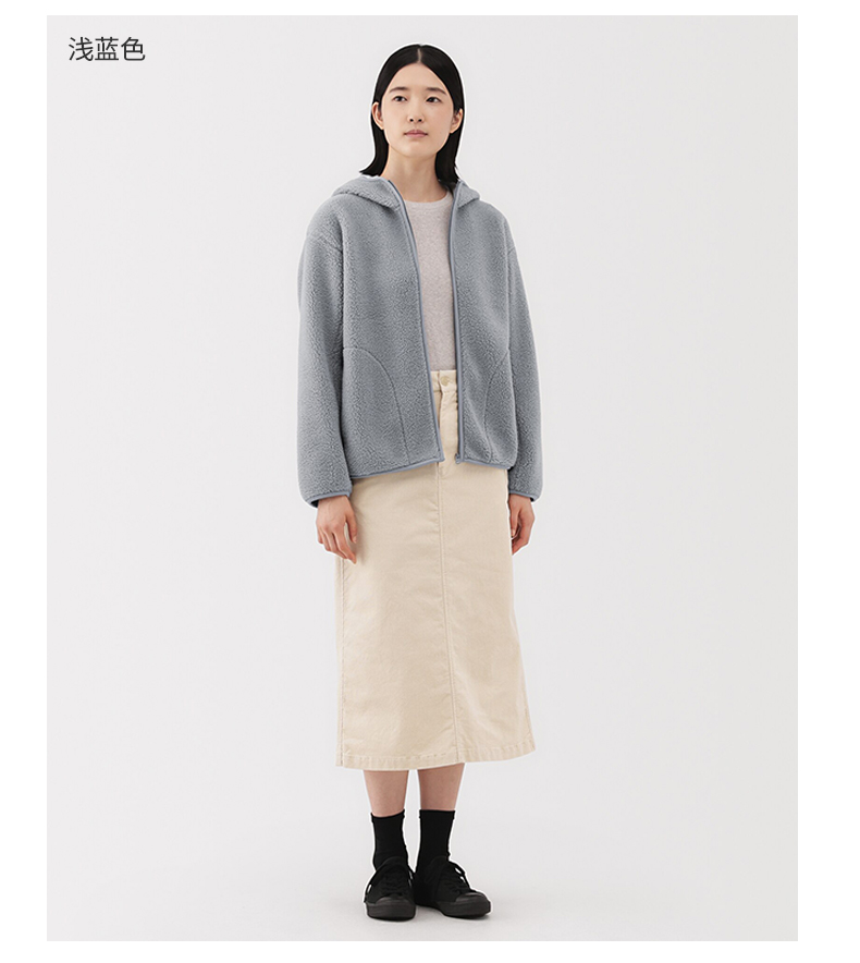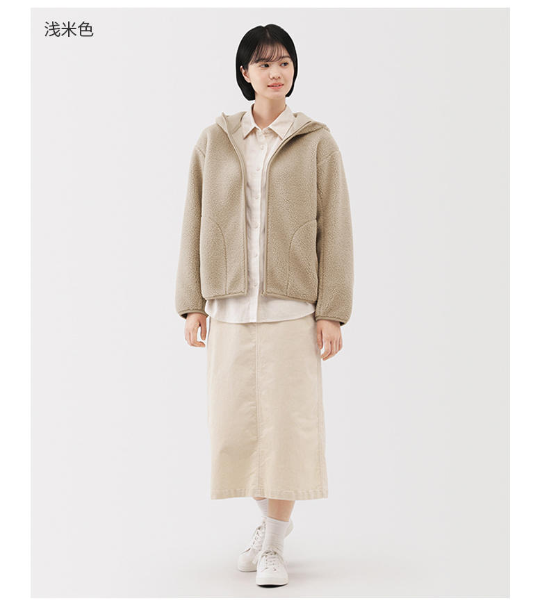 Muji Women's Long Fleece Zipper Hoodie Women's Fleece Short Jacket Women's Autumn Clothing